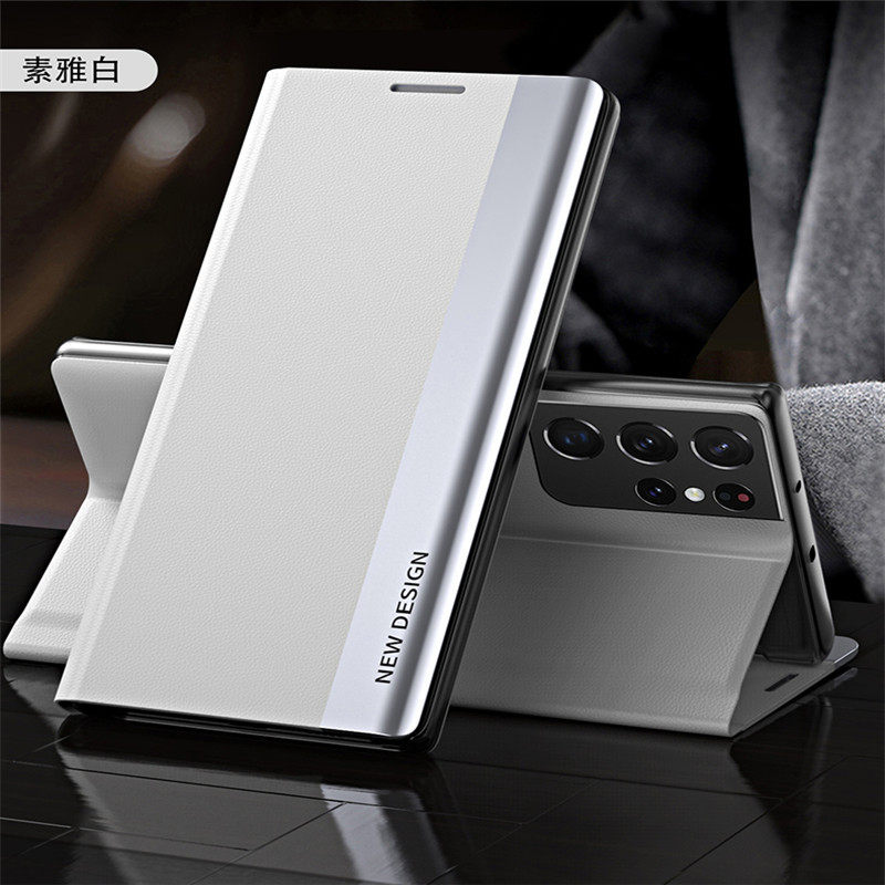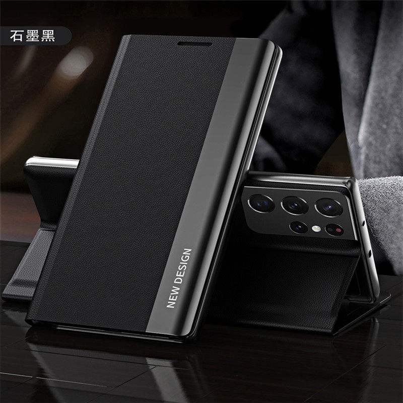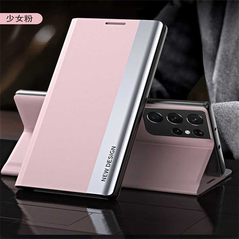 Suitable for Samsung S25Fe/S26Ultra Mobile Phone Case S24/S23/S22 Electroplated Bracket Magnetic Side Window Leather Case