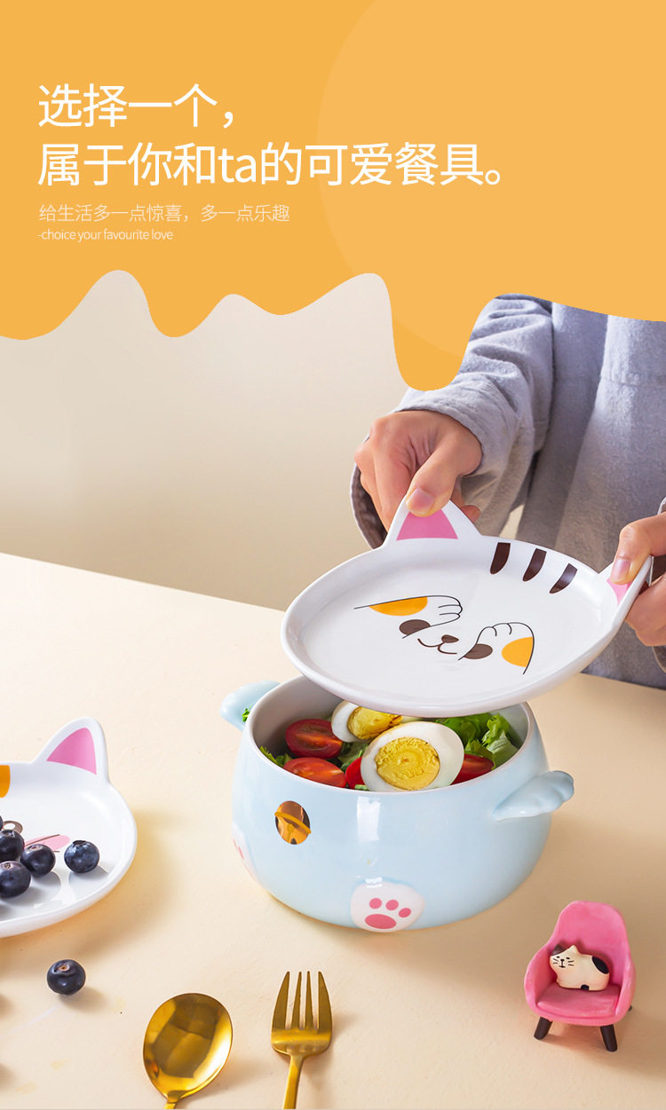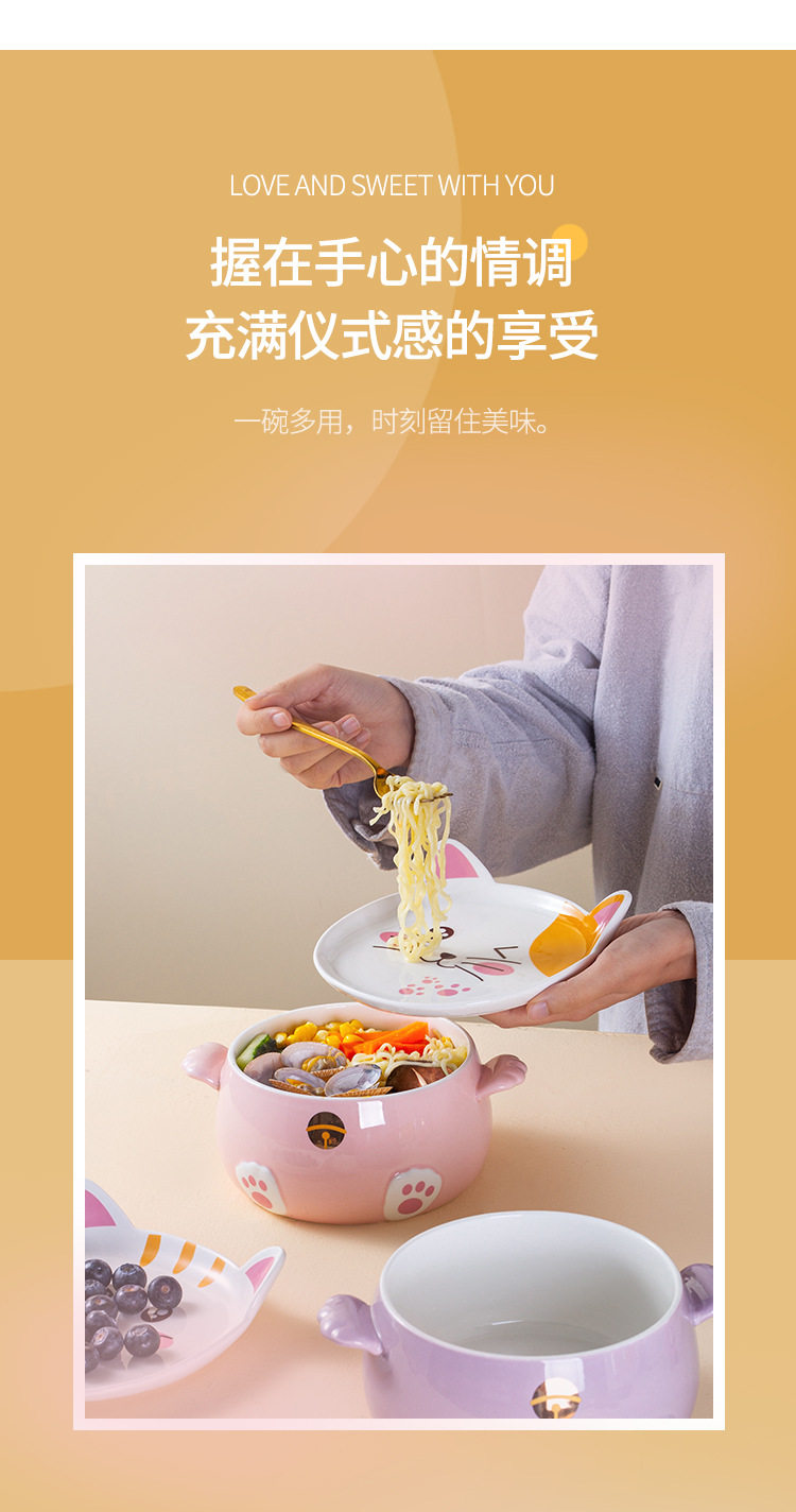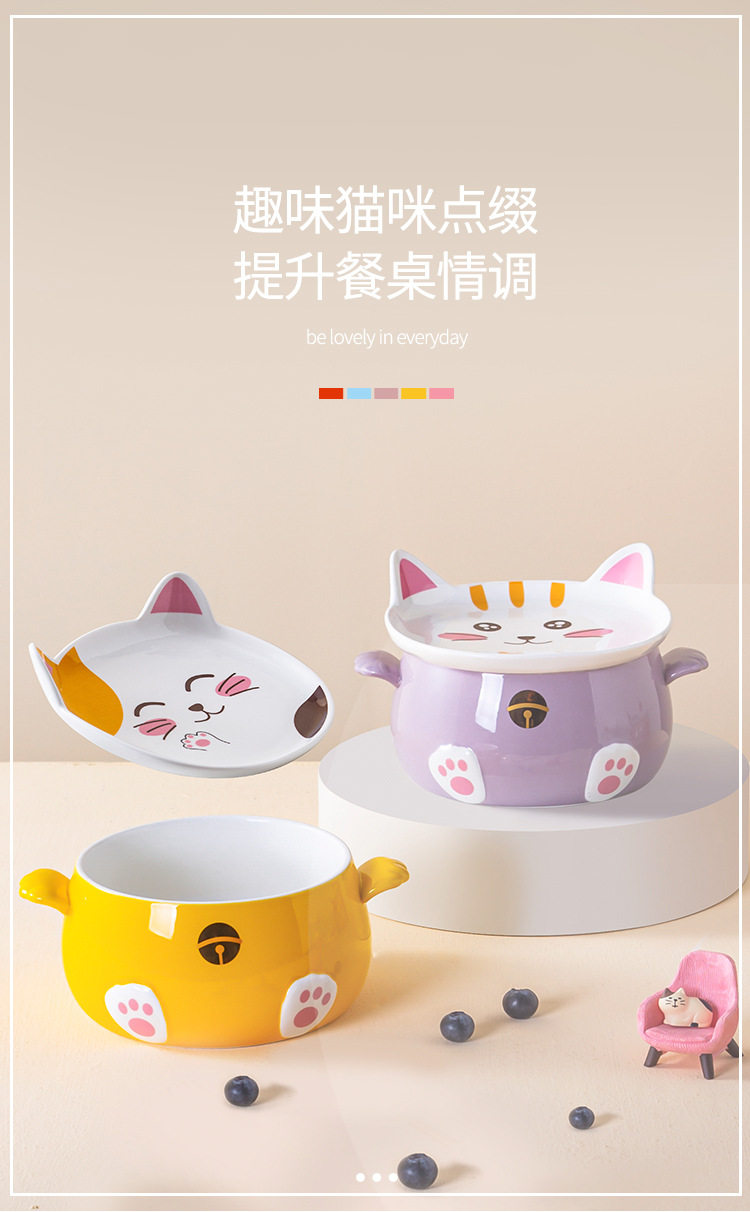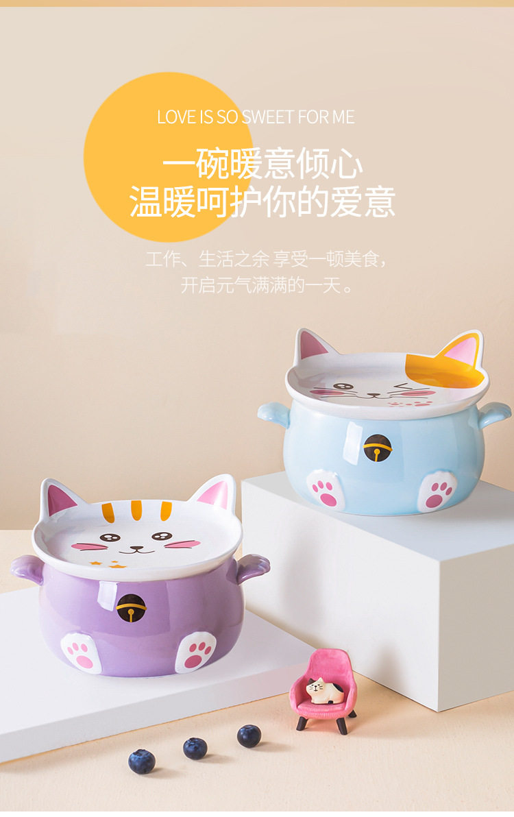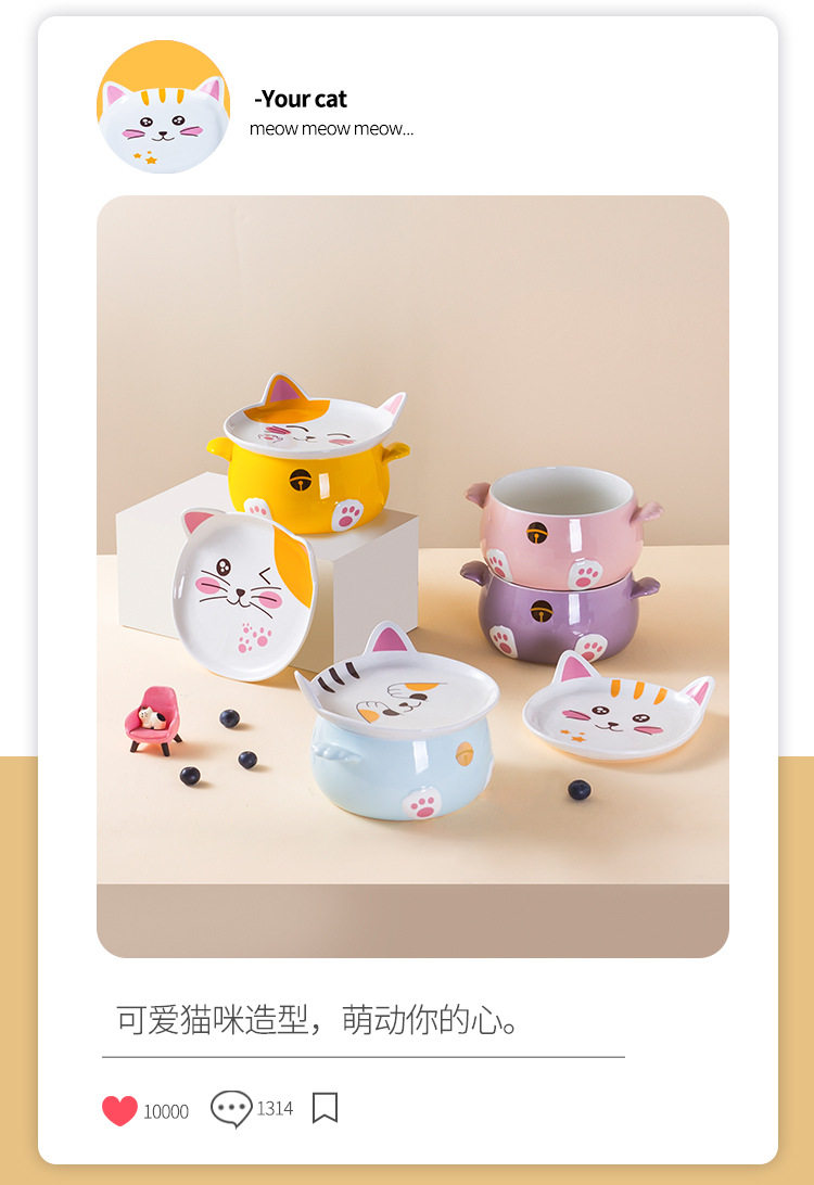 Japanese Style Cute Cute Pet Cat Style Ceramic Poodle Bowl Large Capacity Soup Bowl Personalized Creative Binaural Salah Bowl