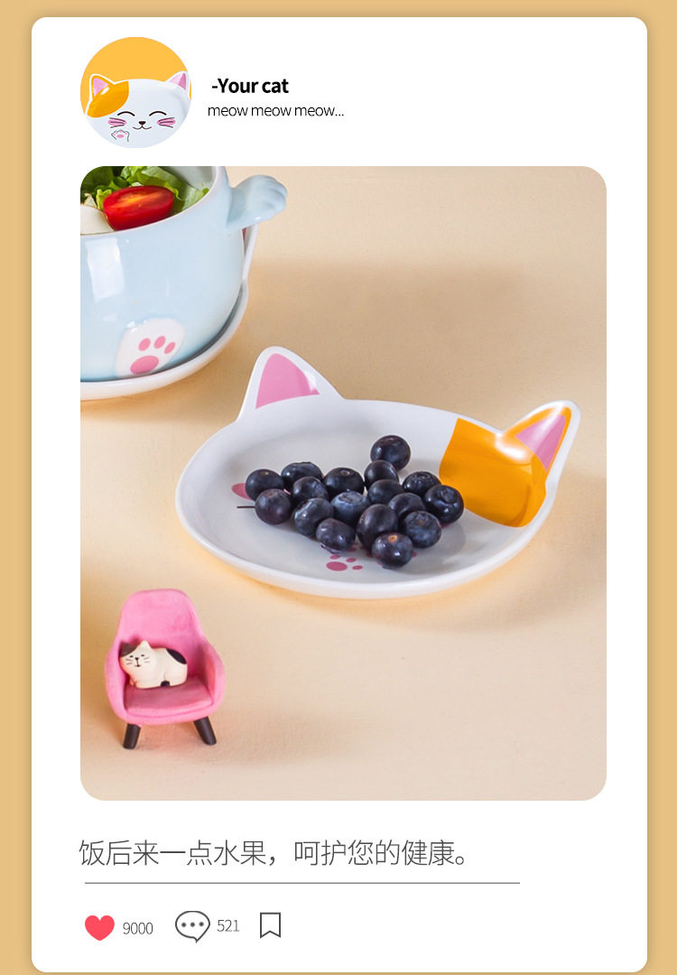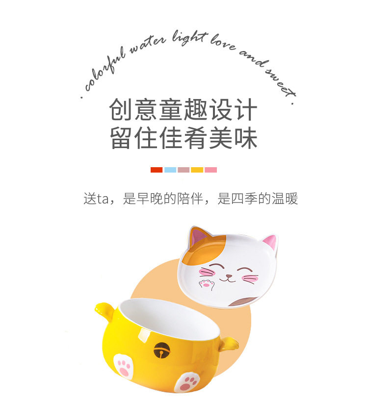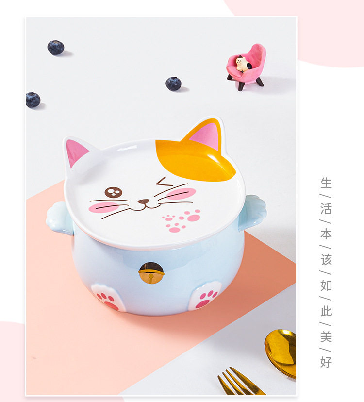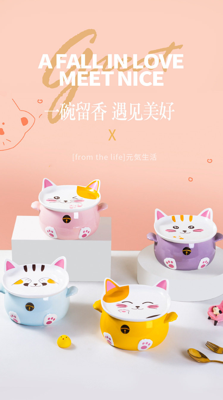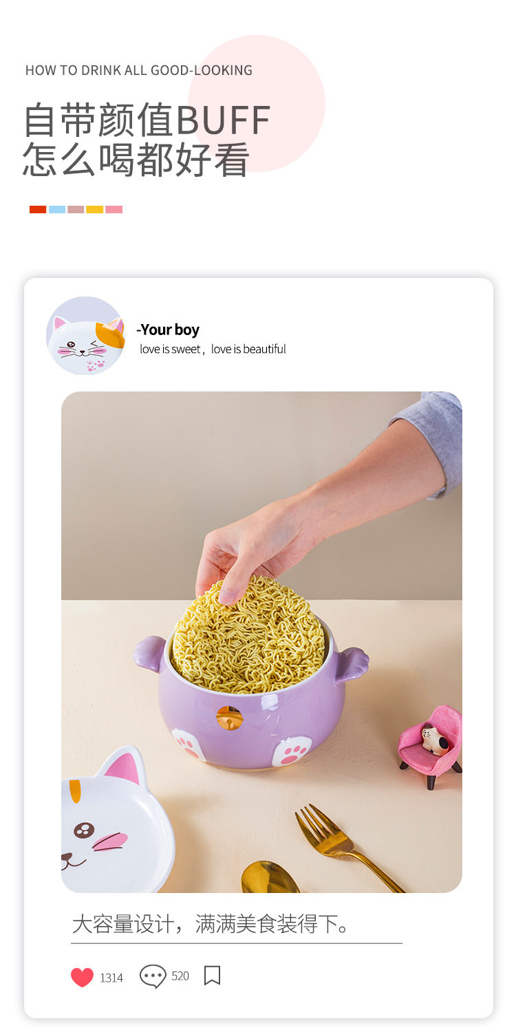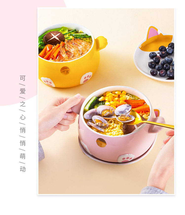 Japanese Style Cute Cute Pet Cat Style Ceramic Poodle Bowl Large Capacity Soup Bowl Personalized Creative Binaural Salah Bowl