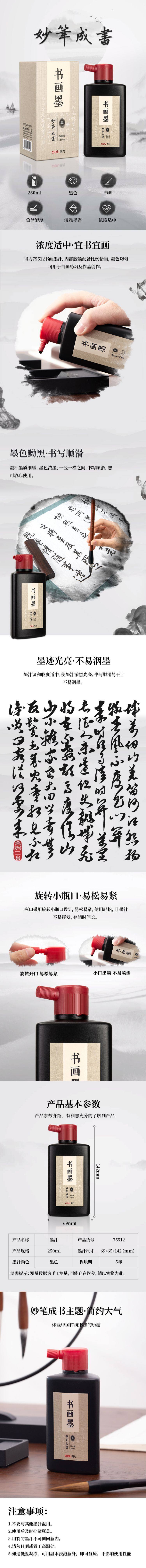 Deli 75512 ink (black) 250ml/bottle of wonderful pen into a book with moderate concentration and suitable for calligraphy and painting