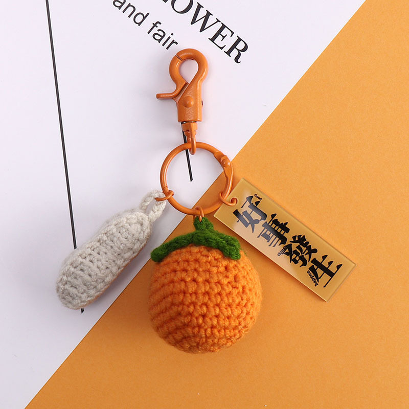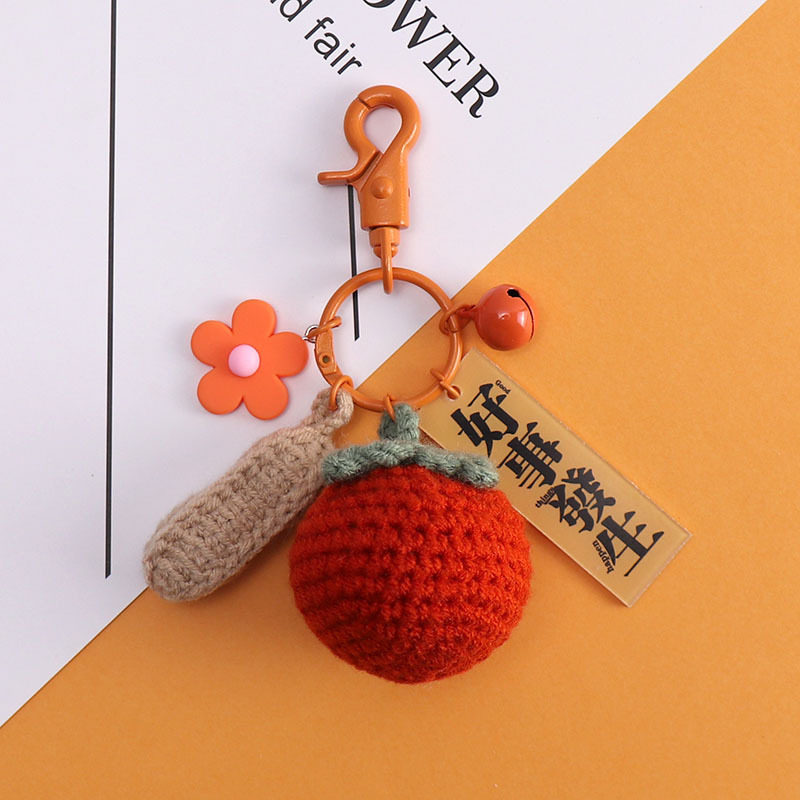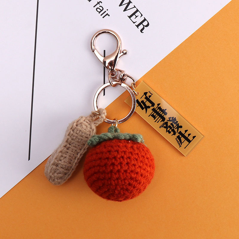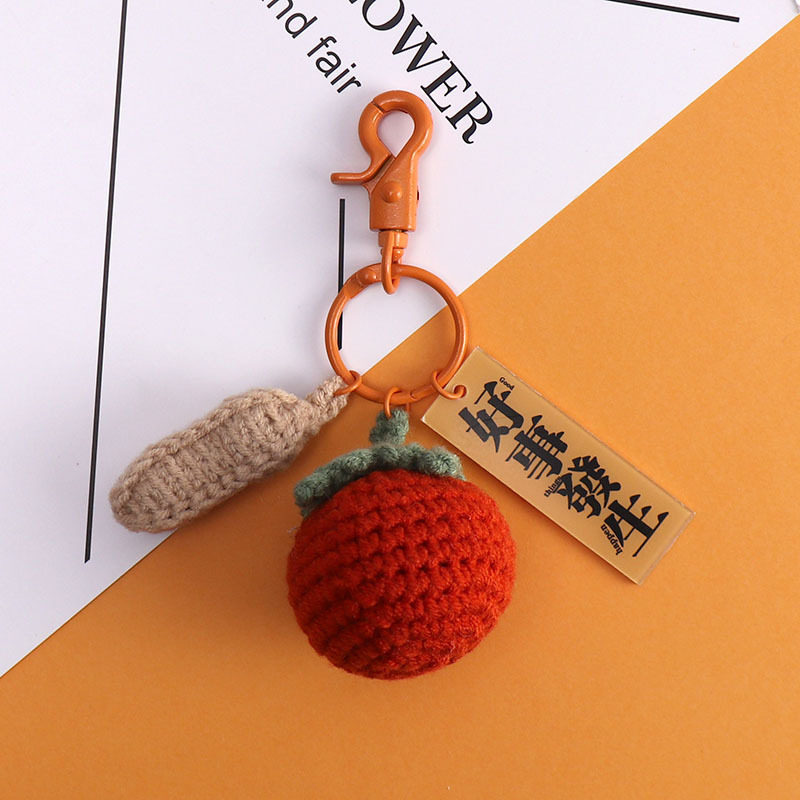 Good Things Happen Yarn Pendant Handmade Woven Keychain Peanut Persimmon Small Gift Bag Charm Good Luck