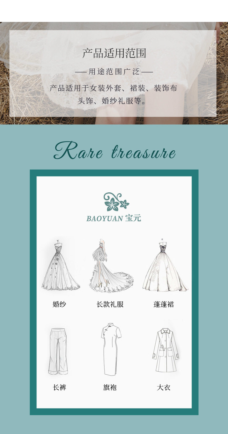 | Scope of application | Underwear,Women's clothing,Bedding,Wedding dress,Children's clothing,Accessories,Diy handmade,Home soft furnishings |