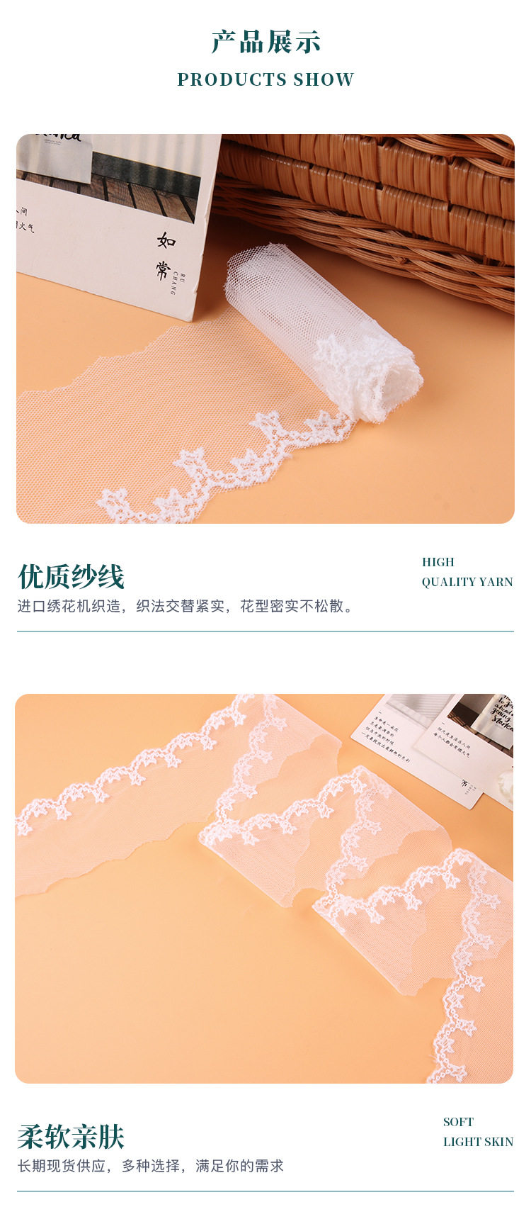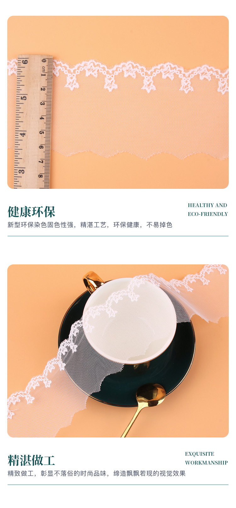6.4cm Embroidered Mesh Lace, Embroidered Milk Silk Mesh Lace, Wavy Edge Milk Silk Skirt Lace