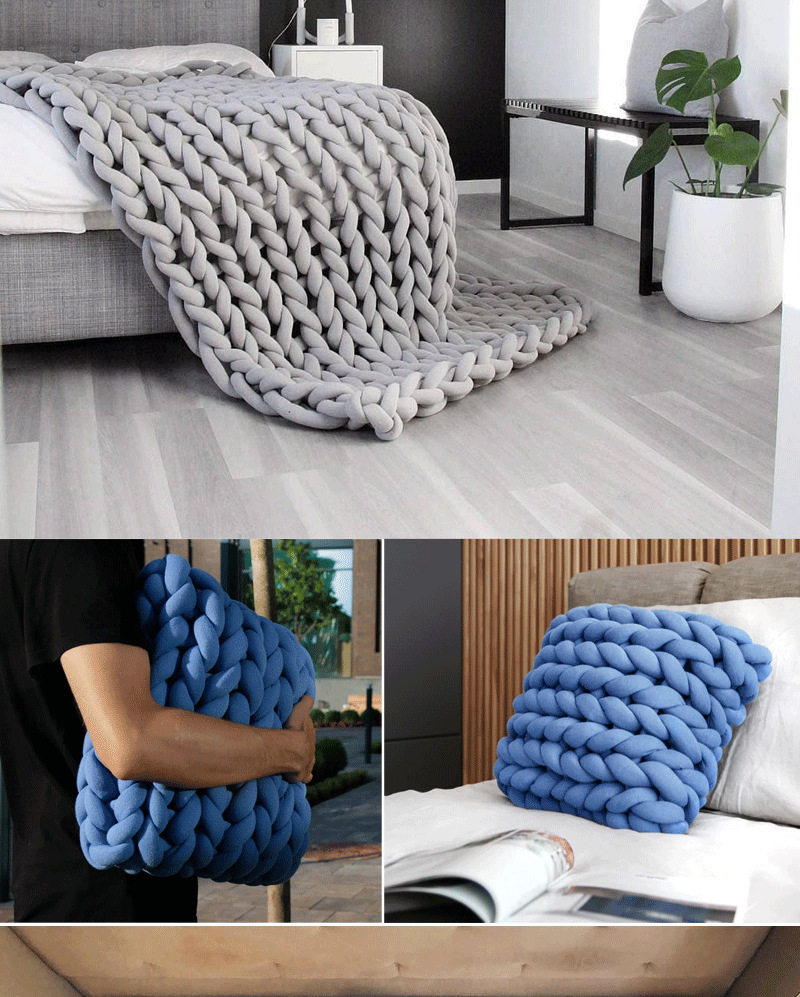 Wool Knitted Blanket, Non-Shedding, Hand-Knitted Pet Cat Bed, Pillow, Baby Bed Wrap, Anti-Collision Fence, Hand-Knitted