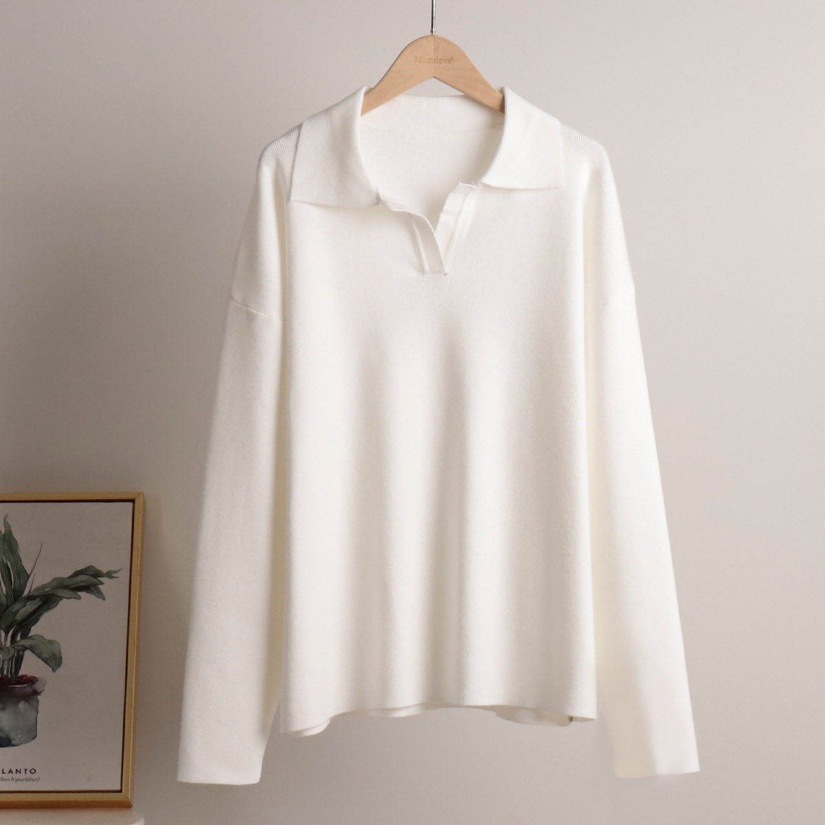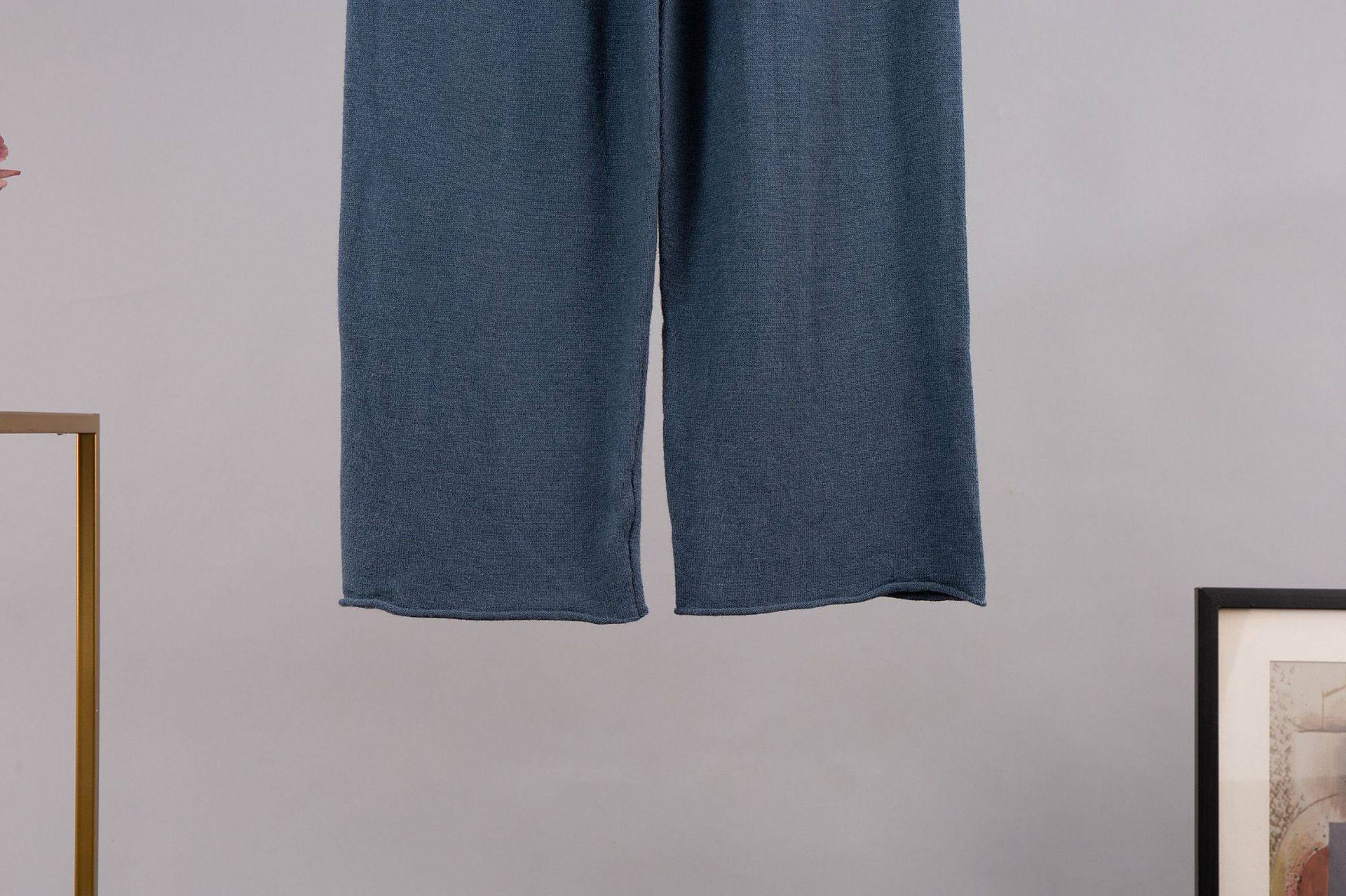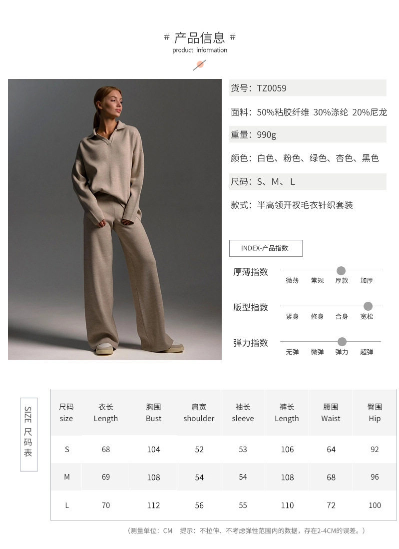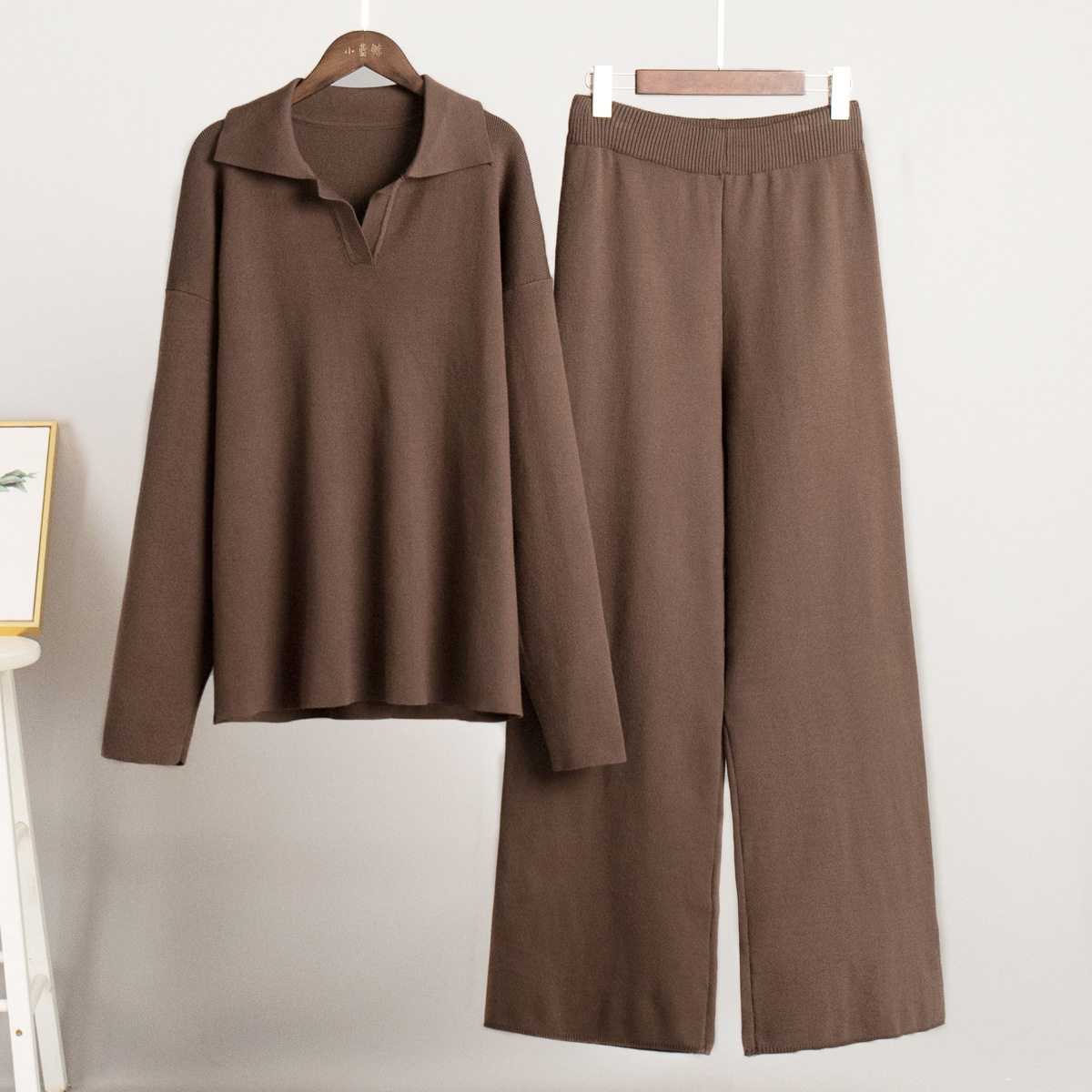 Cross-Border Knitted Suit European and American Autumn and Winter Sweater Suit Polo Collar Knitted Pullover + Wide-Leg Pants Two-Piece Set