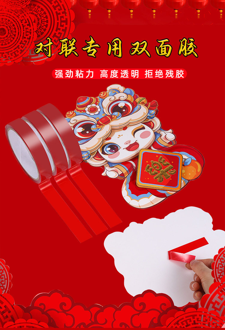 2025 year of the snake Spring Festival couplet Spring Festival couplet double-sided tape transparent seamless red New Year pictures decoration can not drop glue wholesale