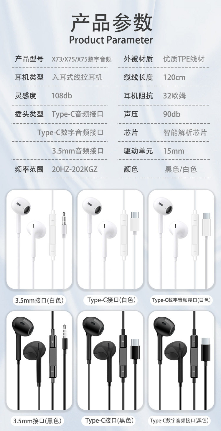 | Earphone line material | TPE |