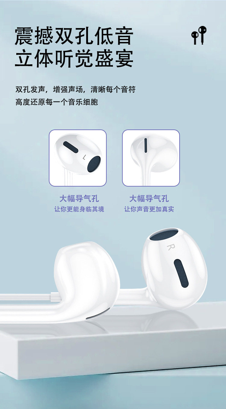 The Fourth Generation 3.5mm Round Hole Wired Headphones Are Suitable for Apple Oppo Huawei Mobile Phone Computer In-Ear Mobile Phone Headset