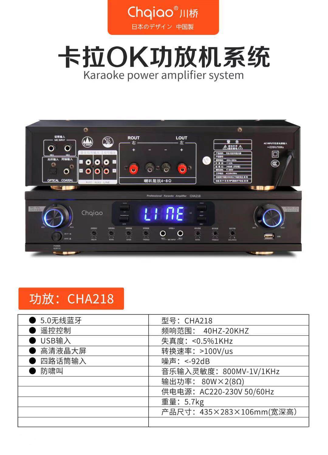 Chqiao CHA218KTV karaoke card package power amplifier high power Bluetooth USB home conference amplifier