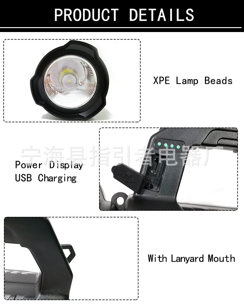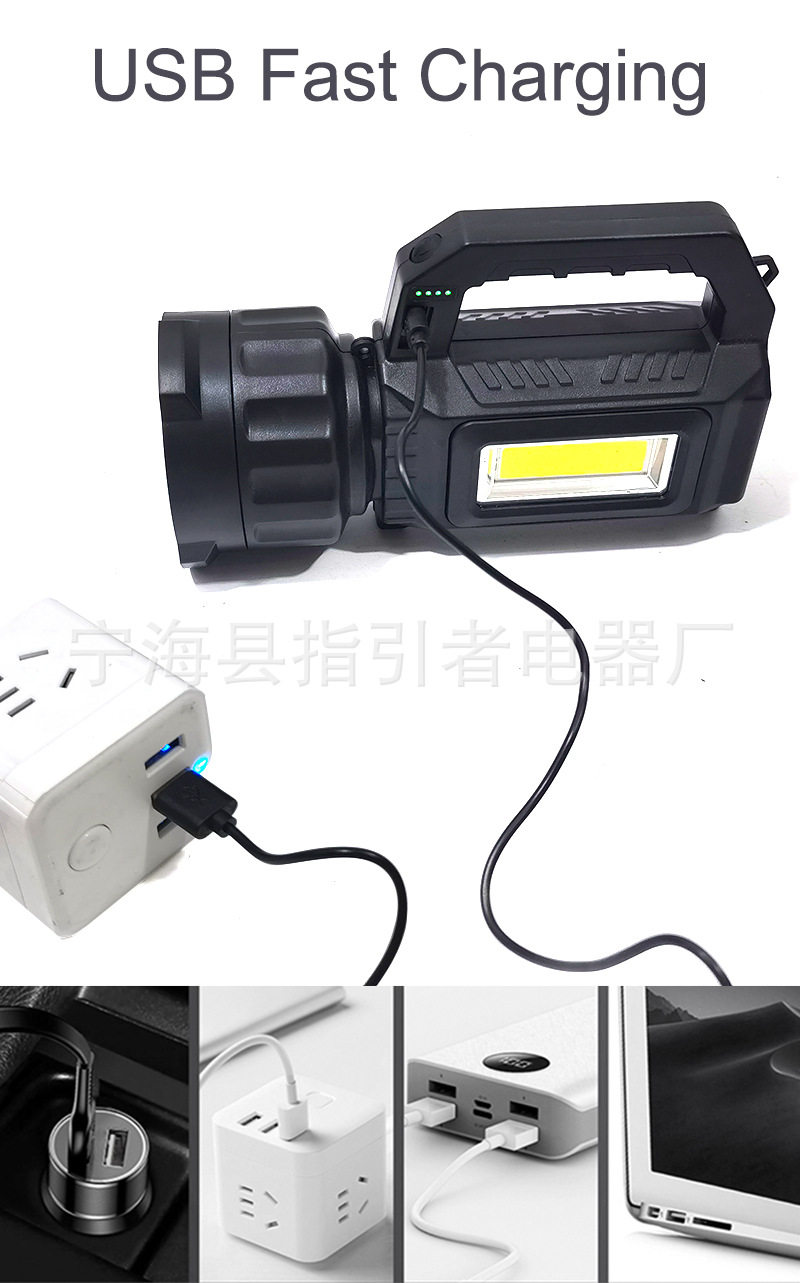 USB charging bright long-range Searchlight outdoor emergency portable lamp camping lamp with side light