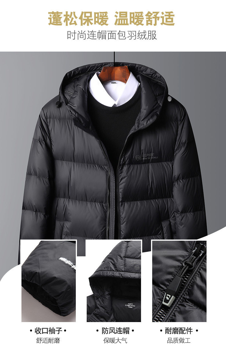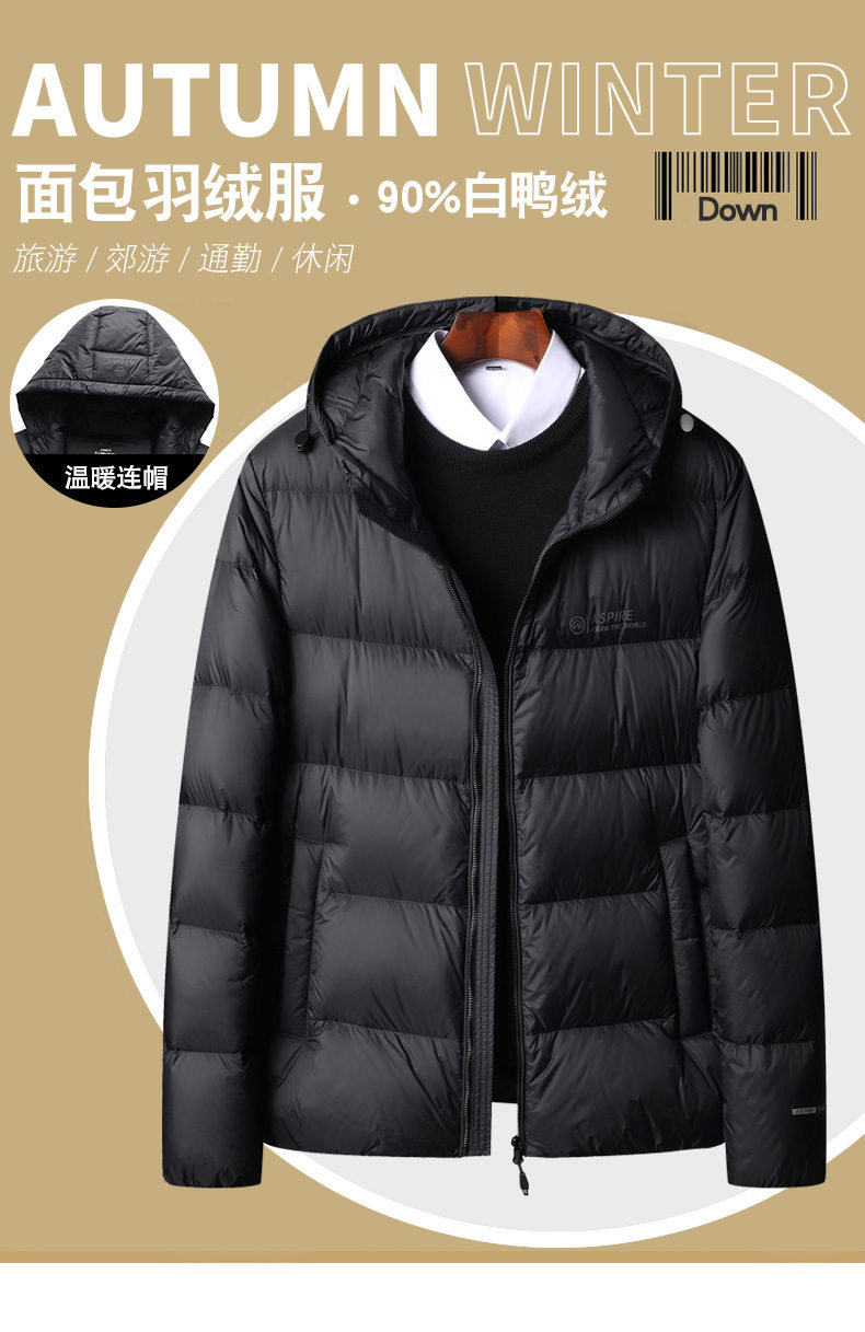 Winter New Simple All-match Hooded Down Jacket Men's Thickened Middle-aged and Young People's Cold-proof Warm Fashionable Bread Down Jacket