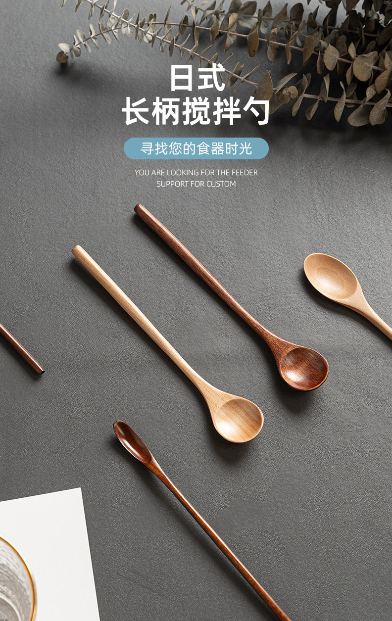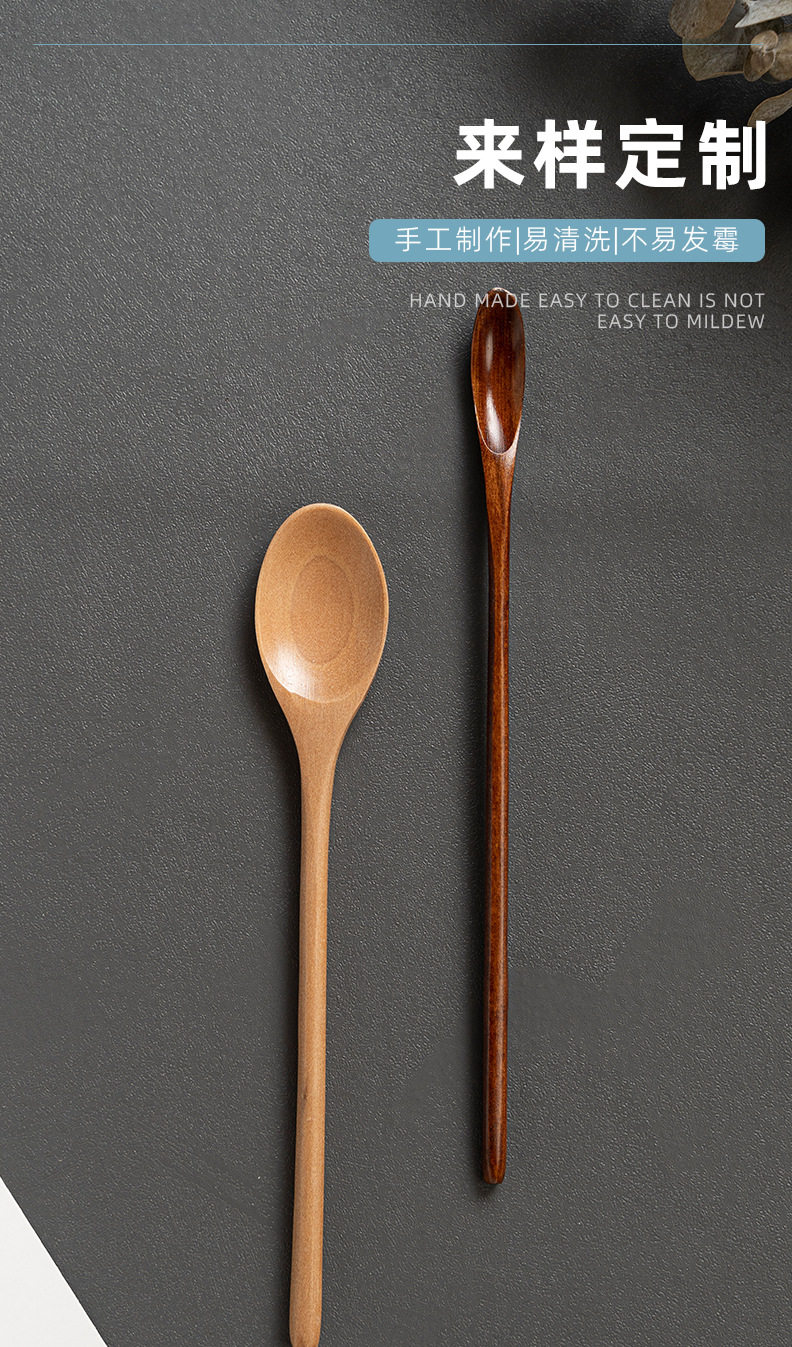 Long handle creative wooden milk tea spoon manufacturers supply mixing long wooden spoon Japanese coffee spoon honey wooden spoon