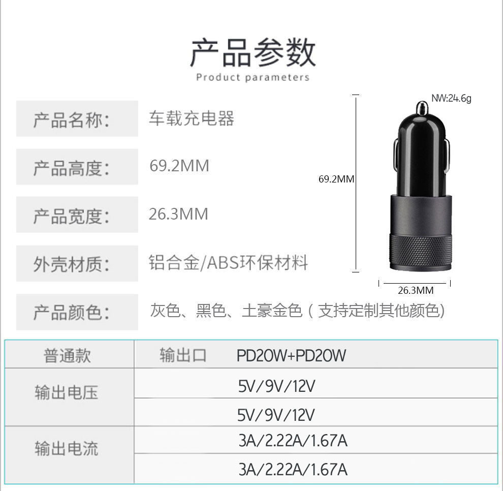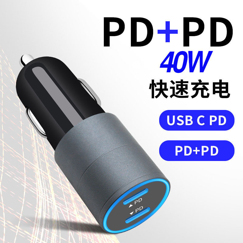 40W dual PD car charger typec fast charging car charger compatible with qc protocol mobile phone car charging head