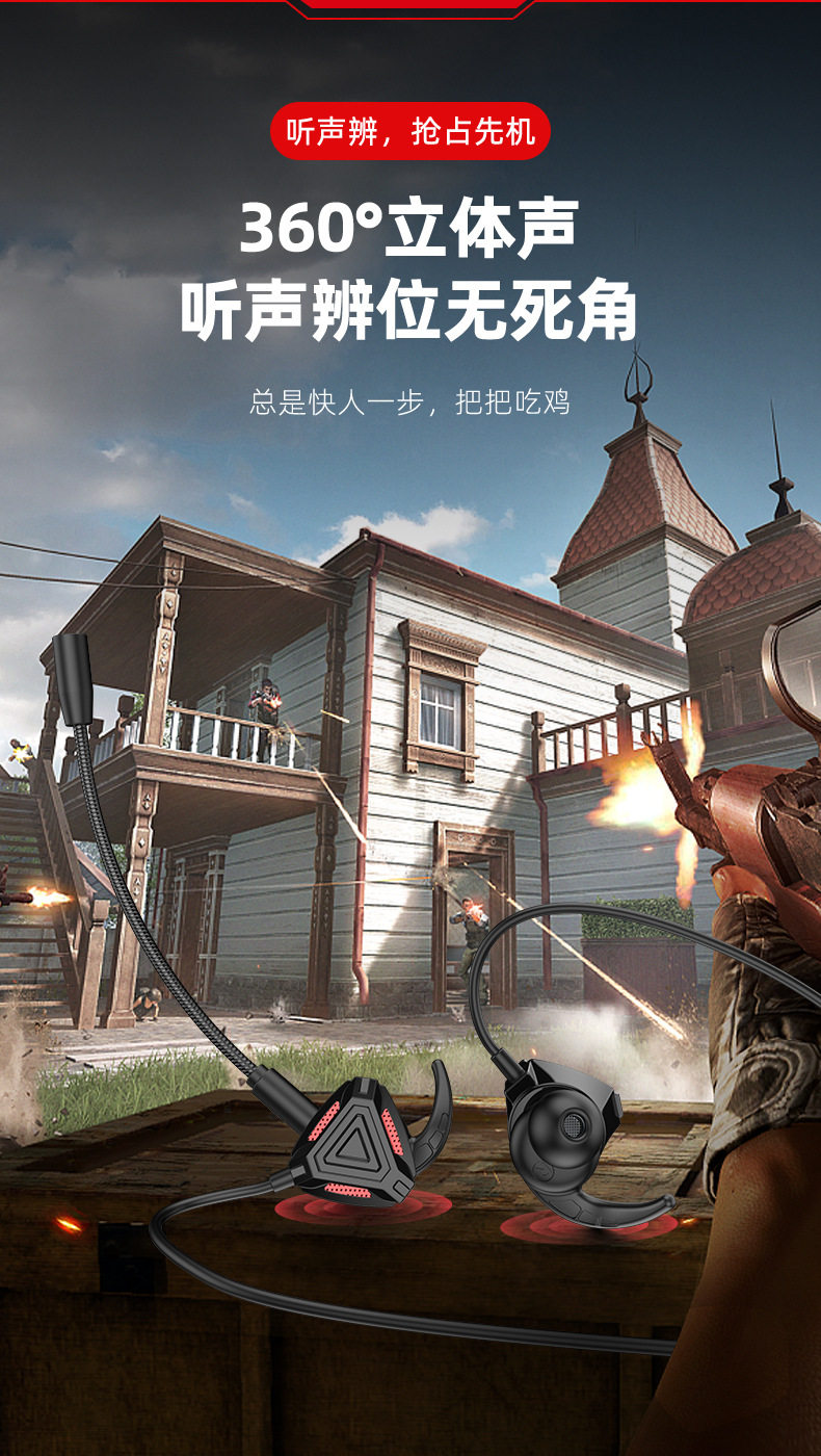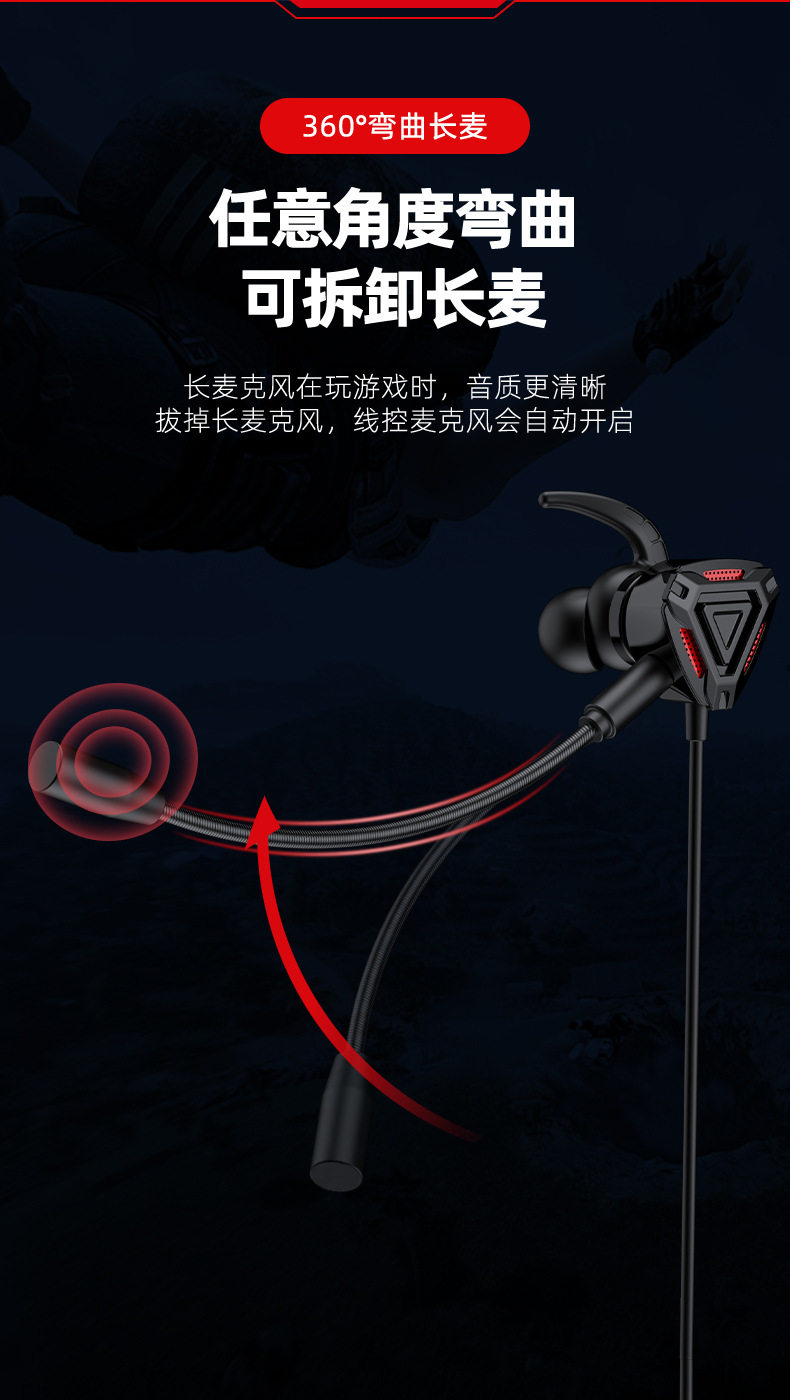 Strict selection of e-sports with wheat game hand tour headphones in-ear mobile phone computer cross-border wired headphones eating chicken headphones