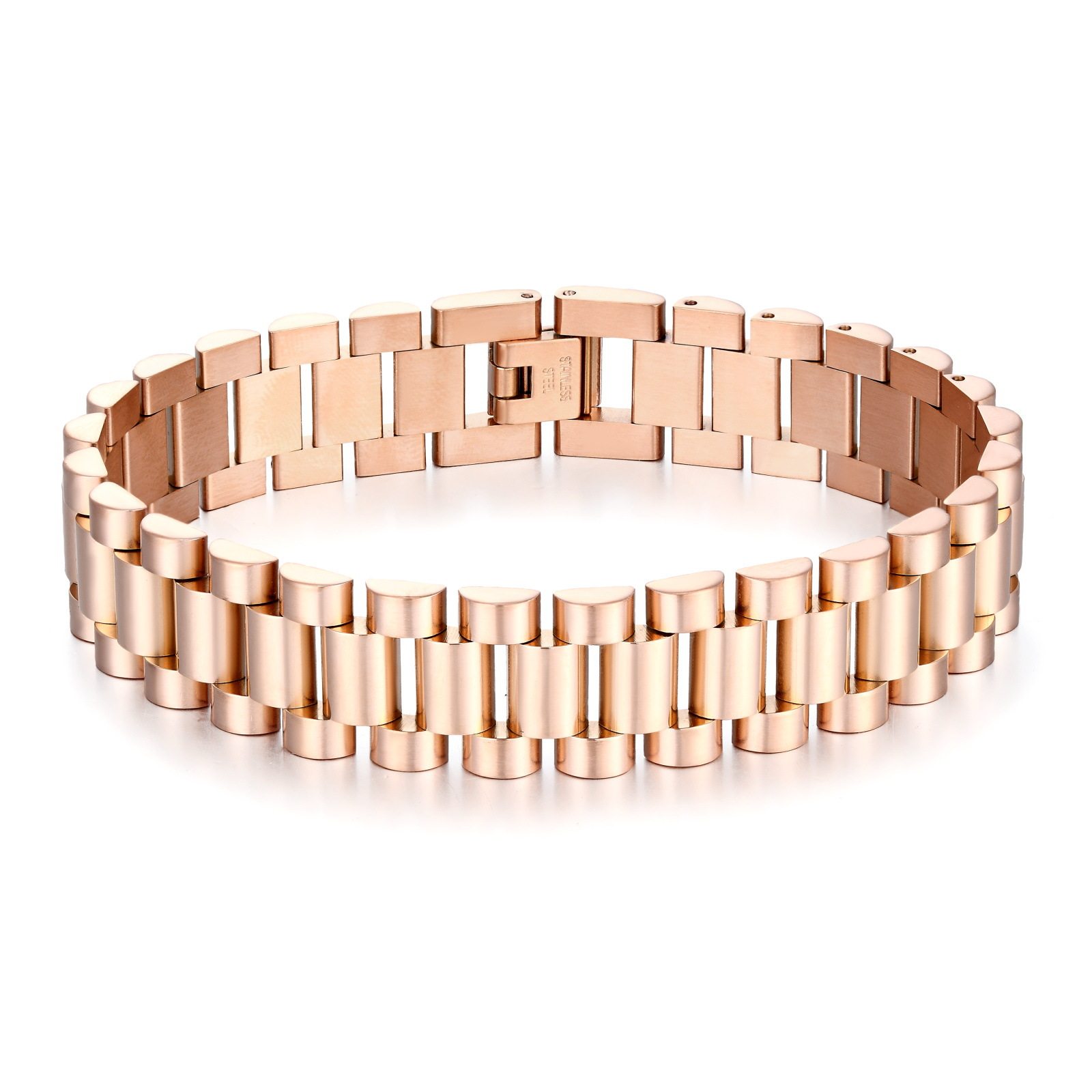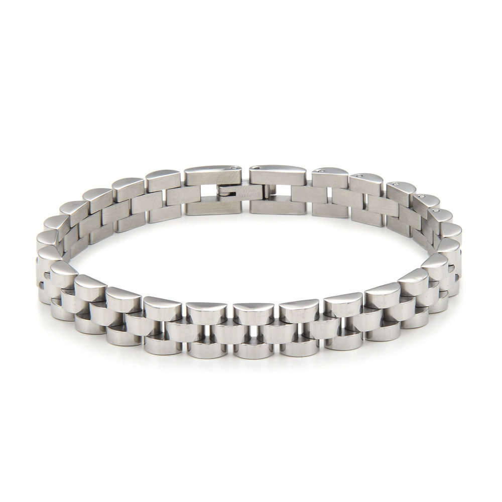 European and American Curved Brand Strap Titanium Steel Bracelet Couple Fashion 15mm Stainless Steel Men's Watch Chain Adjustable Bracelet