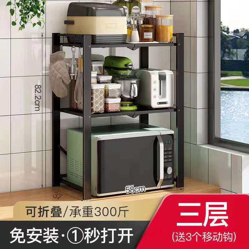 Microwave Storage Rack Kitchen Household Retractable Countertop Oven Rice Cooker Seasoning Storage Floor Shelf Manufacturers