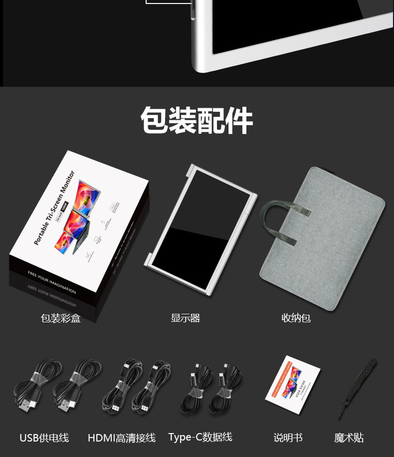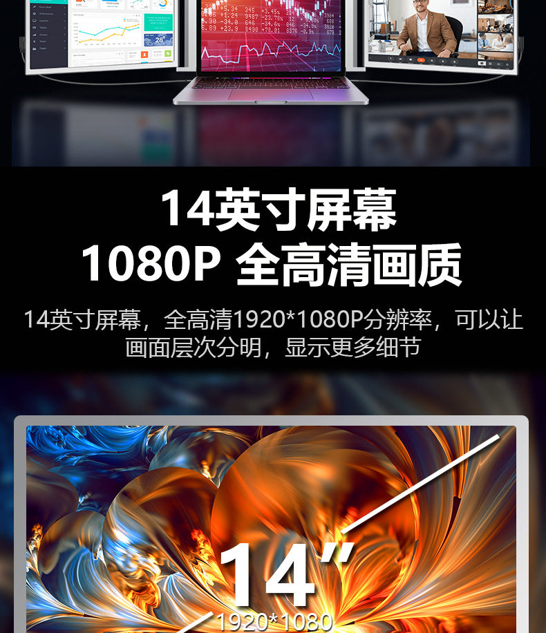 14inch Dual-Screen Portable Monitors Lcd Screen Laptop HDMI Display