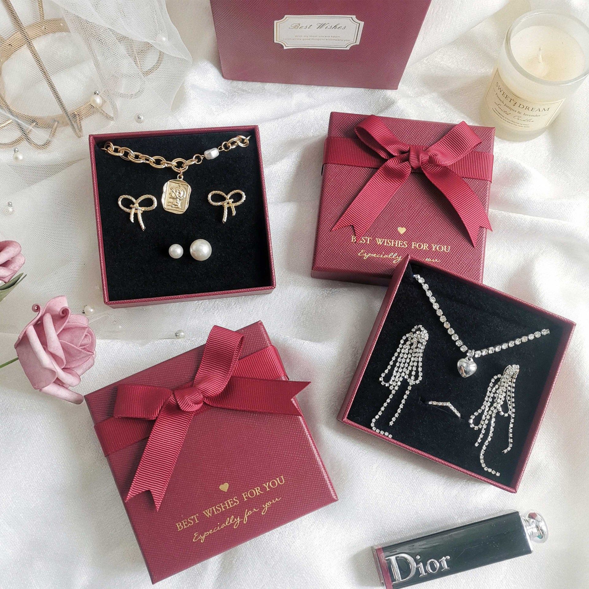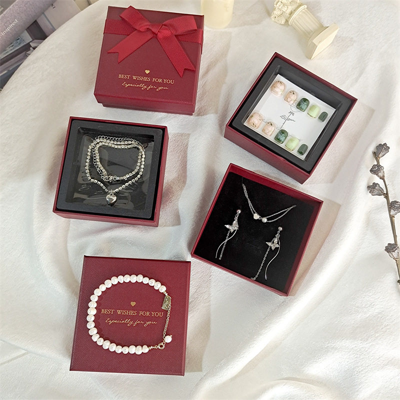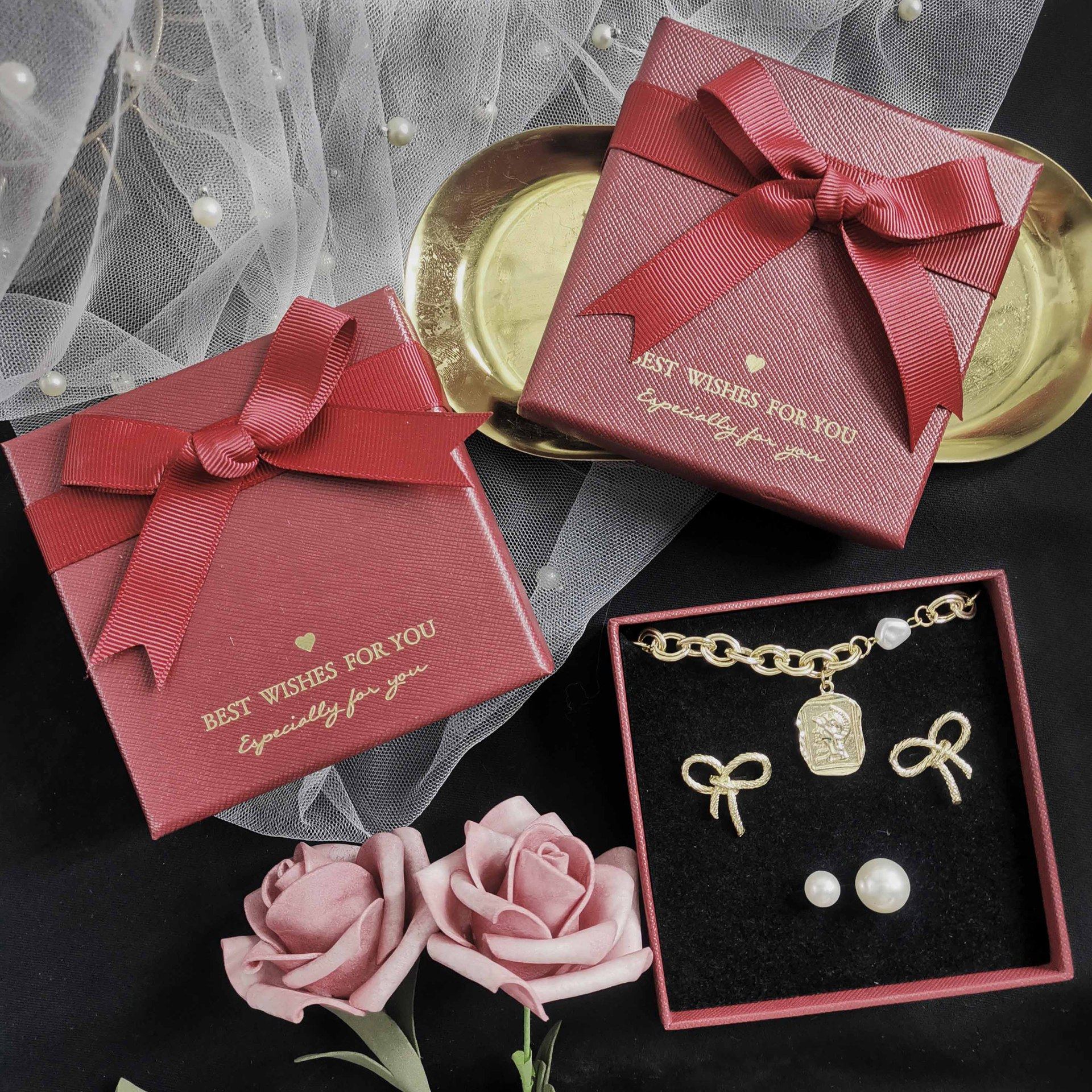 Spot quality wine red bow jewelry box necklace ring box creative jewelry bracelet box earrings box