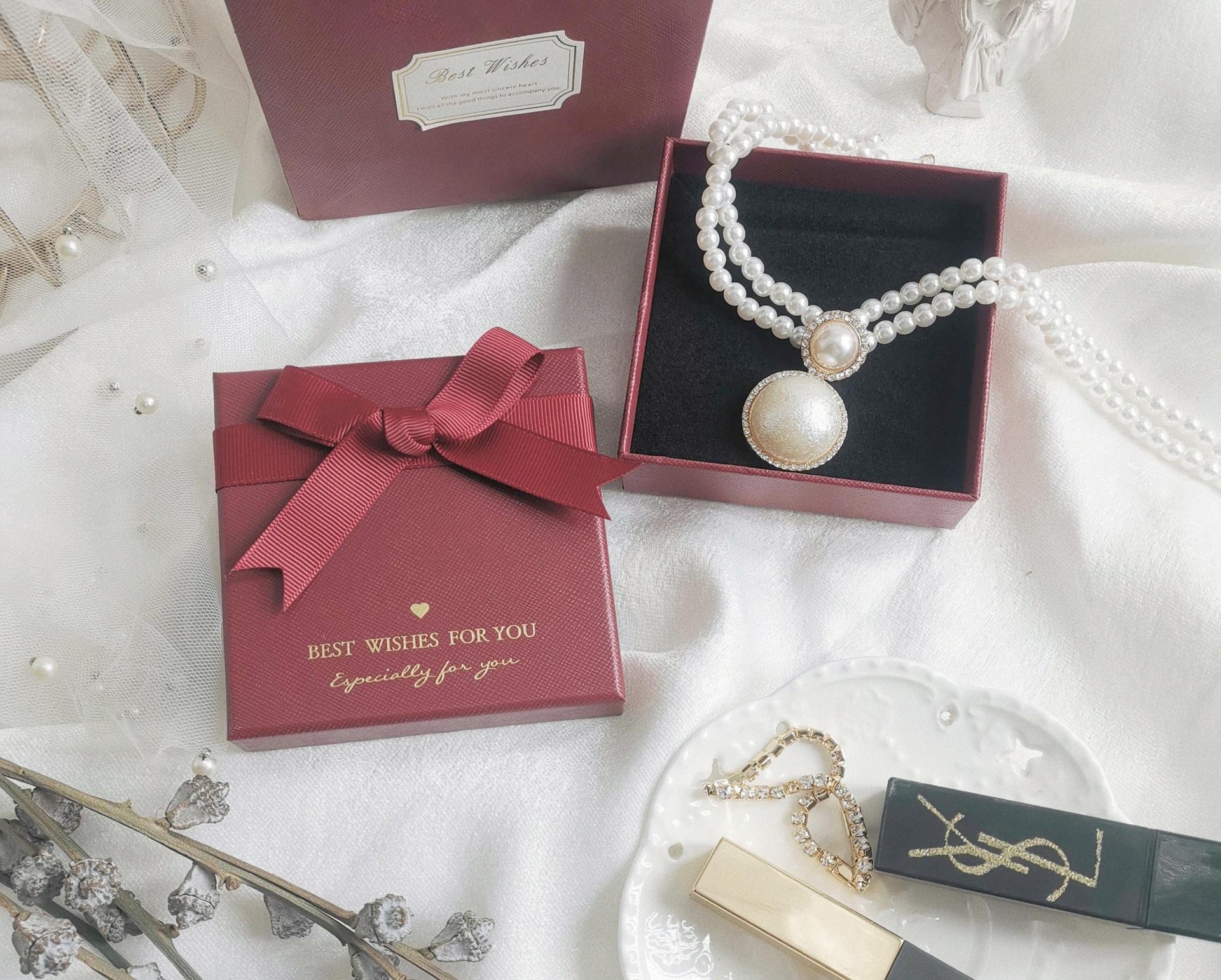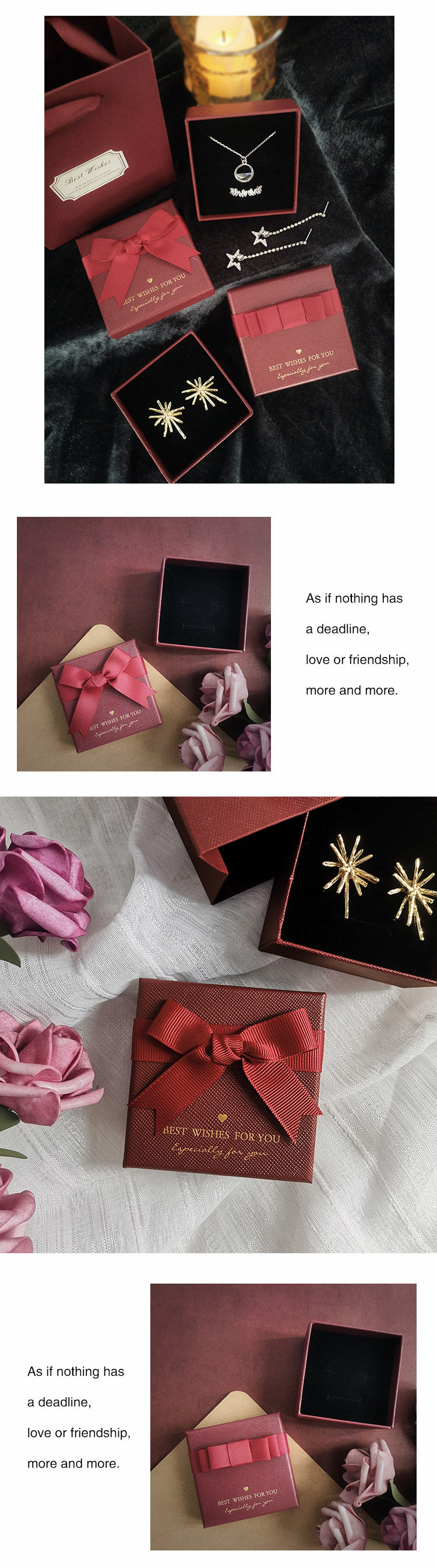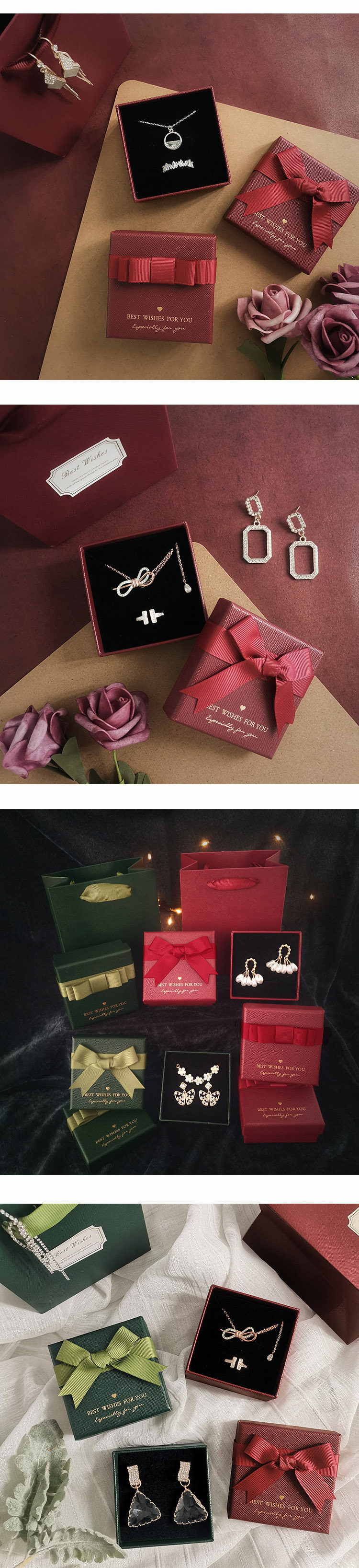 Spot quality wine red bow jewelry box necklace ring box creative jewelry bracelet box earrings box