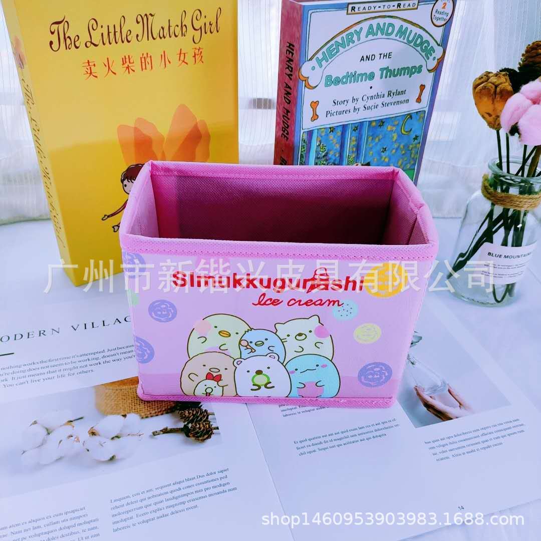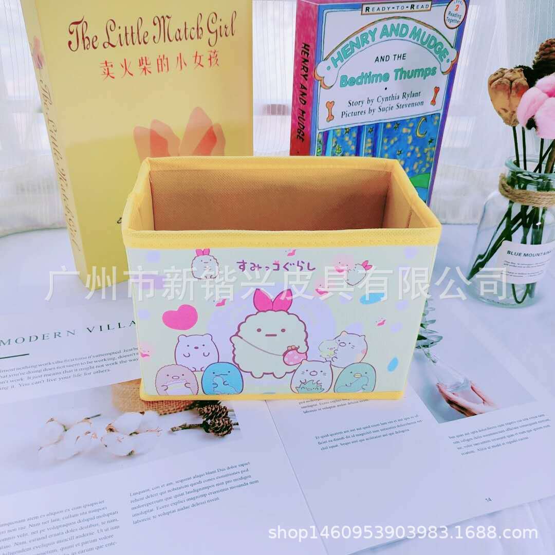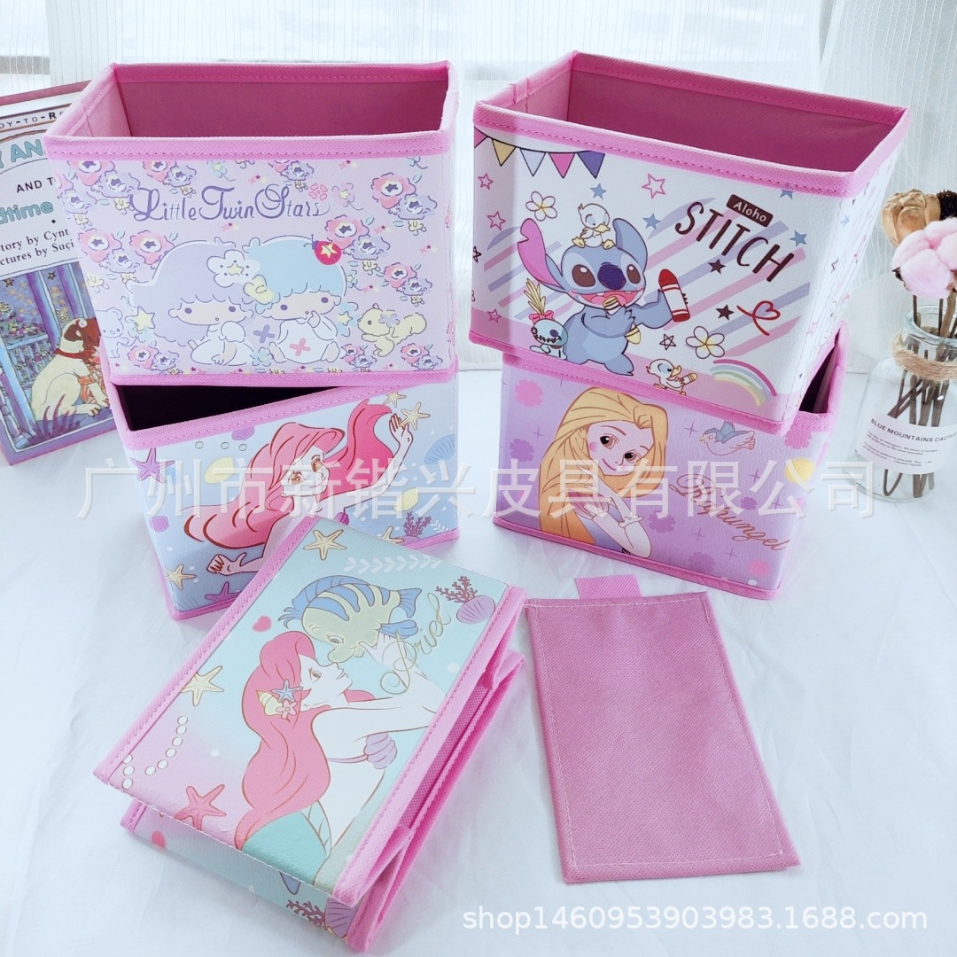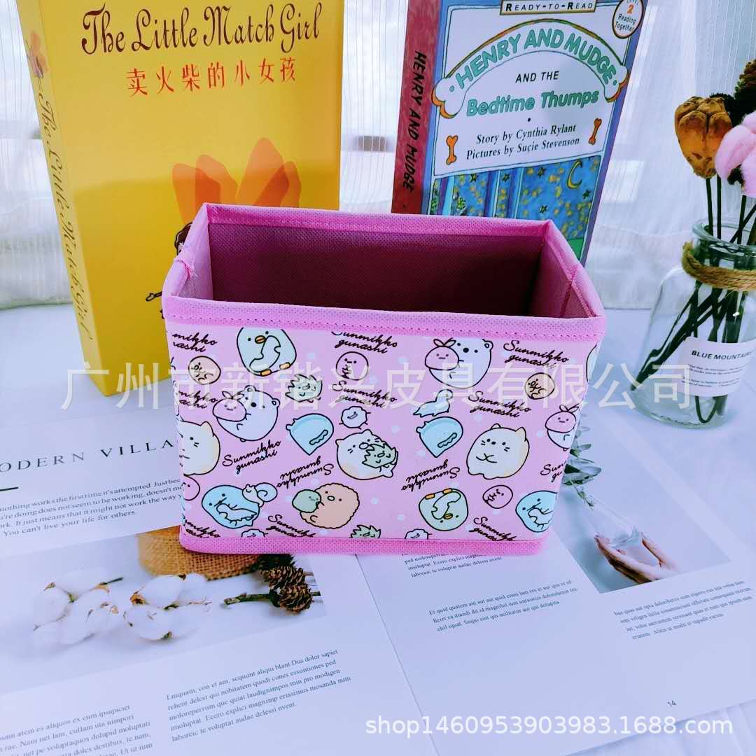 Japanese cartoon PU storage box foldable storage desktop storage box cosmetic stationery accessories sorting box