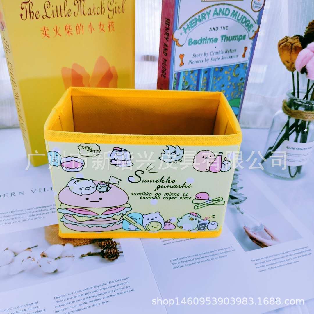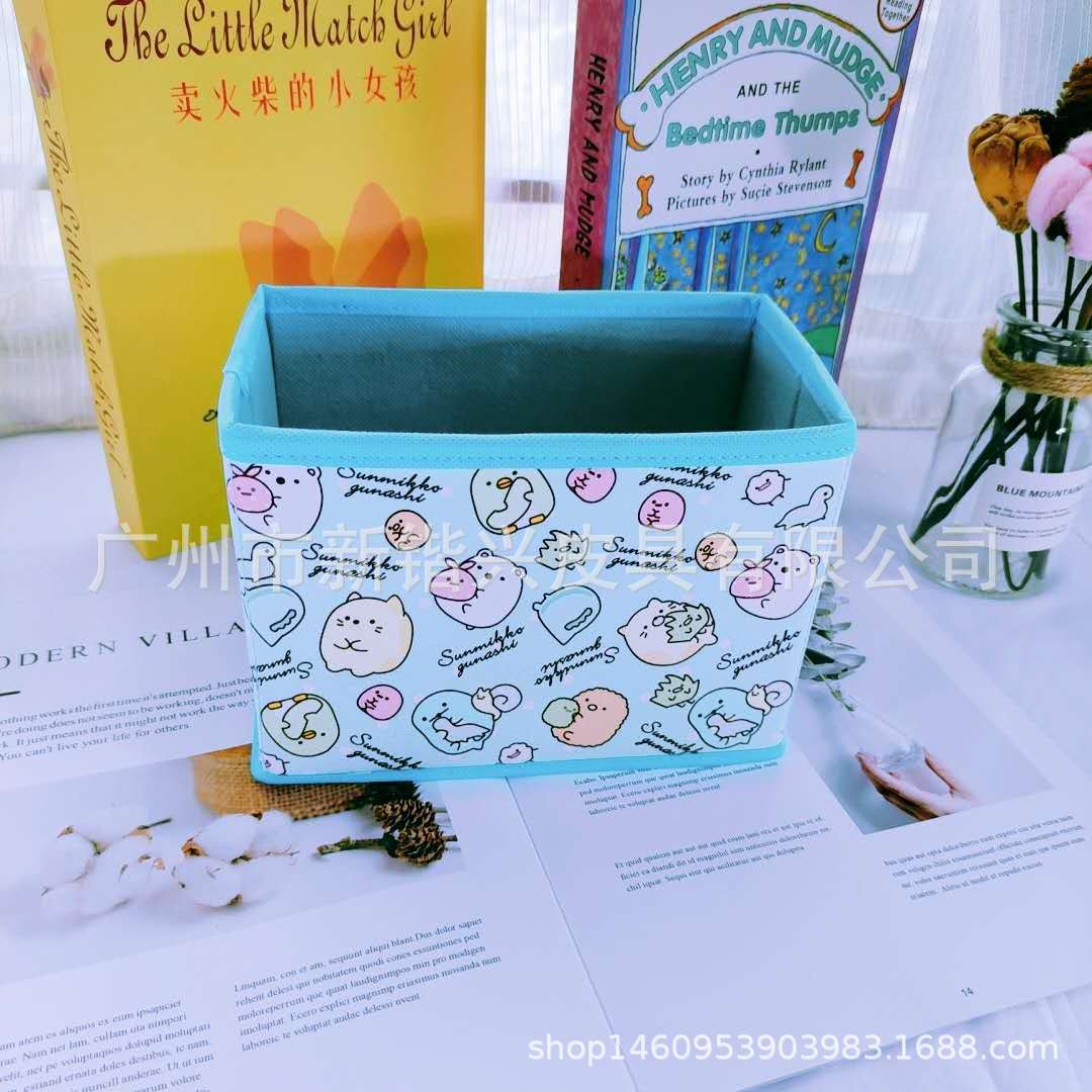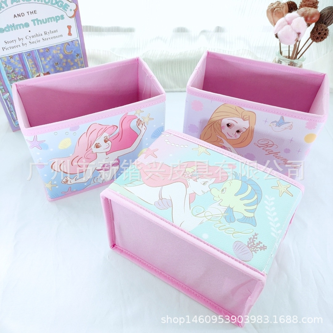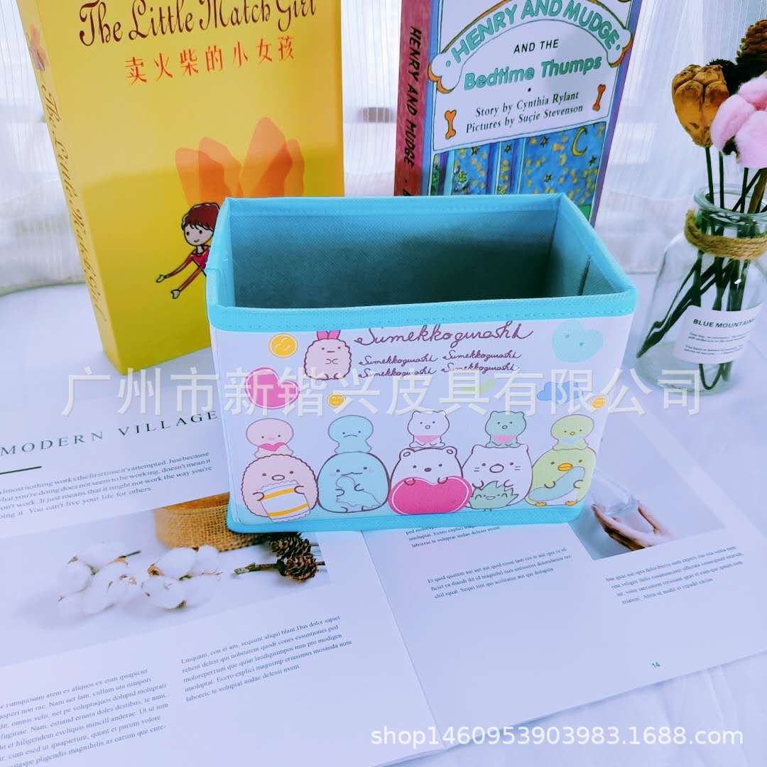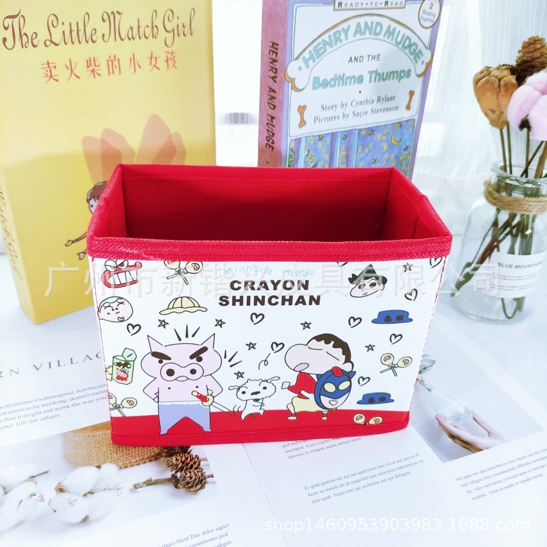 Japanese cartoon PU storage box foldable storage desktop storage box cosmetic stationery accessories sorting box