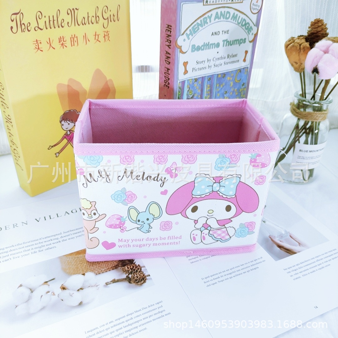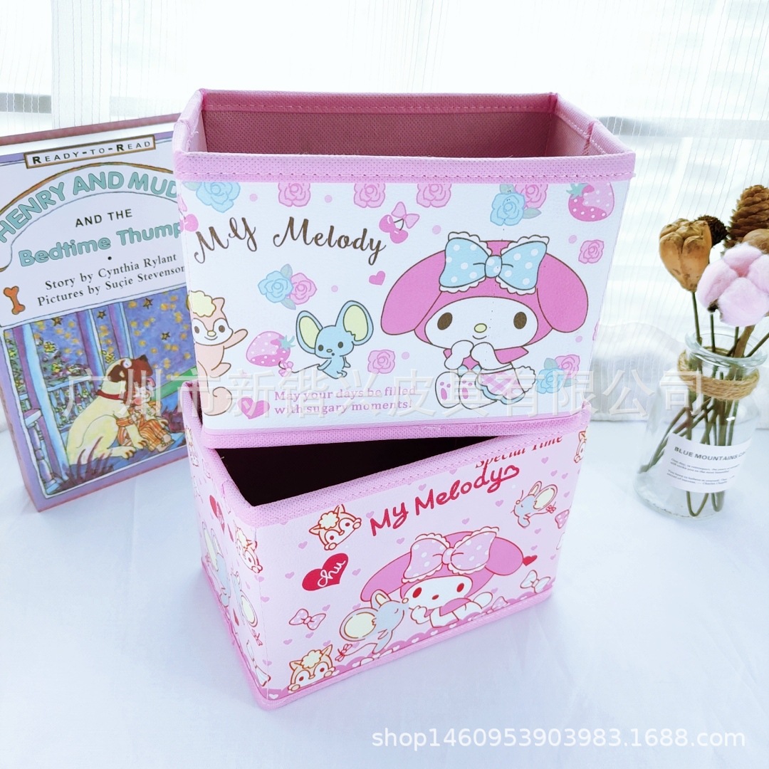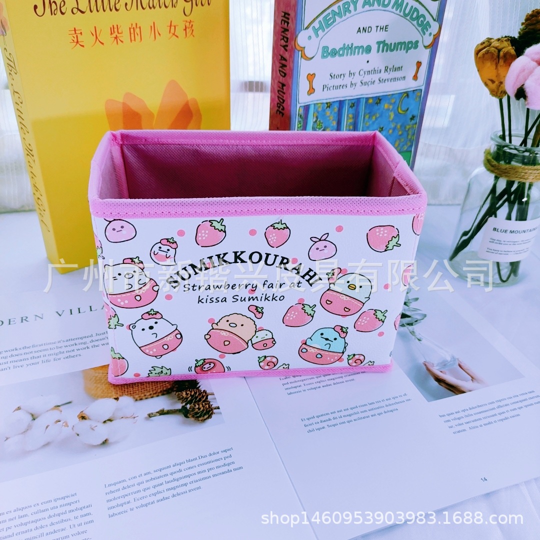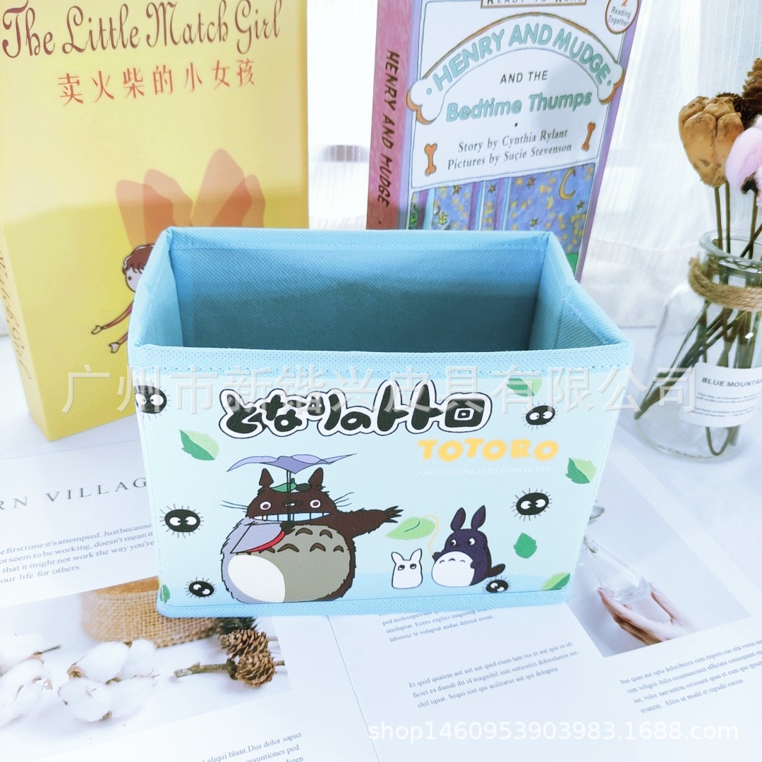 Japanese cartoon PU storage box foldable storage desktop storage box cosmetic stationery accessories sorting box