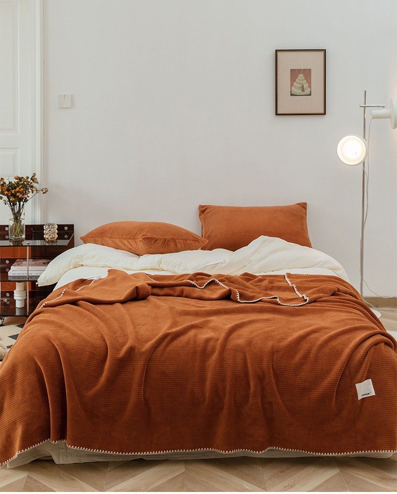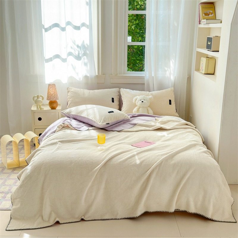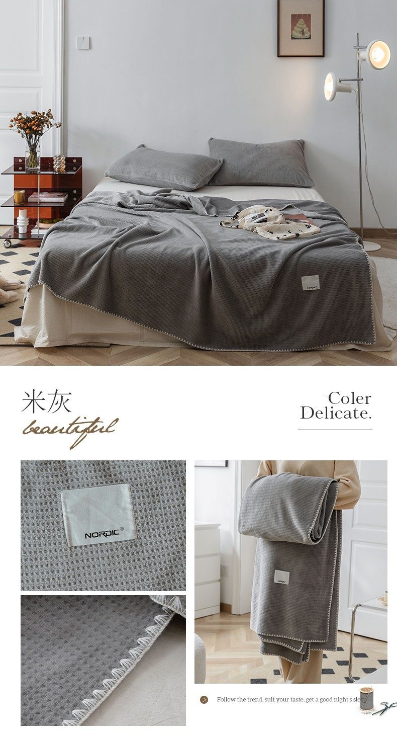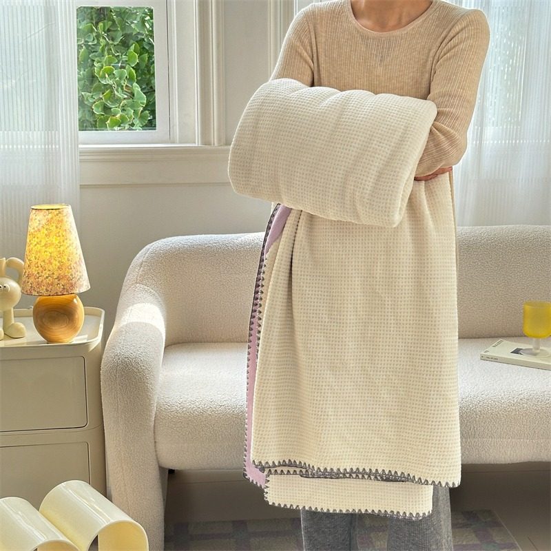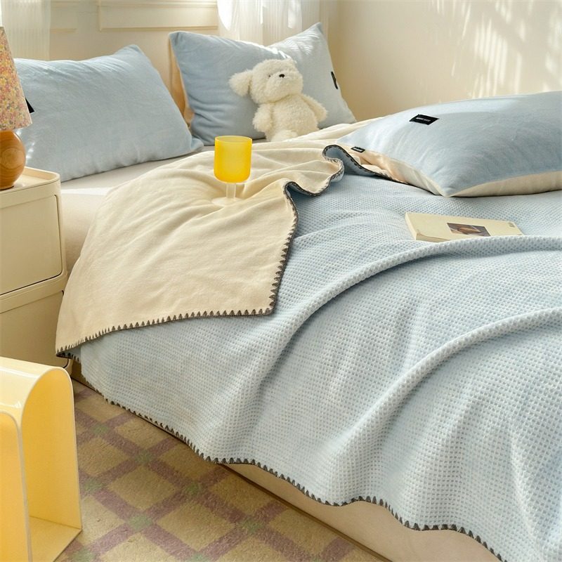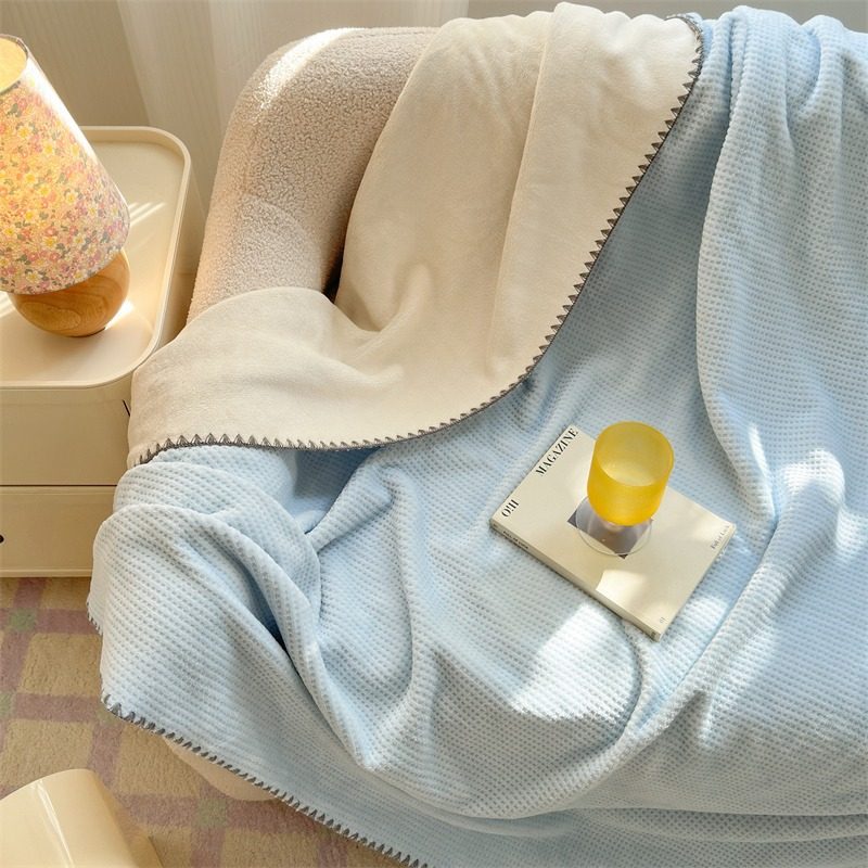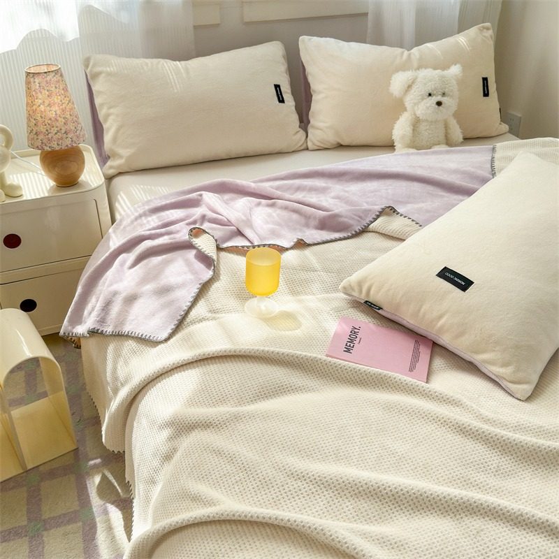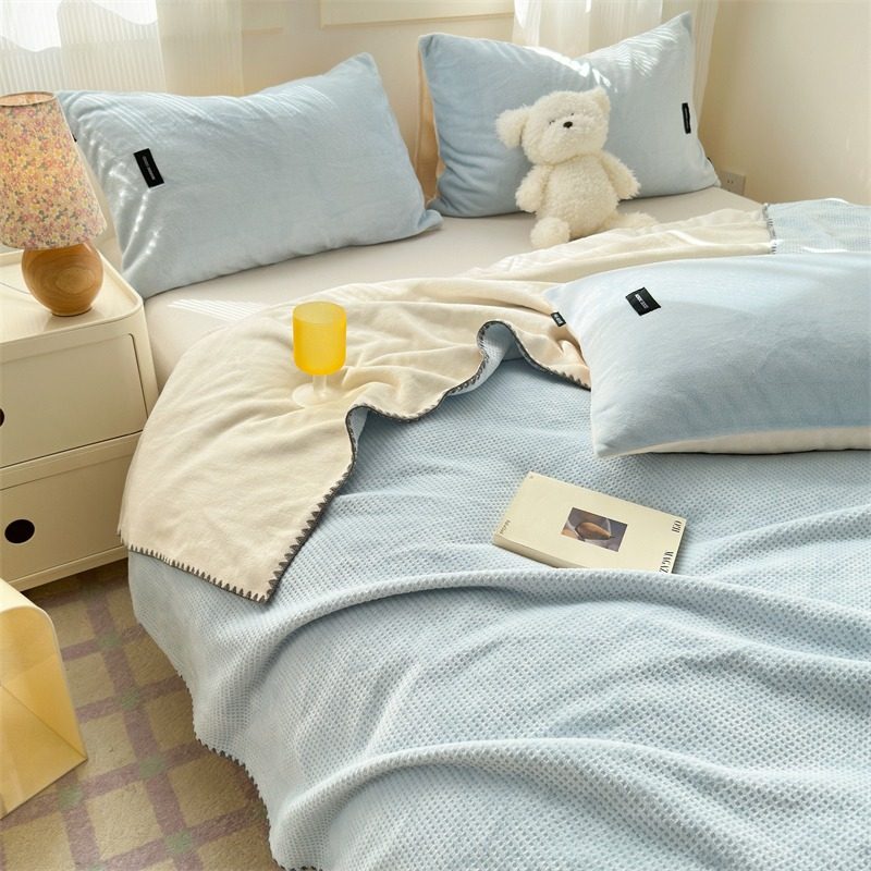 Japanese-Style Milk Velvet Composite Blanket, Waffle Blanket, Fleece Blanket, Leisure Blanket, Nap Blanket, Ultra-Soft Design