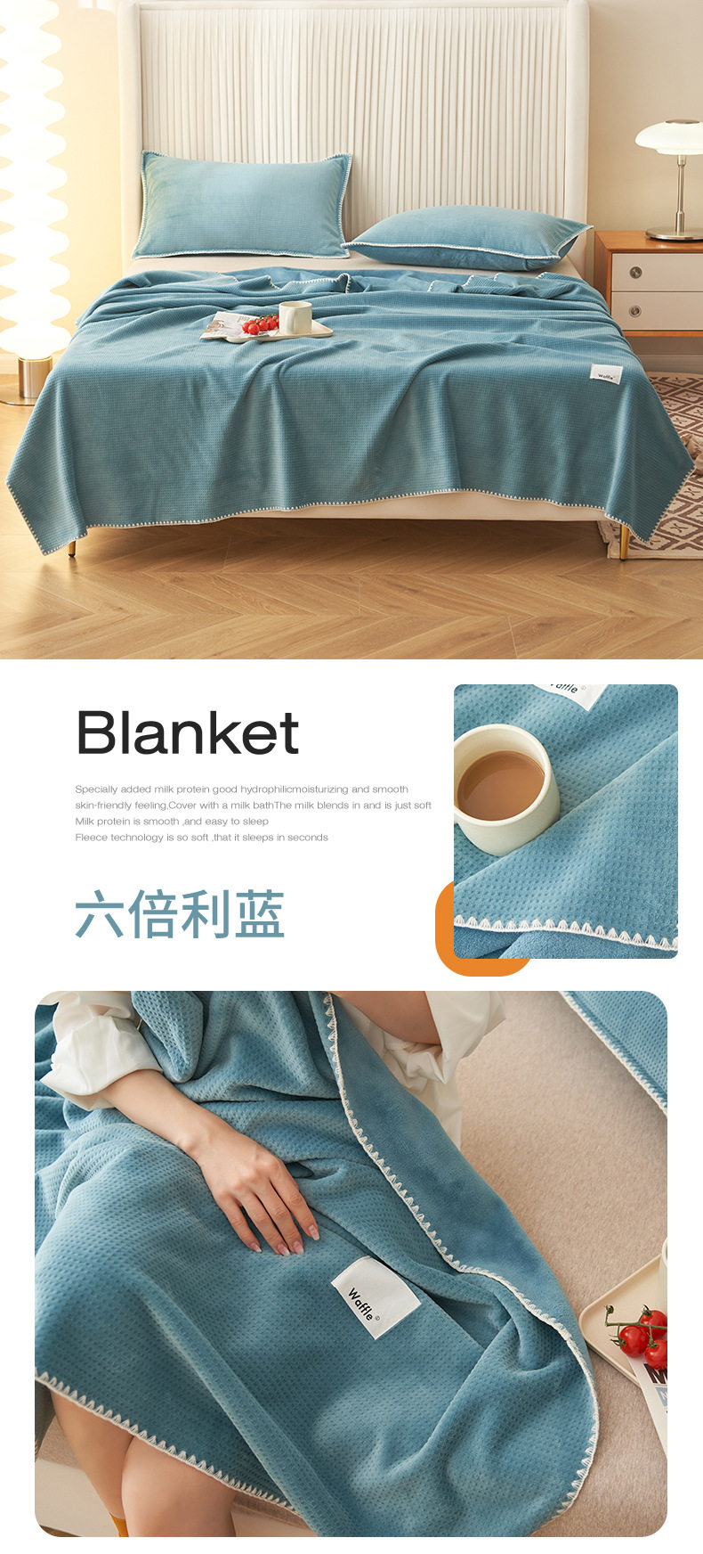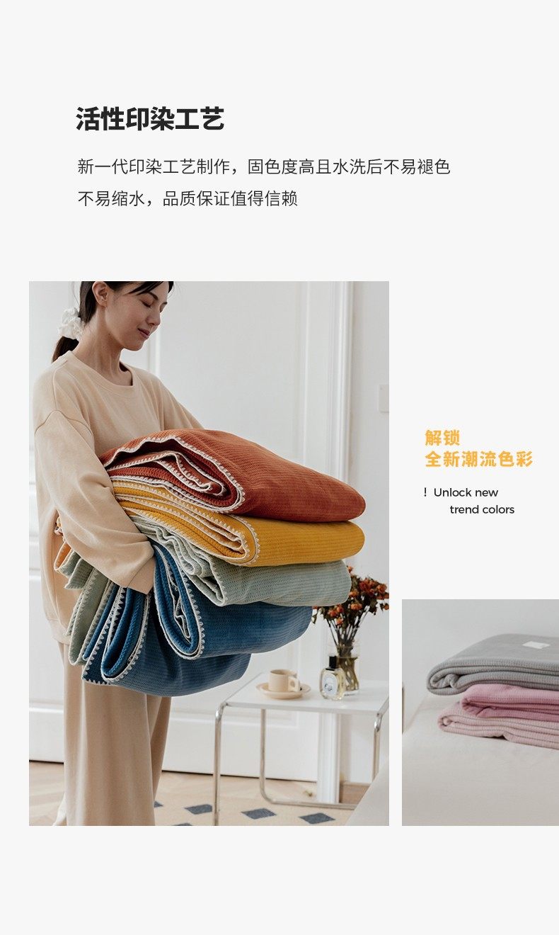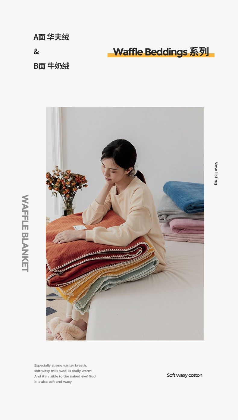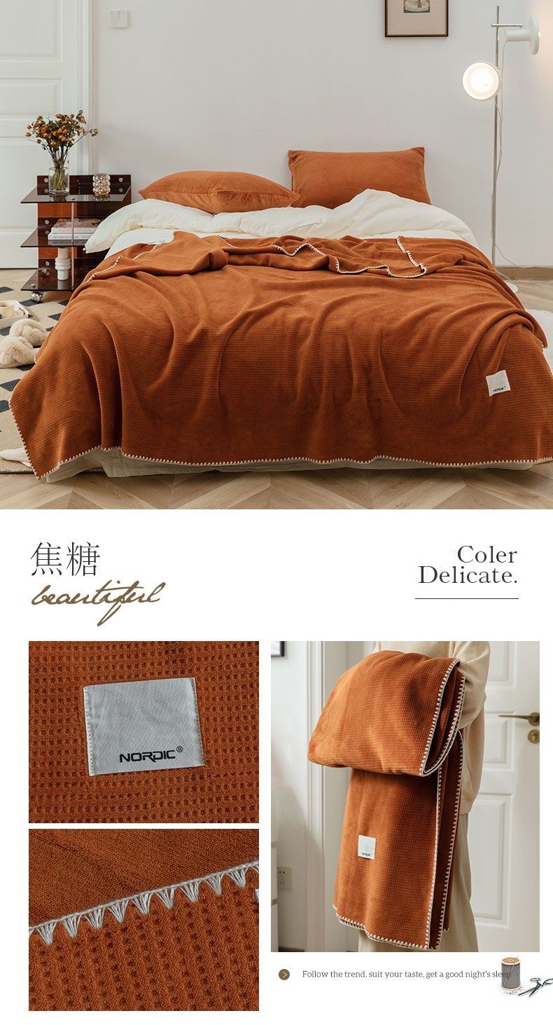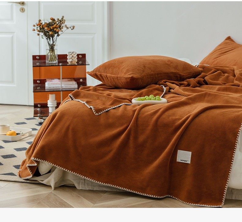 Japanese-Style Milk Velvet Composite Blanket, Waffle Blanket, Fleece Blanket, Leisure Blanket, Nap Blanket, Ultra-Soft Design