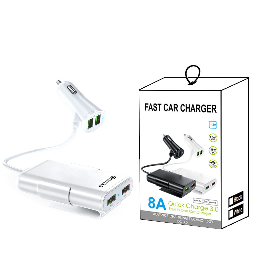 QC3.0 four-port car charger fast car charger fast charger qc3.0 flash charger new rear seat charger 4USB