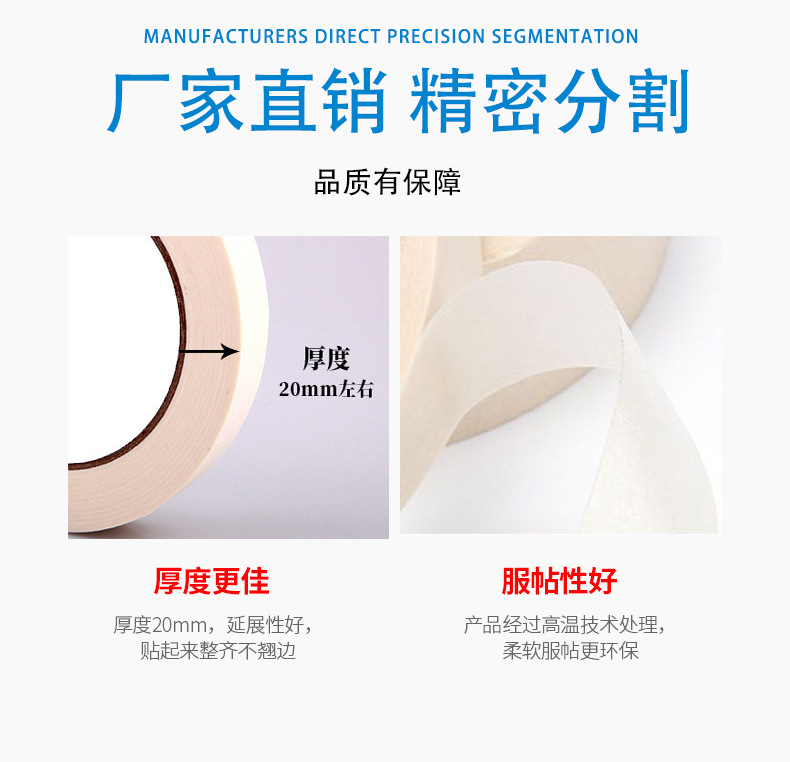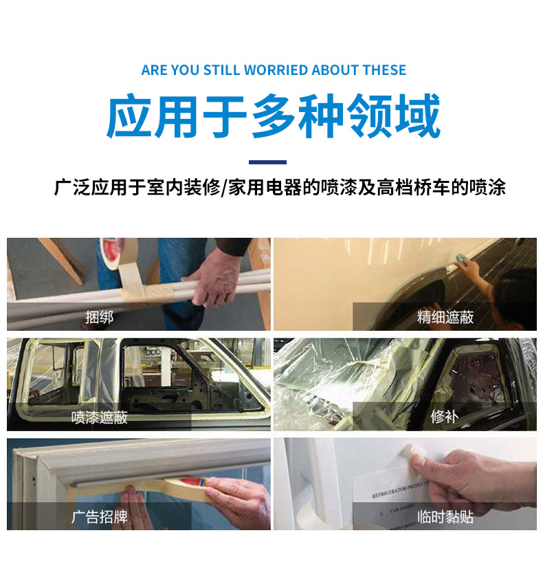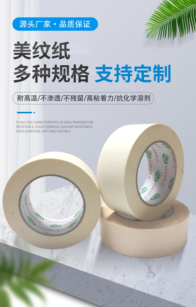 Masking Tape for Car Painting, Wrinkle Paper, Non-Shedding, High Adhesion, No Residue, High Temperature Resistant, Customizable