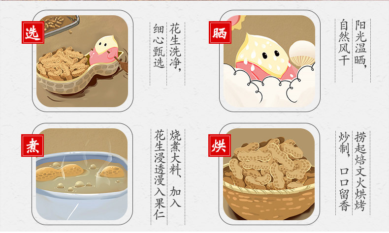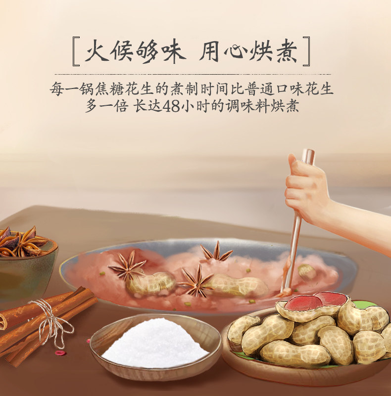 | Packaging specifications | Caramel Peanut 160 g/bag,Garlic peanut 160 g/bag,Garlic peanut 420 g/bag,Milk flavor peanut 420 g/bag |