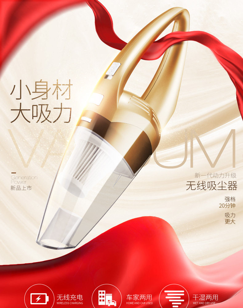 Car Wireless Vacuum Cleaner Household Handheld Small Vacuum Cleaner with Strong Suction Power to Suck Mites and Vacuum Mop