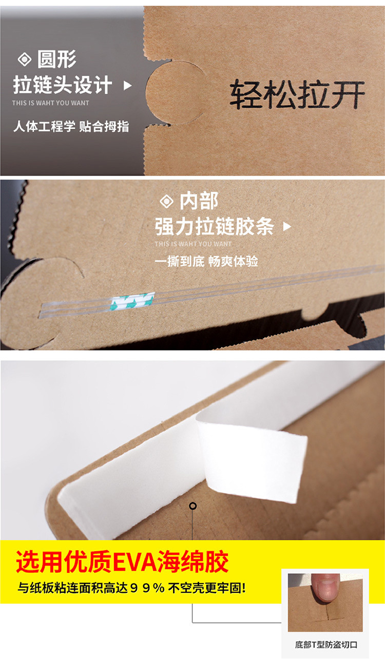 Express Logistics Cosmetics Health Care Products Luggage Special Hard Plus Hard Free Tape Double-sided Color Zipper Carton Customization