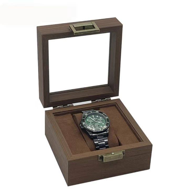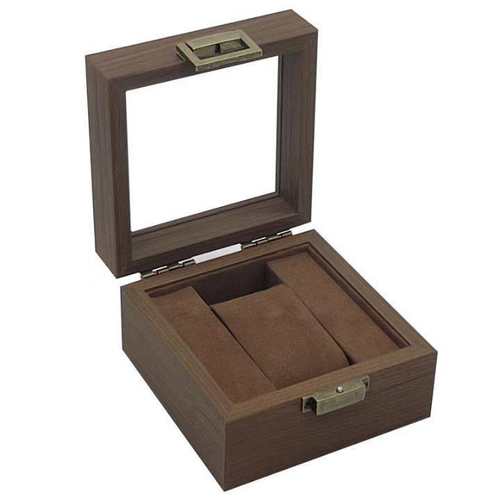 Vintage Wooden Black Walnut Watch Storage Box Wristwatch Jewelry Shop Display Box with Lock Buckle Dust-proof Counter Same Style