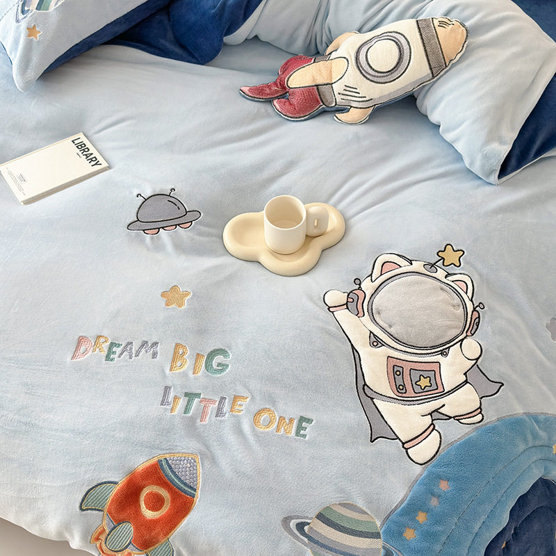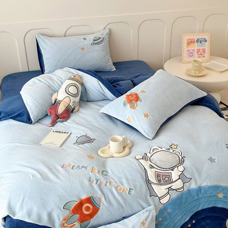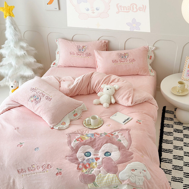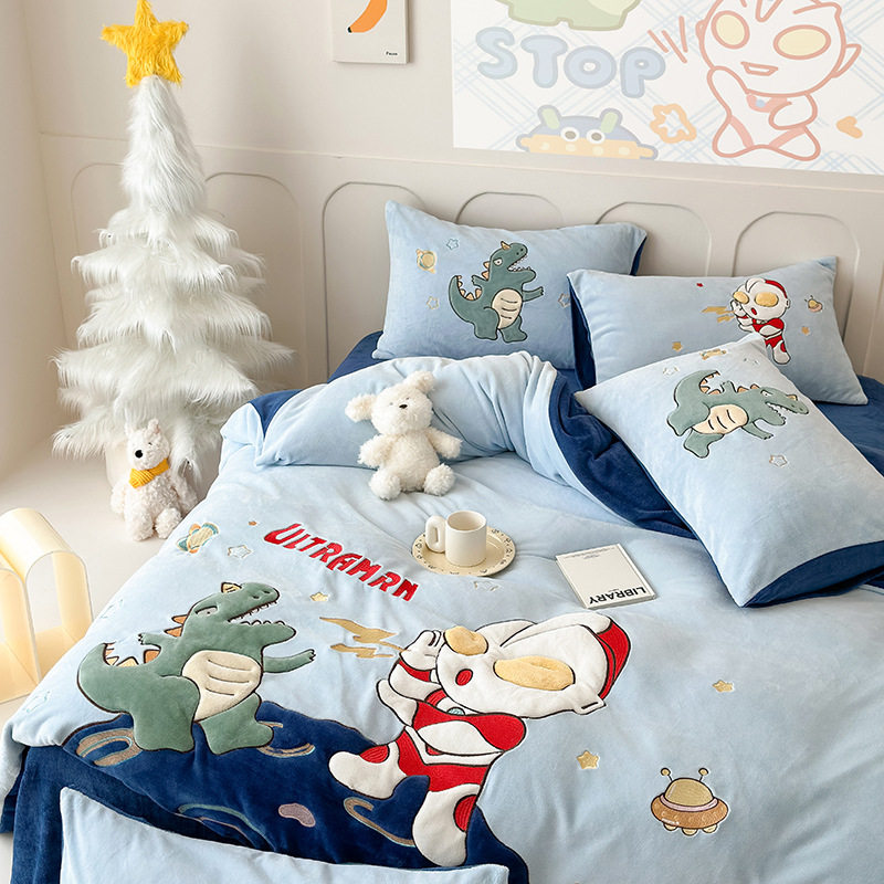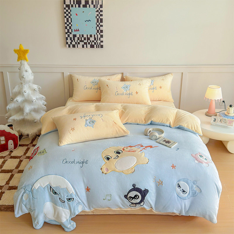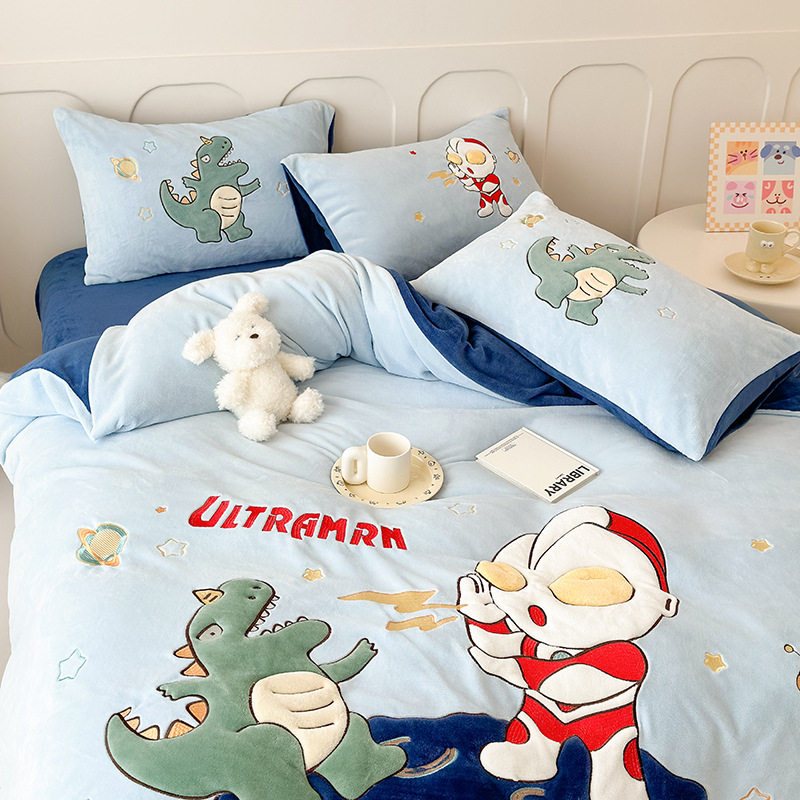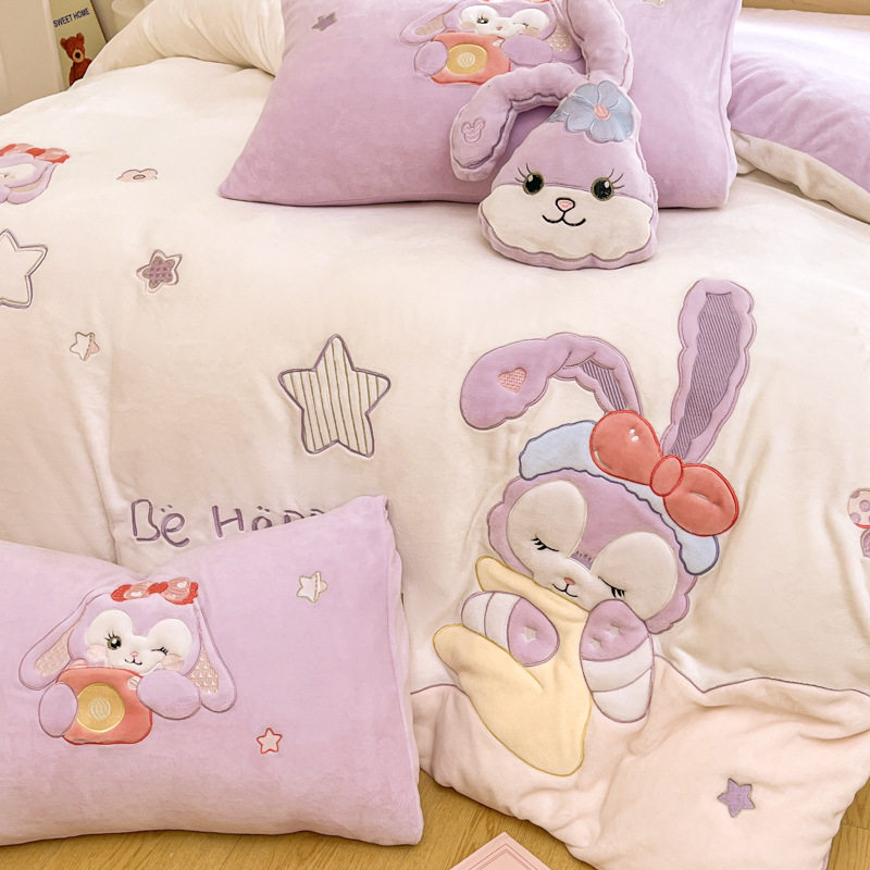 | Cross-border foreign trade dedicated dropshipping | Nantong home textiles korean style cartoon thickened milk velvet three-piece set princess style embroidered girl boy appliqué autumn winter class a maternal and infant grade four-piece bedding set factory direct sales |