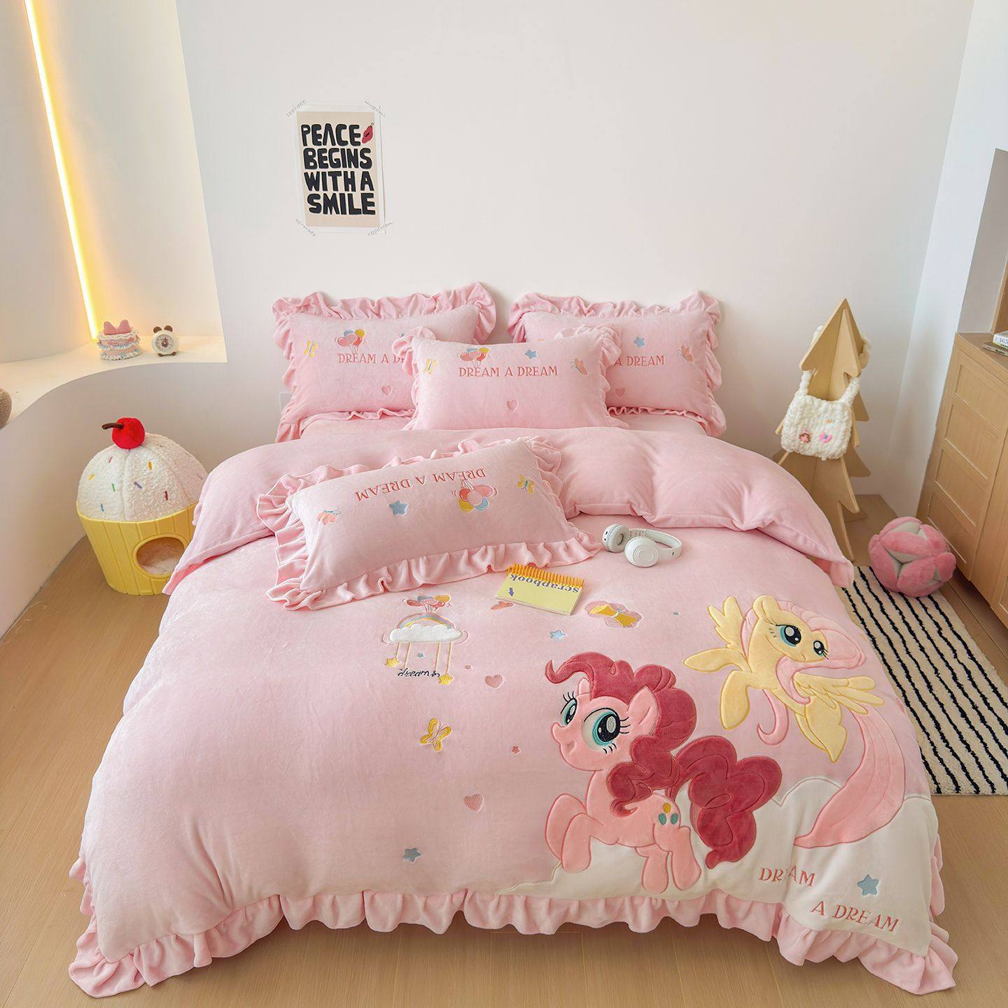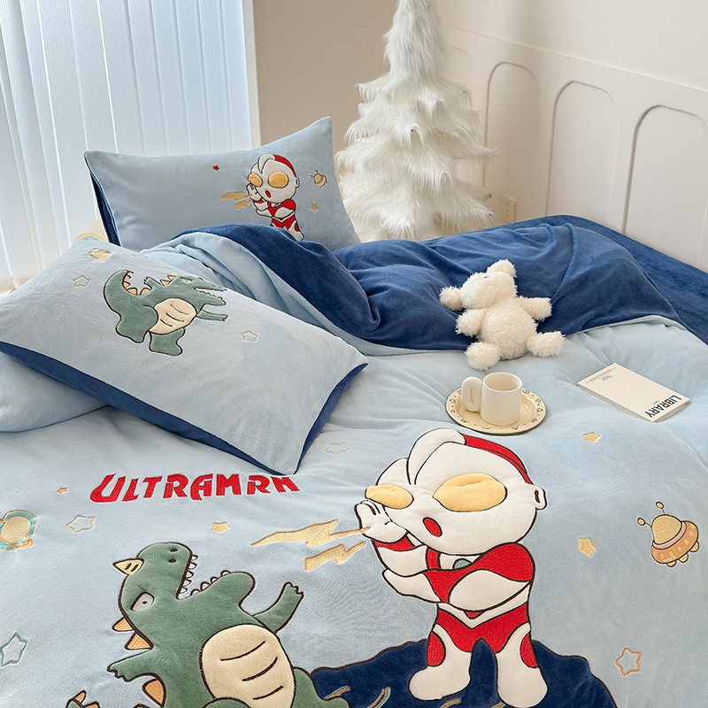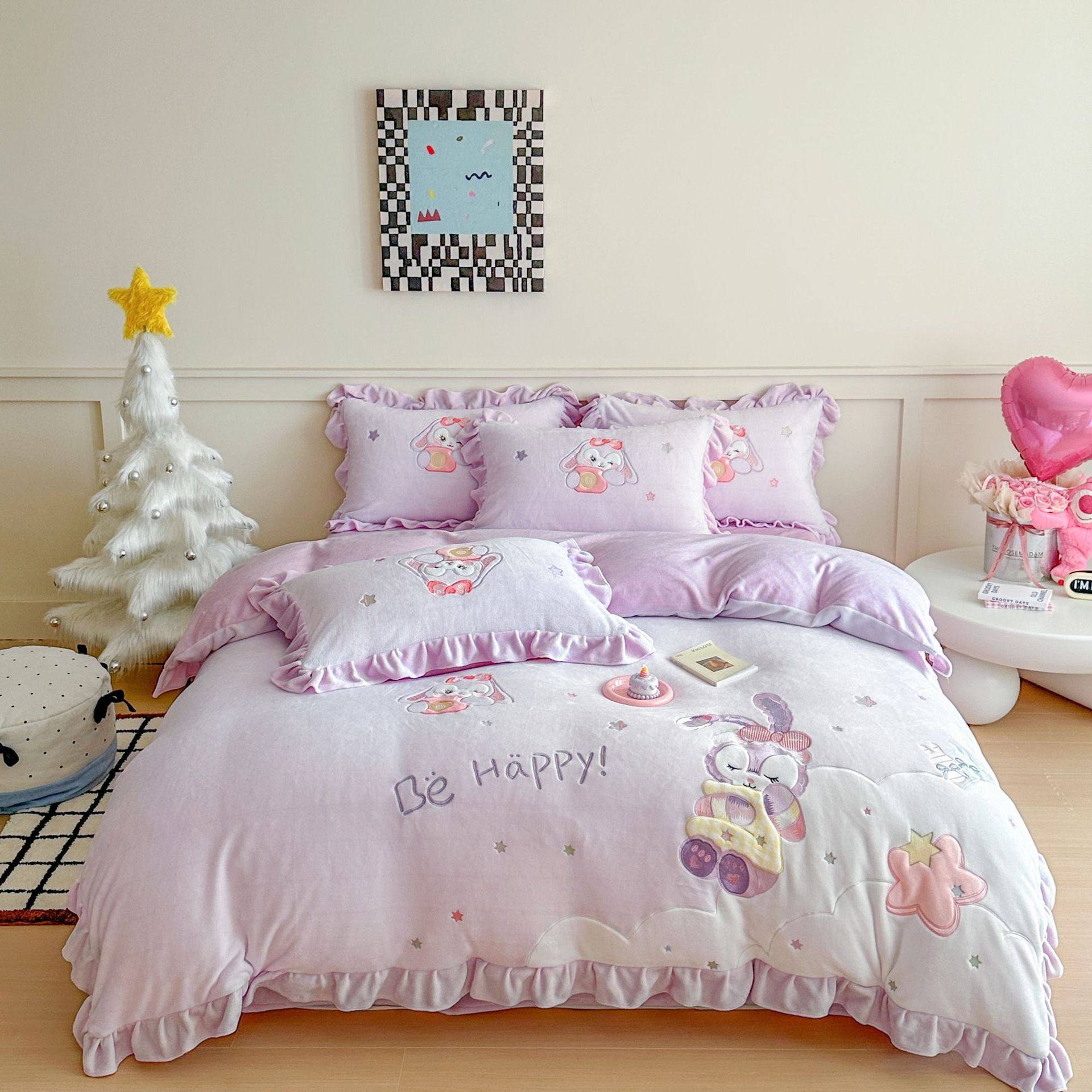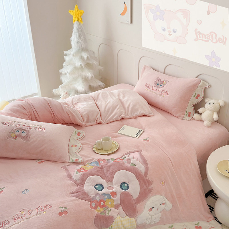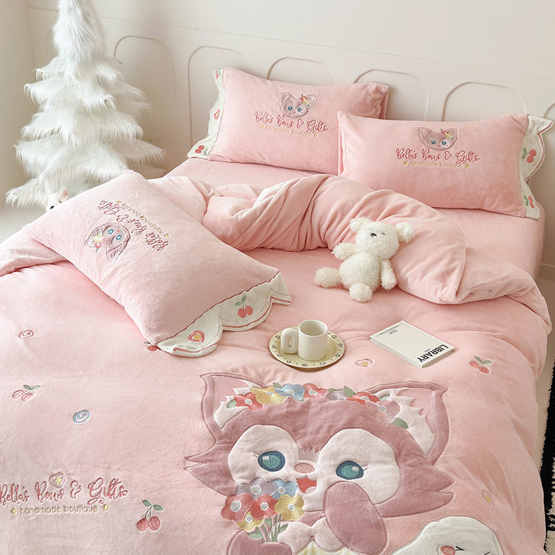 | Cross-border foreign trade dedicated dropshipping | Nantong home textiles korean style cartoon thickened milk velvet three-piece set princess style embroidered girl boy appliqué autumn winter class a maternal and infant grade four-piece bedding set factory direct sales |