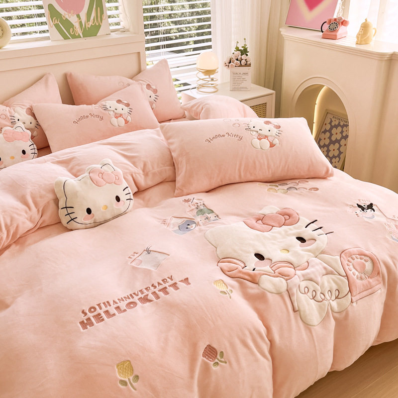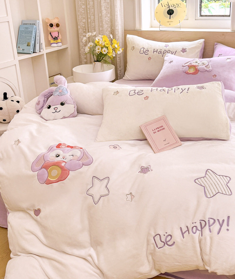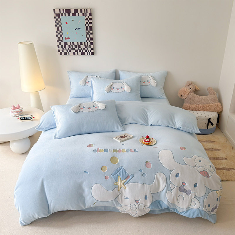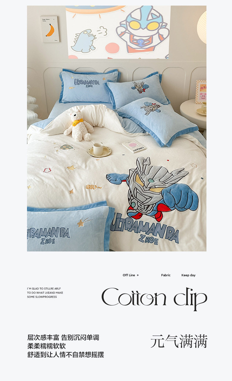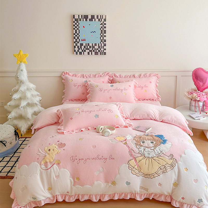 | Cross-border foreign trade dedicated dropshipping | Nantong home textiles korean style cartoon thickened milk velvet three-piece set princess style embroidered girl boy appliqué autumn winter class a maternal and infant grade four-piece bedding set factory direct sales |