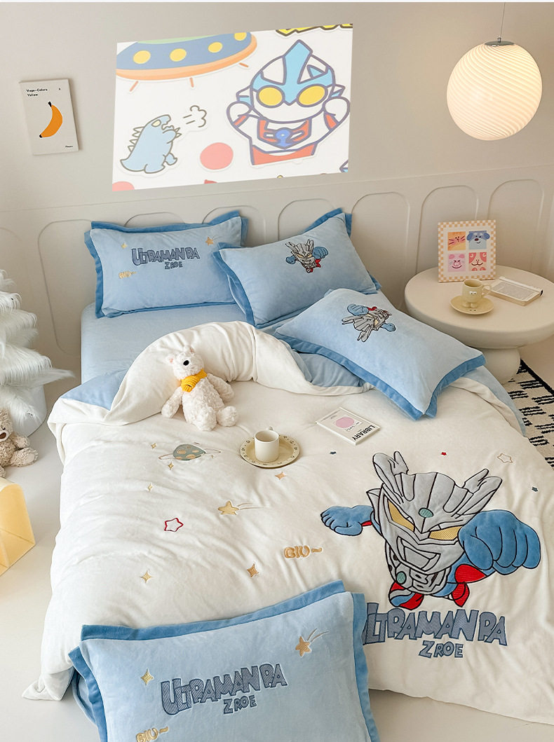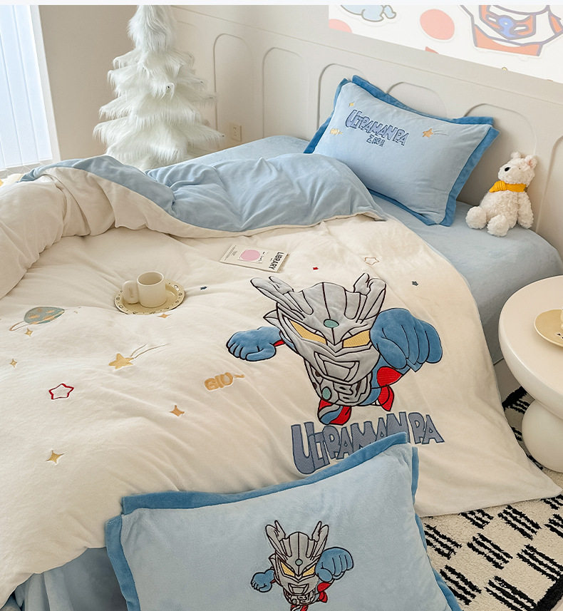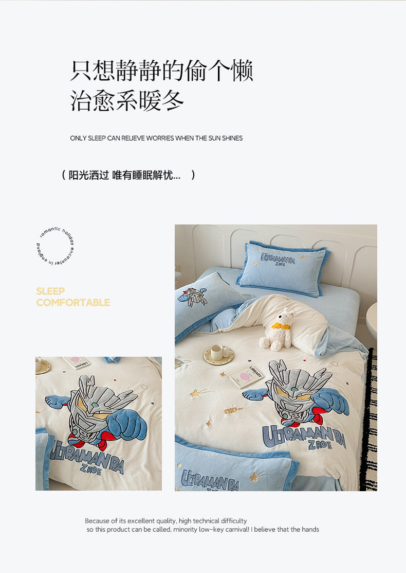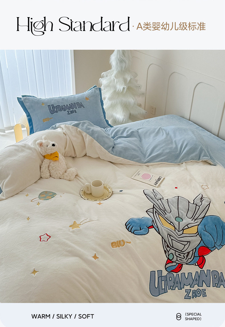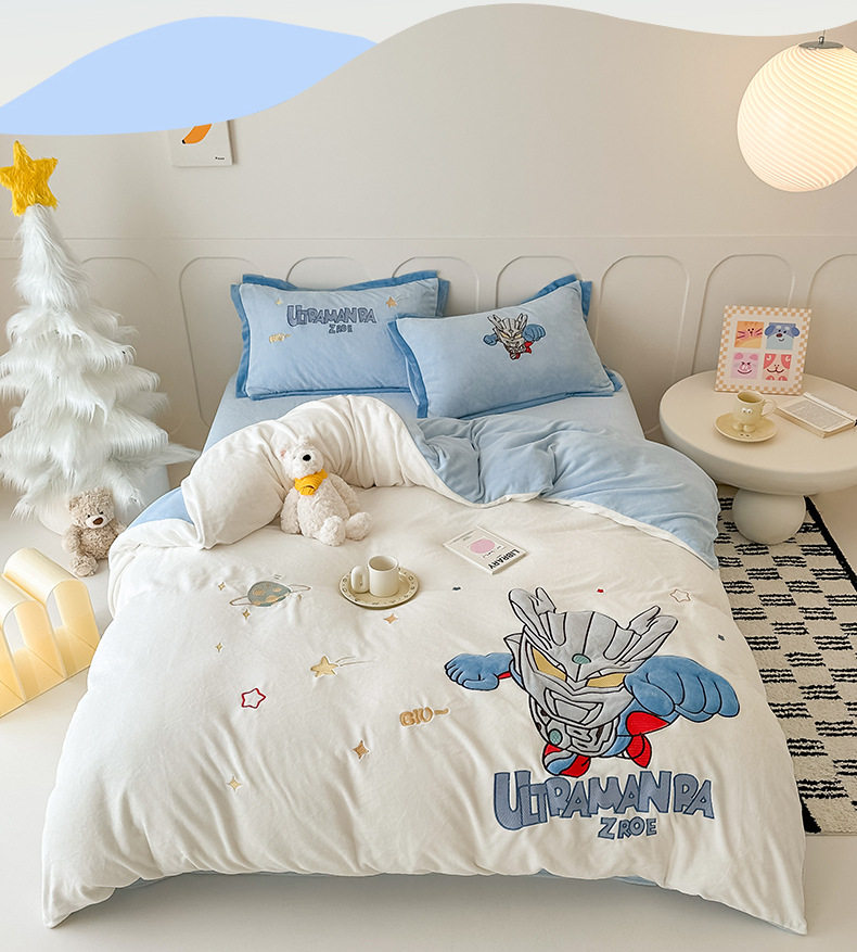 Children's Cartoon Milk Velvet Four-Piece Set, Princess Style, Class Aa Thickened Autumn and Winter Bedding, Three-Piece Set for Boys and Girls