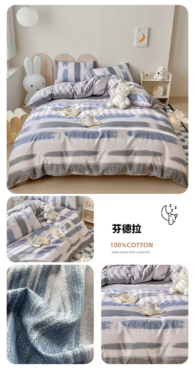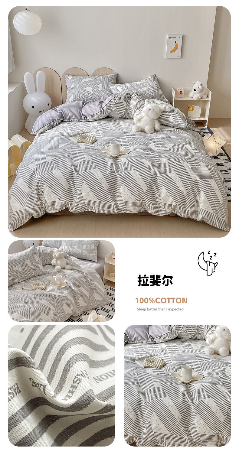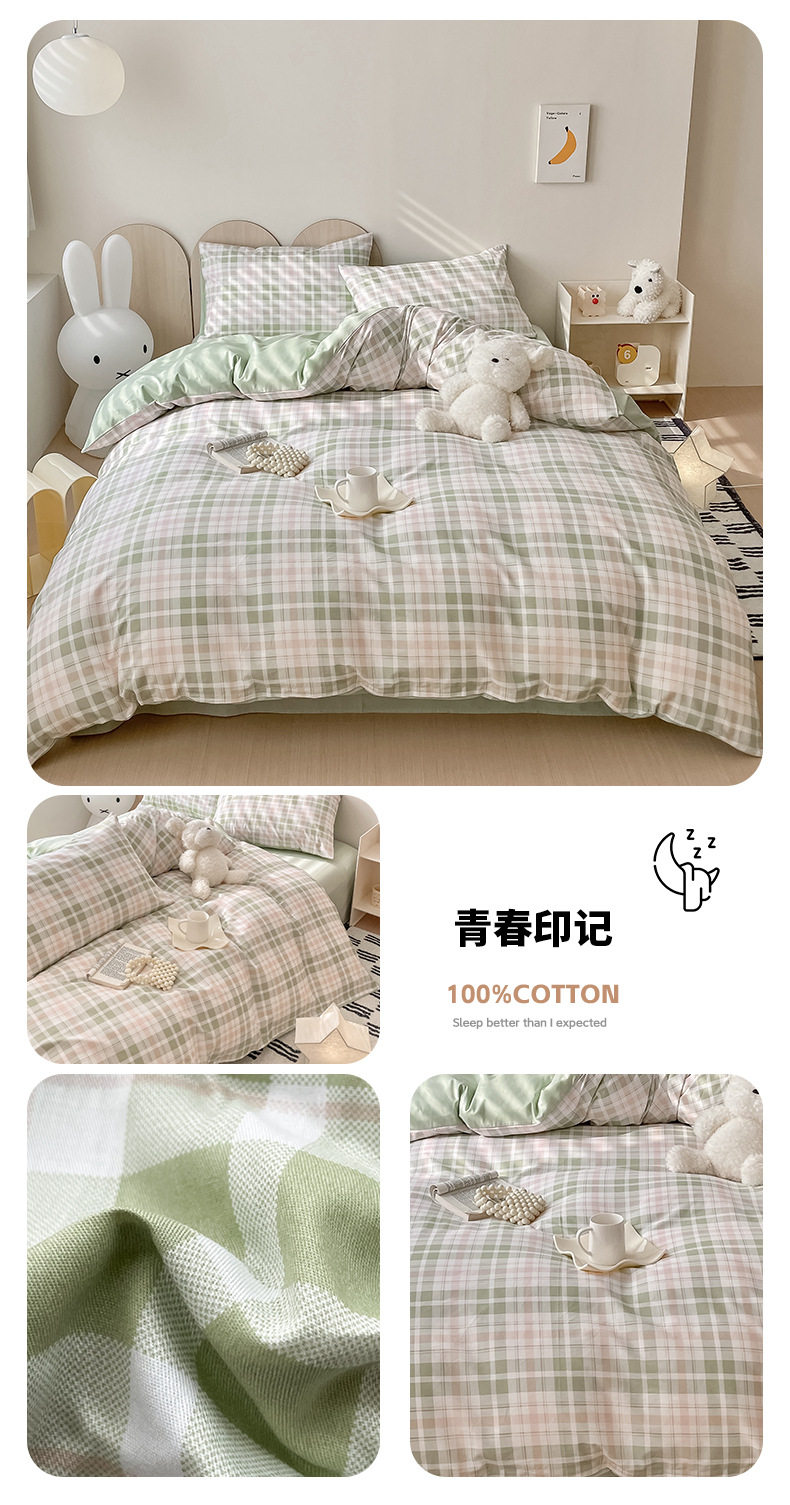 Four-piece Bed Set Cotton Nordic Style Four-piece Set 100 Cotton Spring and Autumn Bed Sheet Bed Hat Single Dormitory Kit