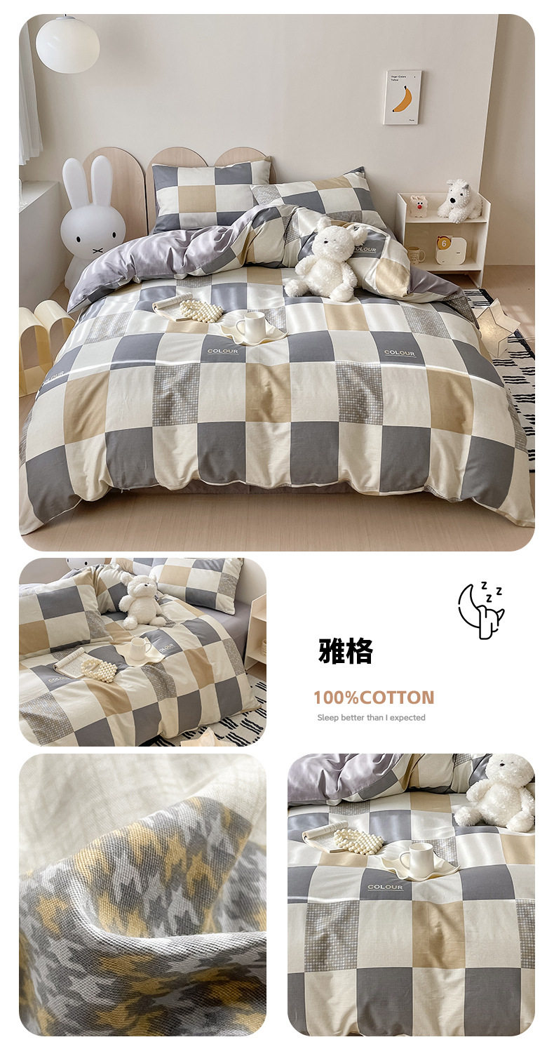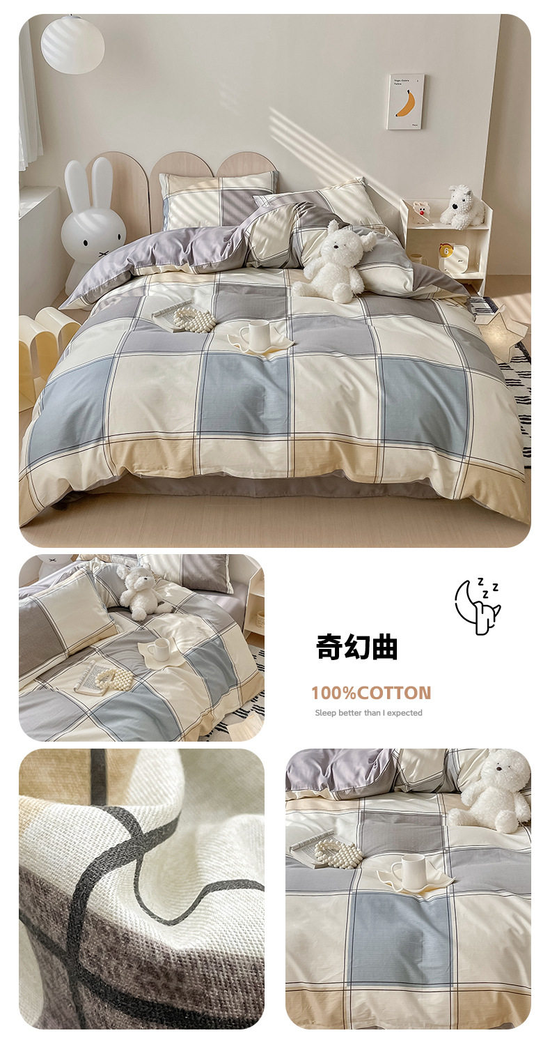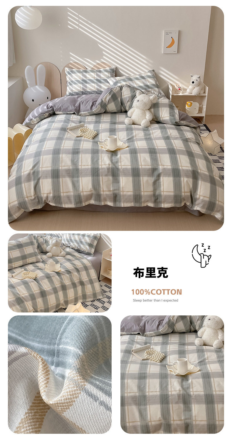 Four-piece Bed Set Cotton Nordic Style Four-piece Set 100 Cotton Spring and Autumn Bed Sheet Bed Hat Single Dormitory Kit