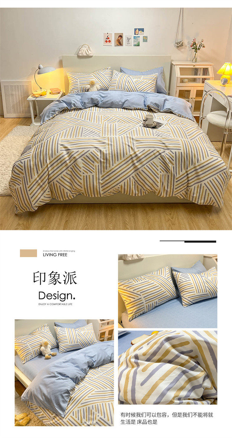 | Dimensions | 1.2m bed-three-piece bed sheet set (quilt cover 150*200, bed sheet 180*230cm),1.5/1.8m bed-sheet four-piece set (quilt cover 200*230, sheets 230*245cm),1.5m bed - four-piece fitted sheet set (quilt cover 200*230, fitted sheet 150*200cm),1.8m bed - four-piece fitted sheet set (quilt cover 200*230, fitted sheet 180*200cm),Single quilt cover 150*200cm,Single quilt cover 200*230cm,2.0m bed-sheet four-piece set (quilt cover 220*240, sheets 245*265cm),Single quilt cover 220*240cm |