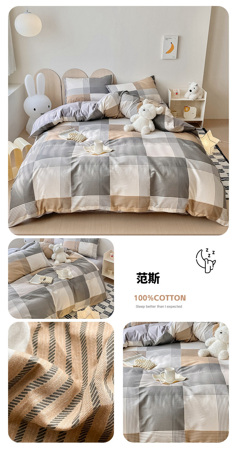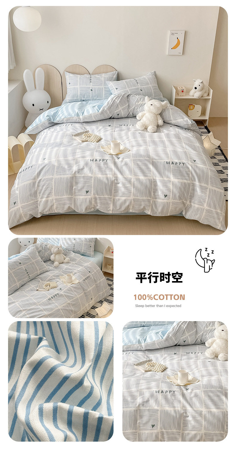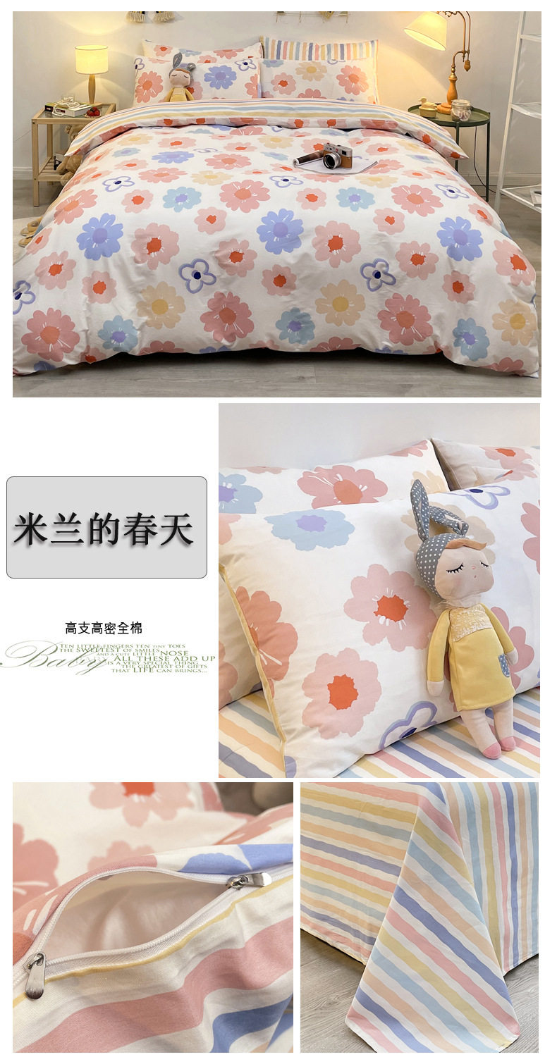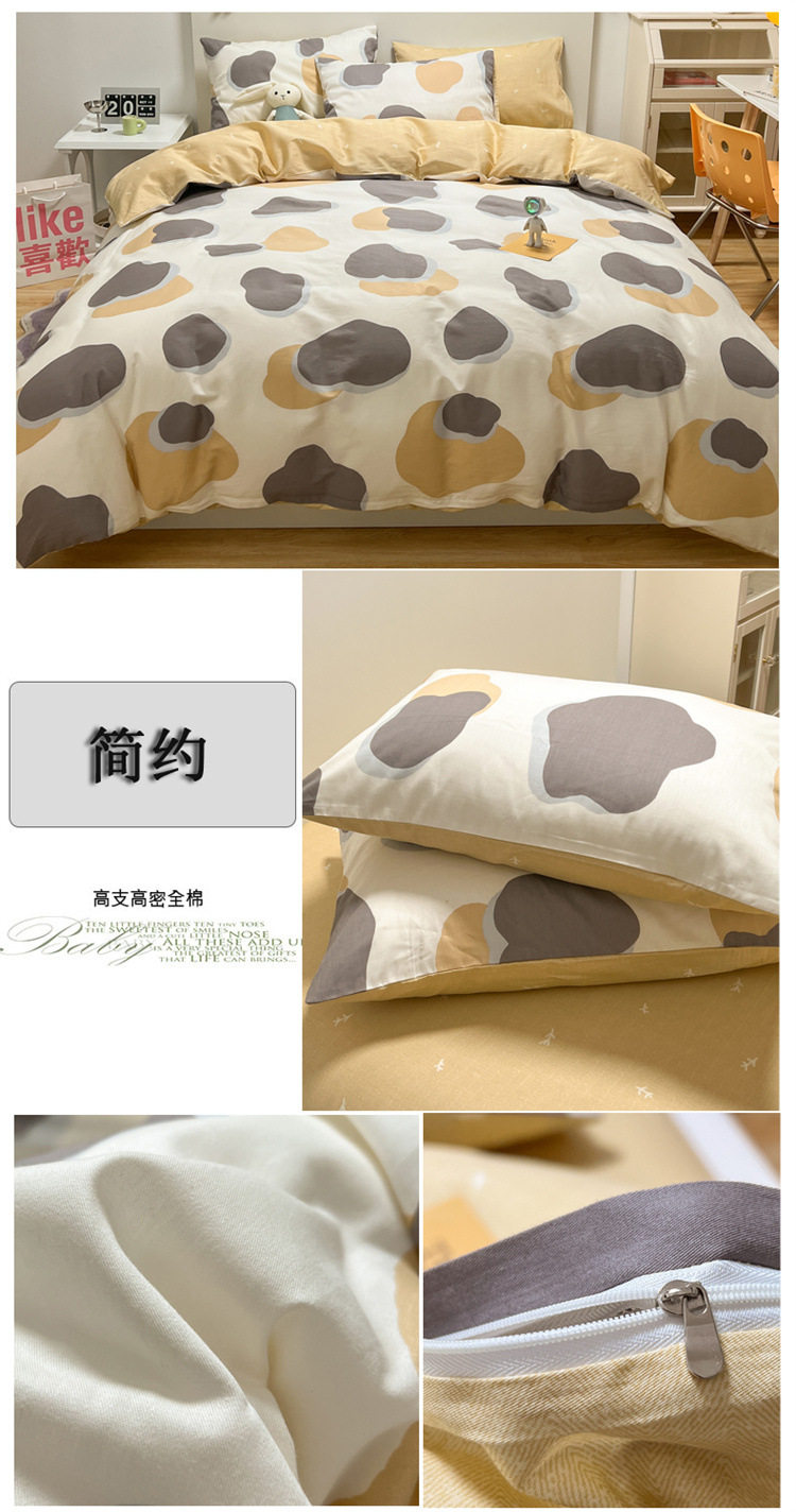 | Dimensions | 1.2m bed-three-piece bed sheet set (quilt cover 150*200, bed sheet 180*230cm),1.5/1.8m bed-sheet four-piece set (quilt cover 200*230, sheets 230*245cm),1.5m bed - four-piece fitted sheet set (quilt cover 200*230, fitted sheet 150*200cm),1.8m bed - four-piece fitted sheet set (quilt cover 200*230, fitted sheet 180*200cm),Single quilt cover 150*200cm,Single quilt cover 200*230cm,2.0m bed-sheet four-piece set (quilt cover 220*240, sheets 245*265cm),Single quilt cover 220*240cm |
