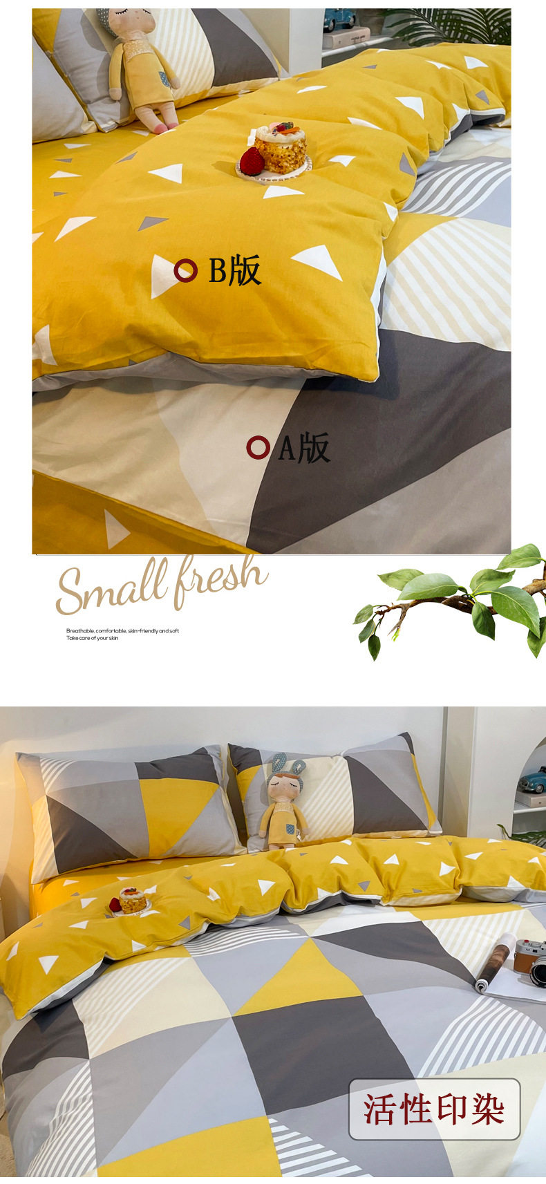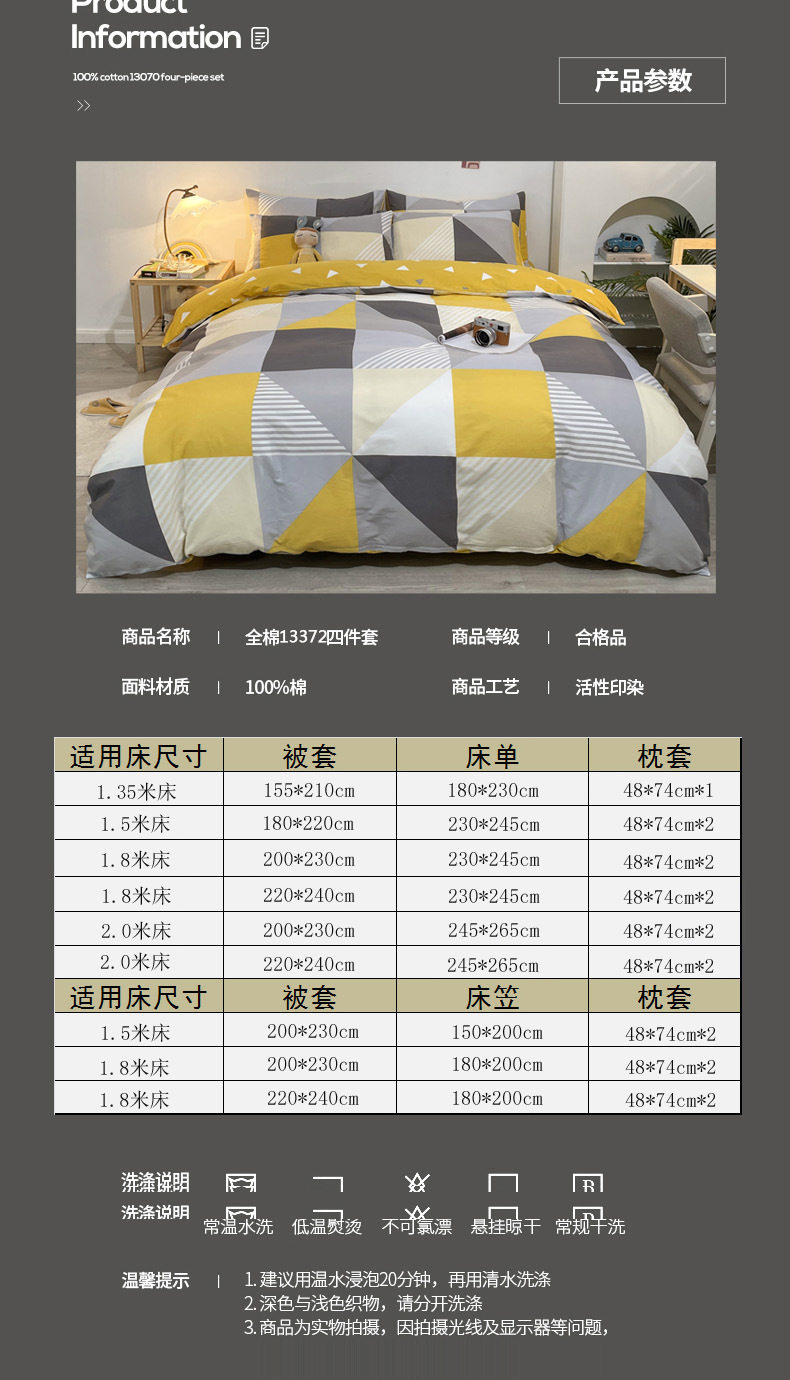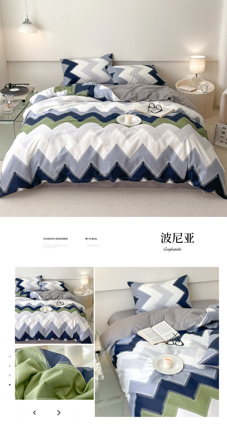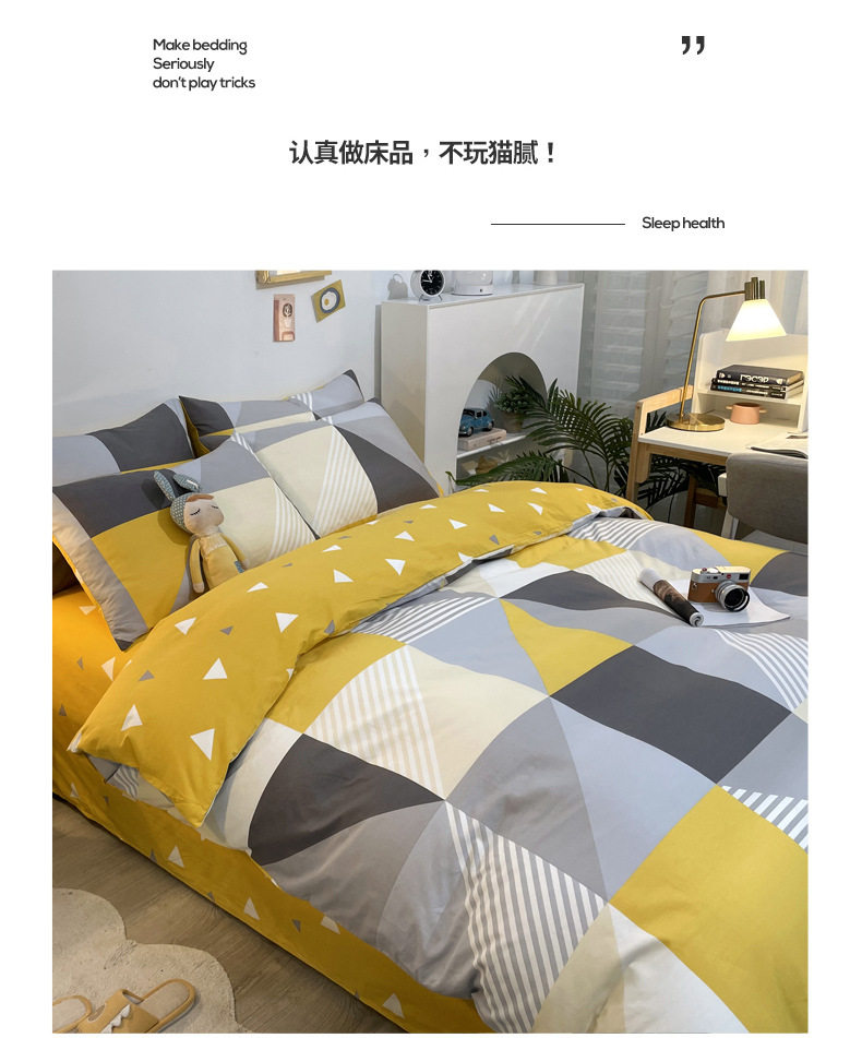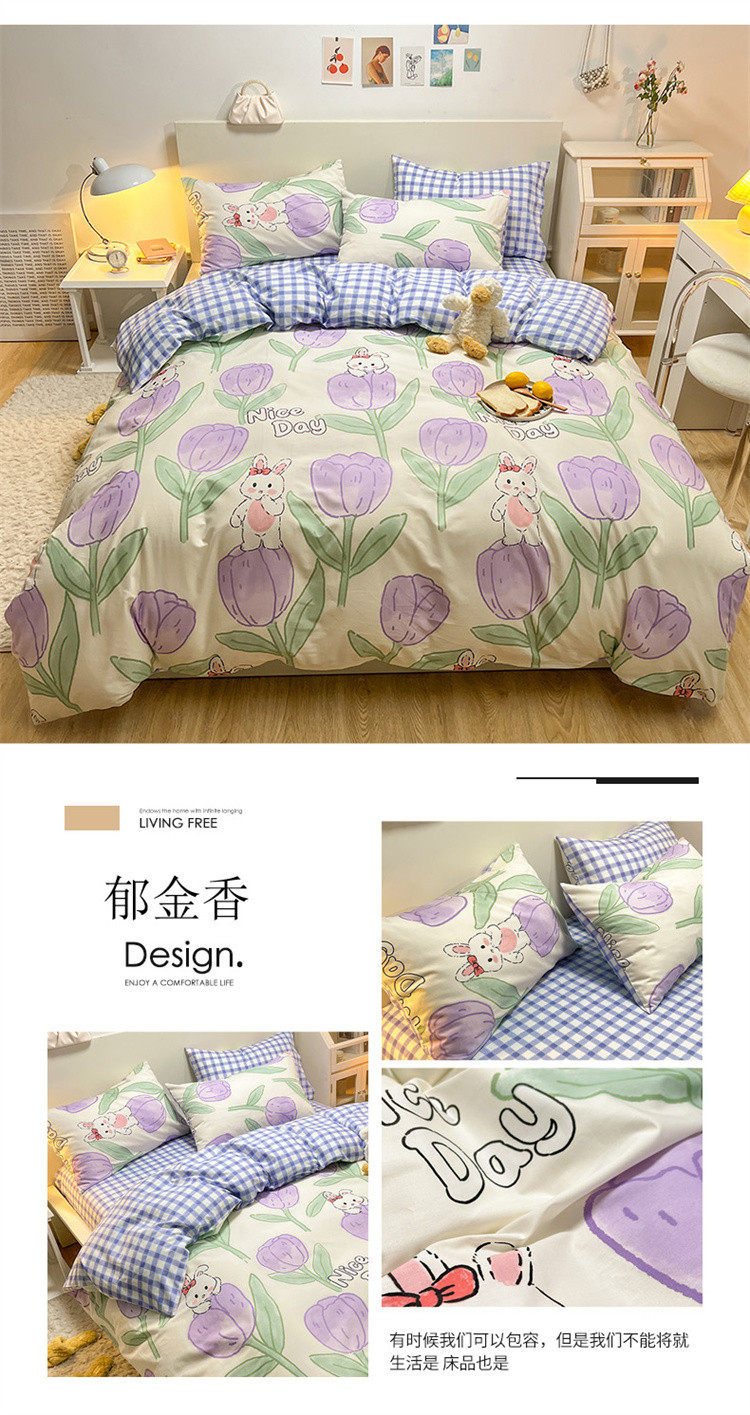 | Dimensions | 1.2m bed-three-piece bed sheet set (quilt cover 150*200, bed sheet 180*230cm),1.5/1.8m bed-sheet four-piece set (quilt cover 200*230, sheets 230*245cm),1.5m bed - four-piece fitted sheet set (quilt cover 200*230, fitted sheet 150*200cm),1.8m bed - four-piece fitted sheet set (quilt cover 200*230, fitted sheet 180*200cm),Single quilt cover 150*200cm,Single quilt cover 200*230cm,2.0m bed-sheet four-piece set (quilt cover 220*240, sheets 245*265cm),Single quilt cover 220*240cm |