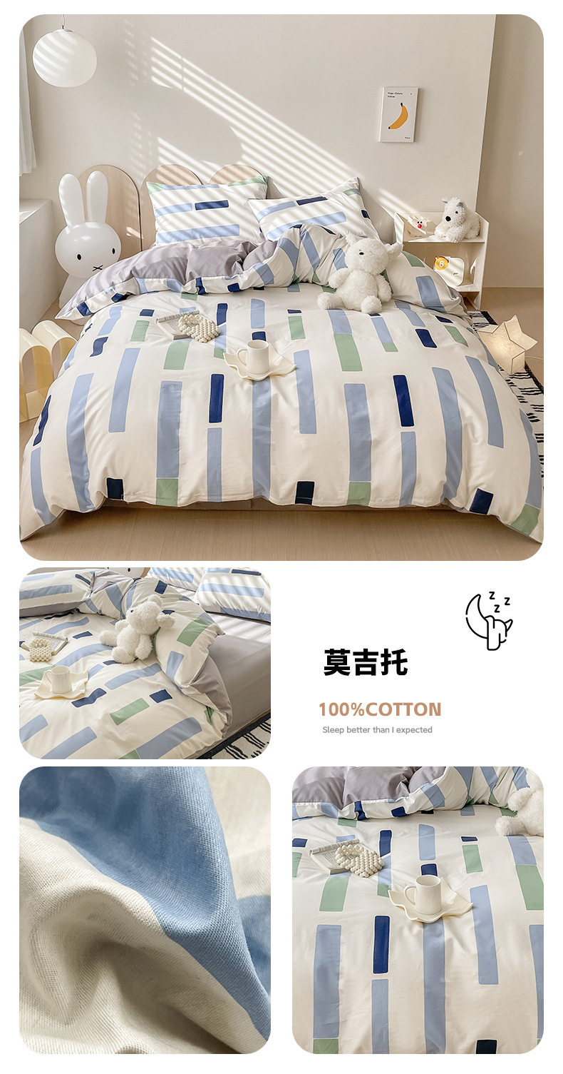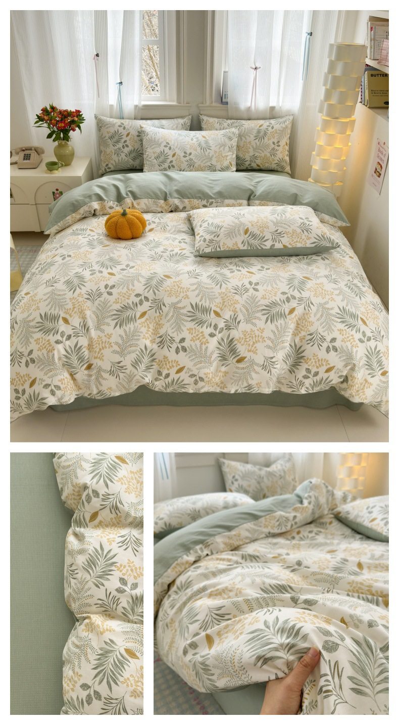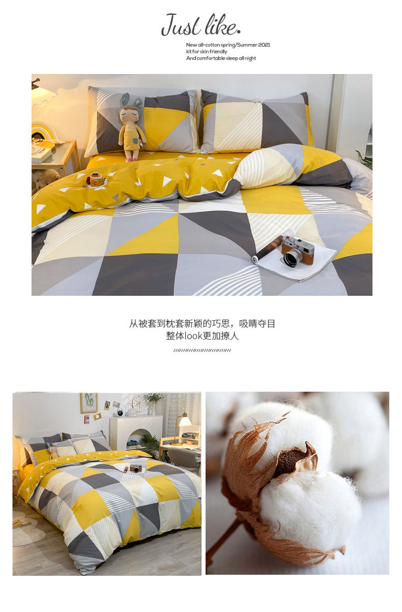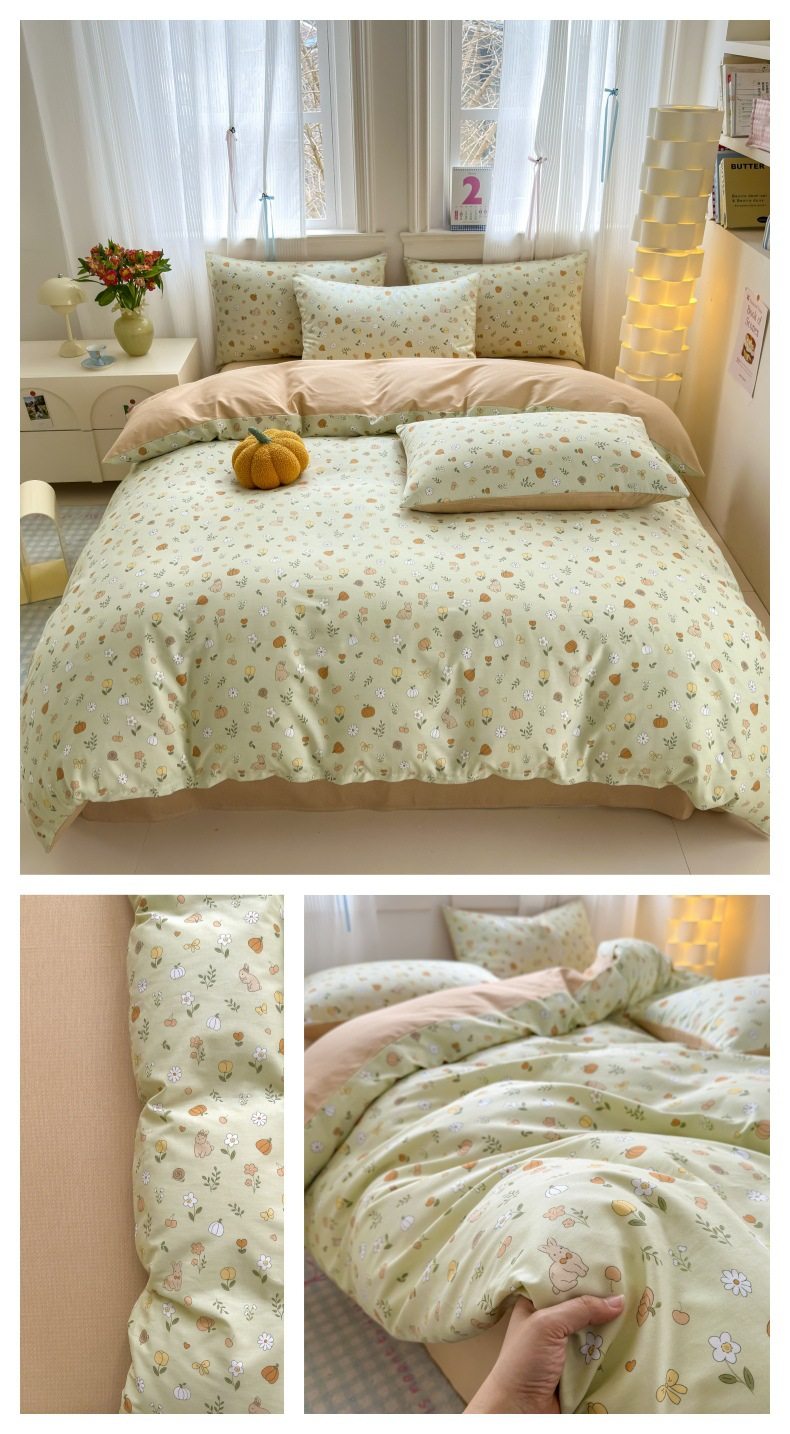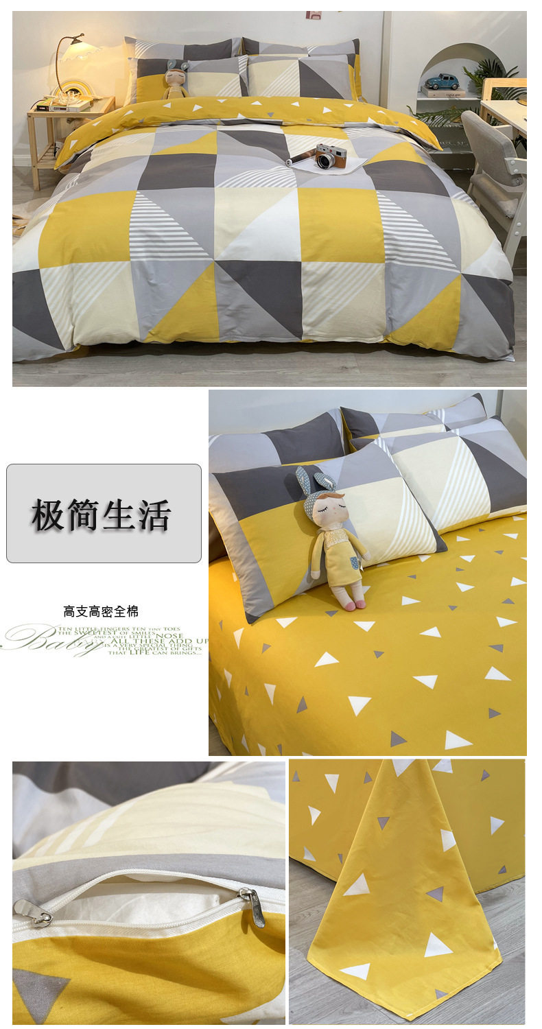 Four-piece Bed Set Cotton Nordic Style Four-piece Set 100 Cotton Spring and Autumn Bed Sheet Bed Hat Single Dormitory Kit