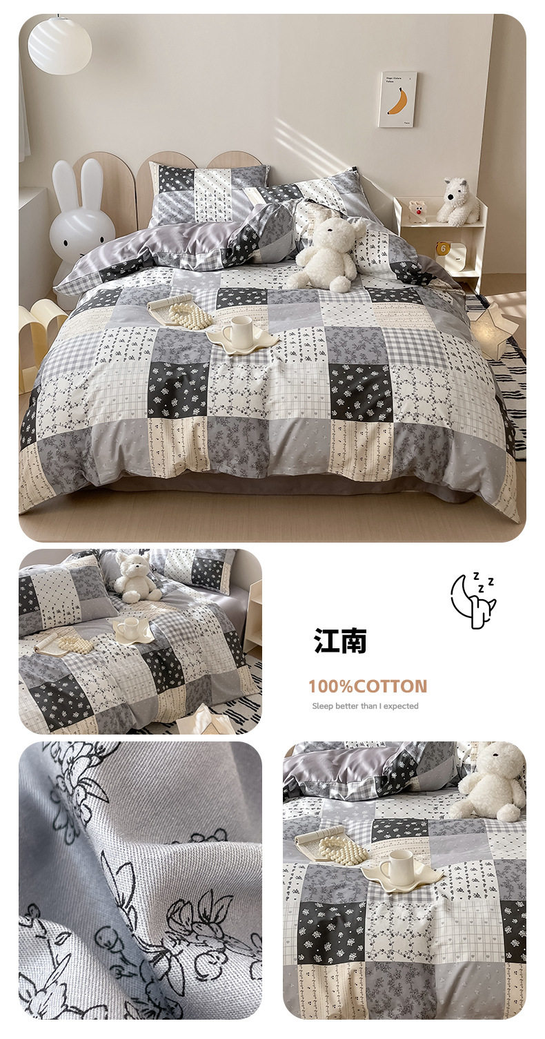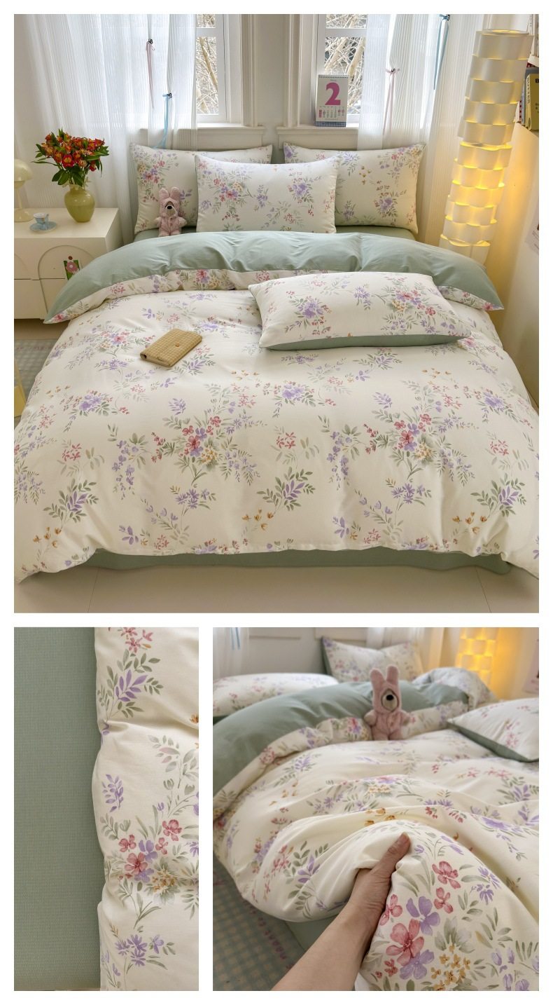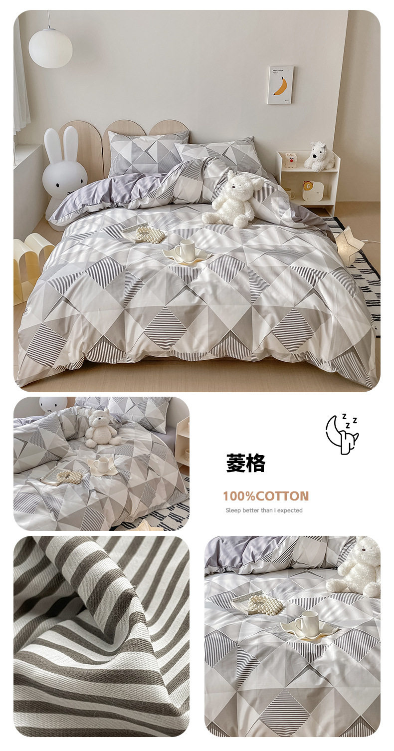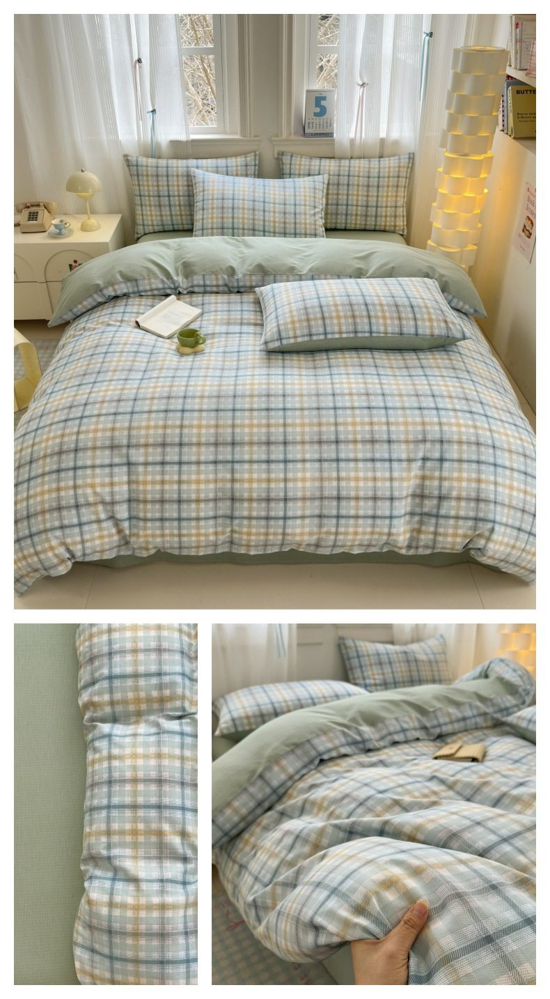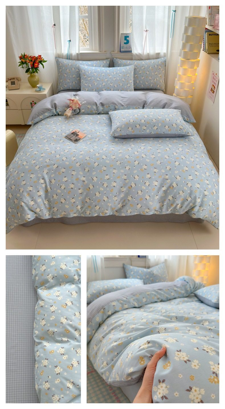 Four-piece Bed Set Cotton Nordic Style Four-piece Set 100 Cotton Spring and Autumn Bed Sheet Bed Hat Single Dormitory Kit