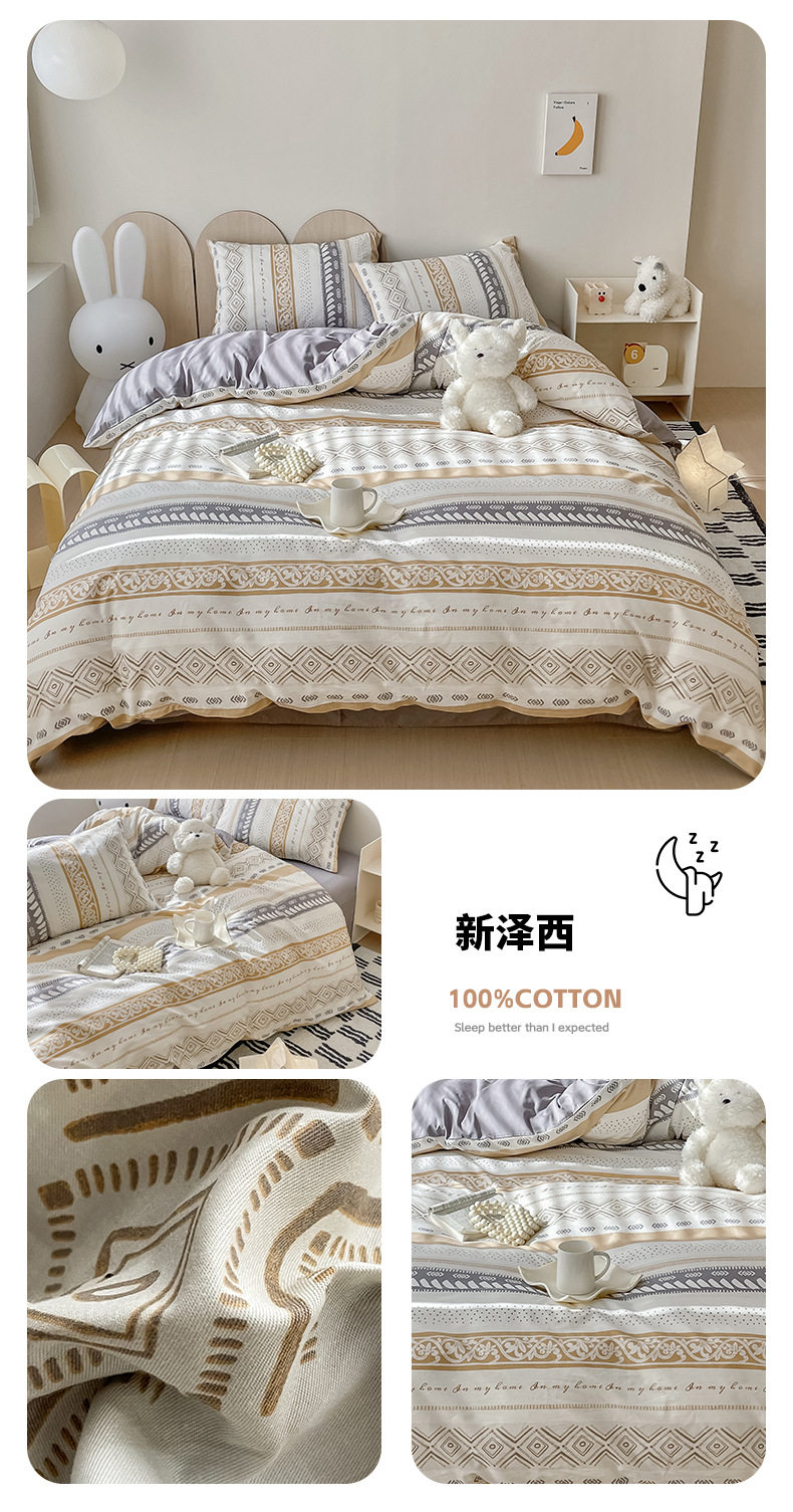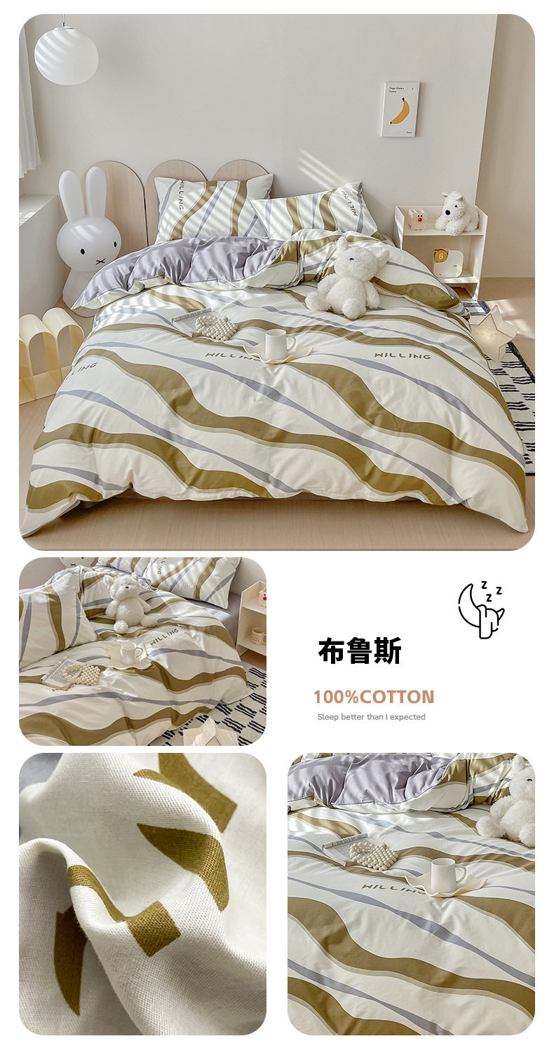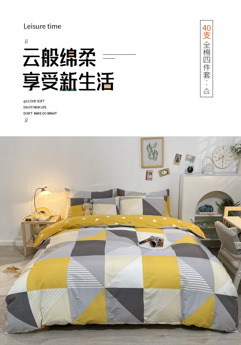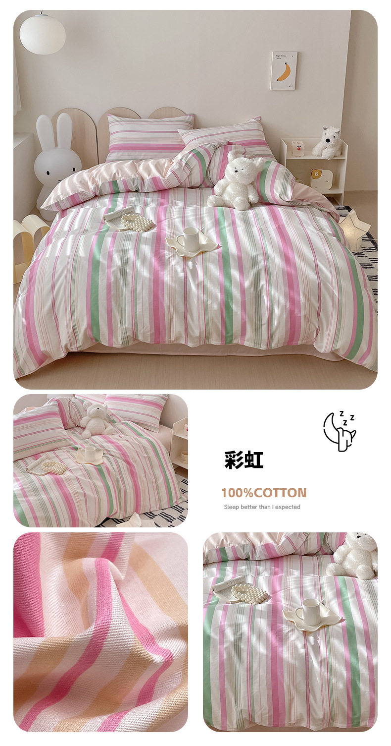 Four-piece Bed Set Cotton Nordic Style Four-piece Set 100 Cotton Spring and Autumn Bed Sheet Bed Hat Single Dormitory Kit