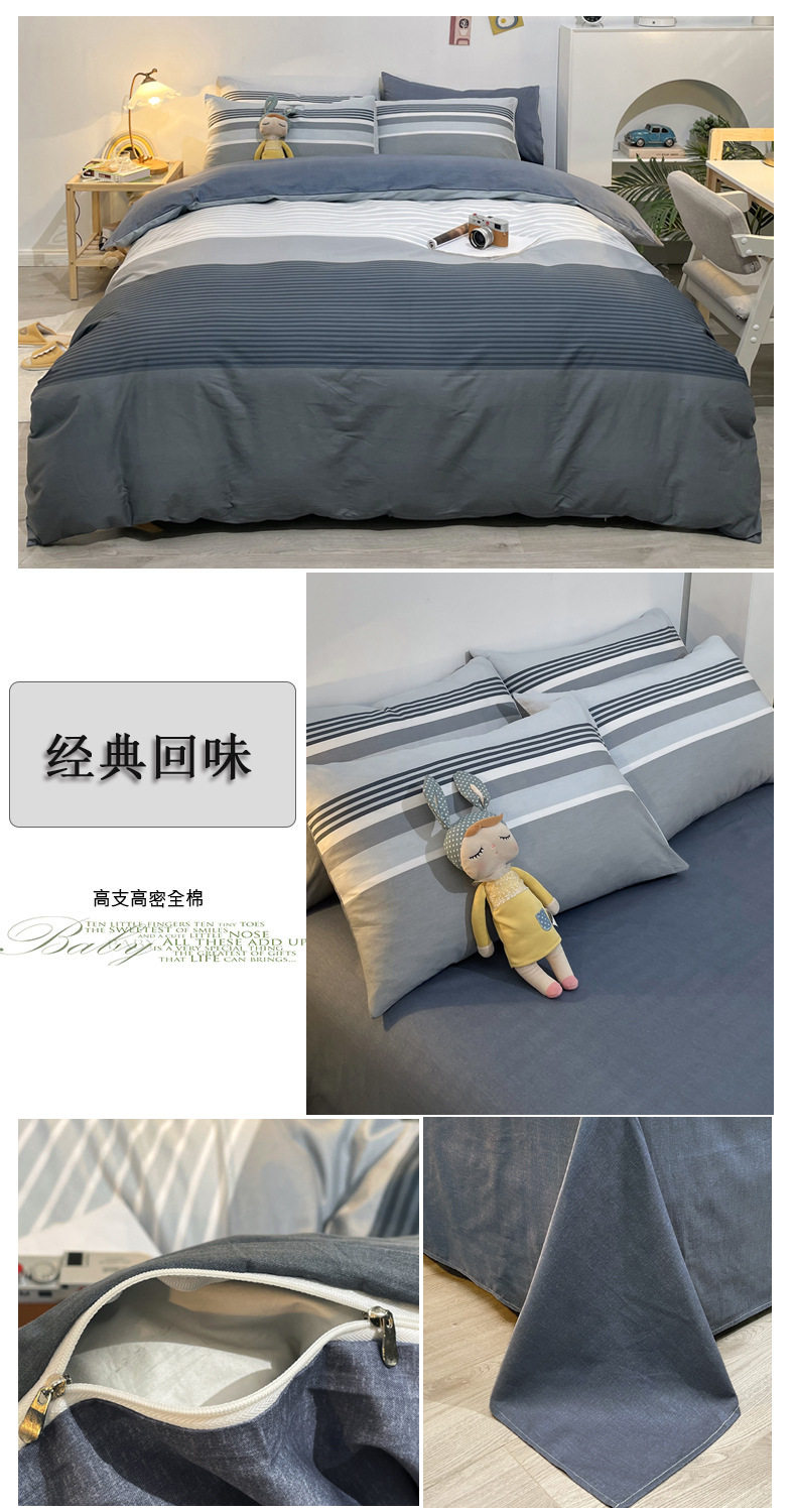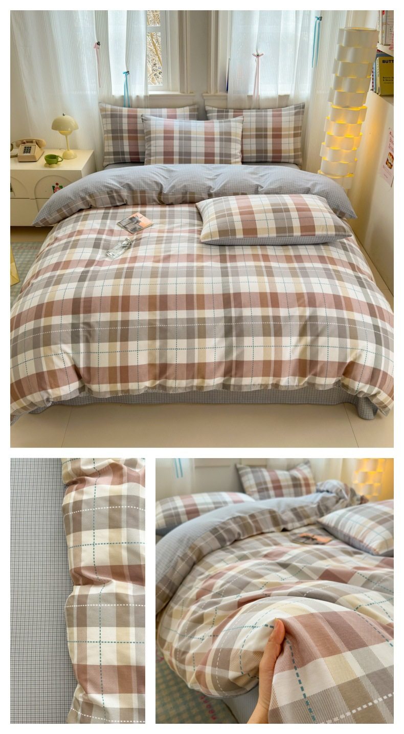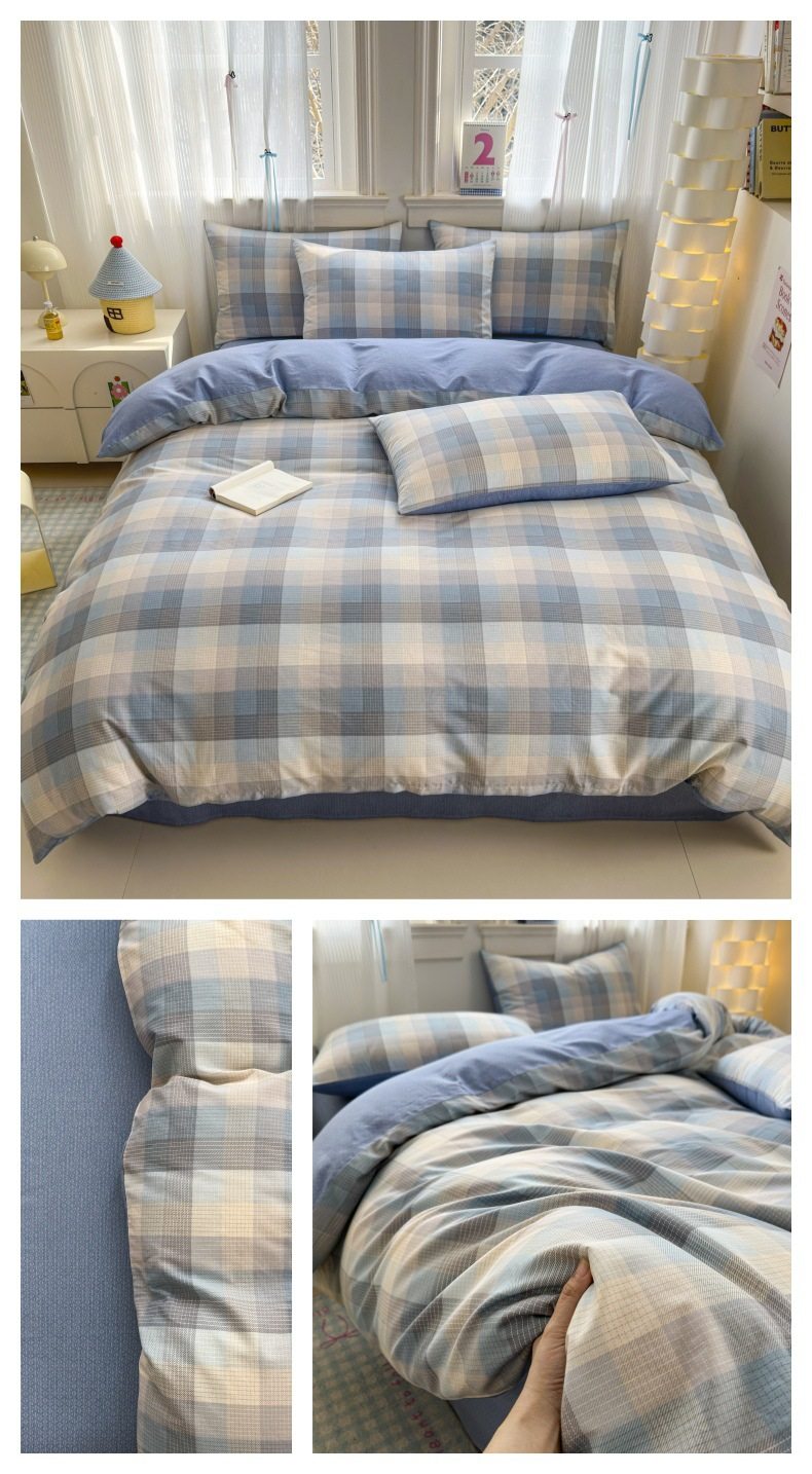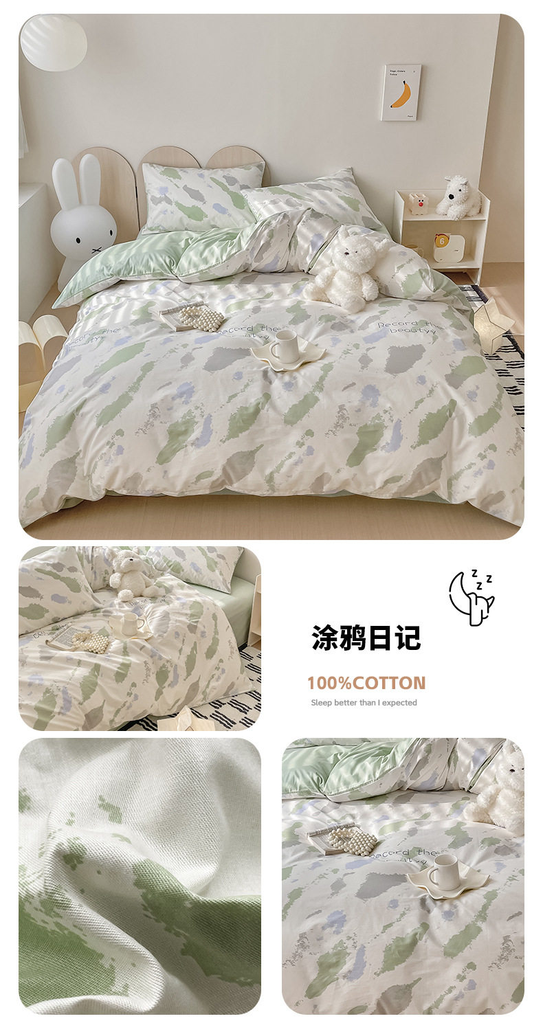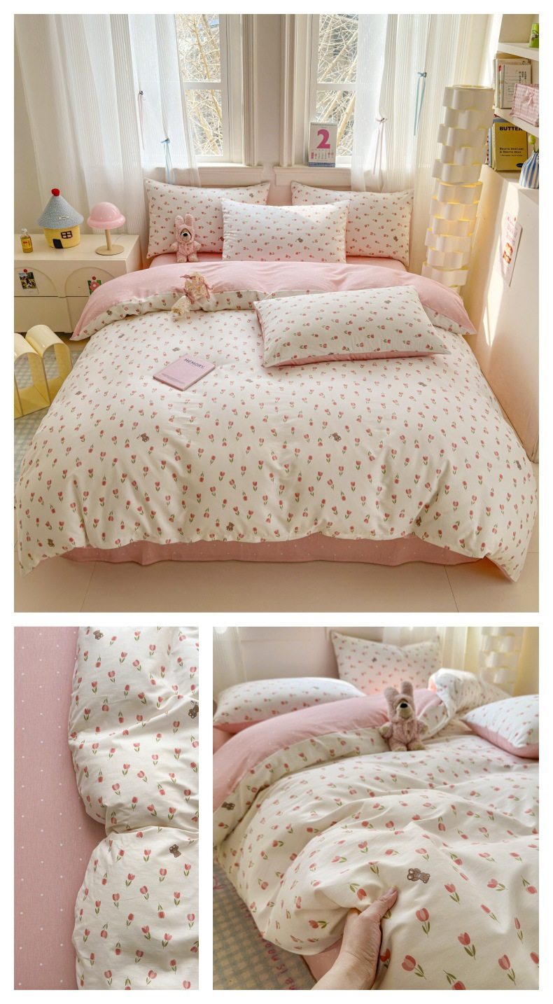 Four-piece Bed Set Cotton Nordic Style Four-piece Set 100 Cotton Spring and Autumn Bed Sheet Bed Hat Single Dormitory Kit