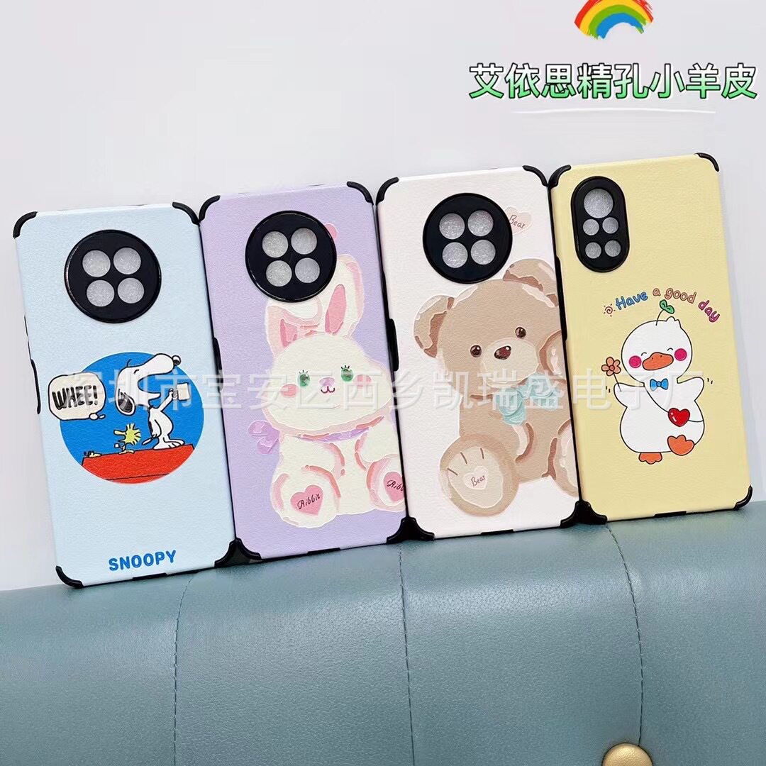 Four-Corner Lambskin Suitable for Vivos50 Cartoon Precision Hole Phone Case X90 X100 X200 Soft Full-Cover Protective Case