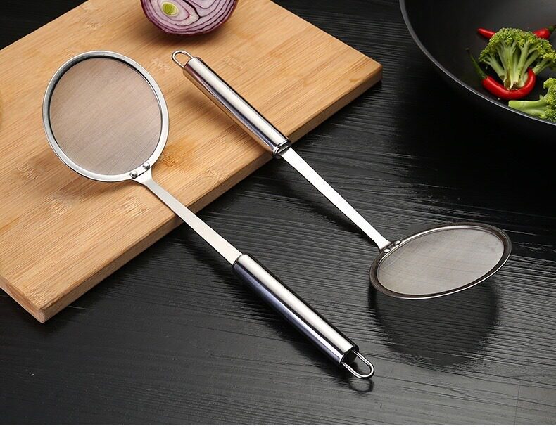 304 Stainless Steel Oil Strainer Spoon, Skimmer Spoon with 100 Mesh Filter, Household Hot Pot Foam Oil Separator, Kitchen Strainer Spoon