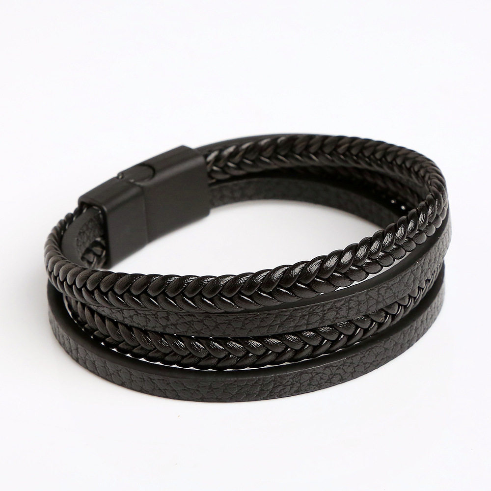 Cross-Border Leather Hand-Woven Bracelet Men's Magnet Buckle Stainless Steel Bracelet Jewelry Women Yiwu Manufacturer Wholesale Simple